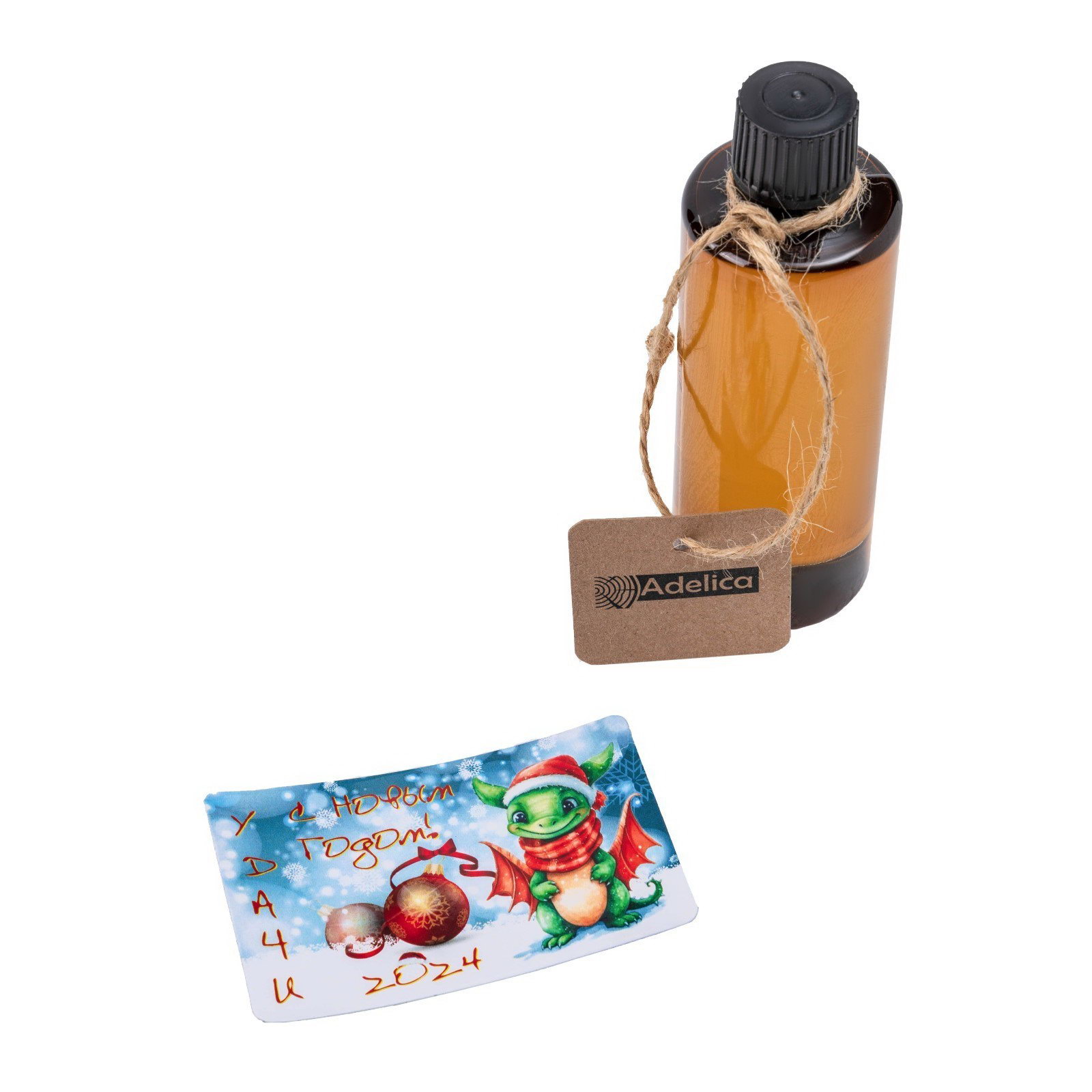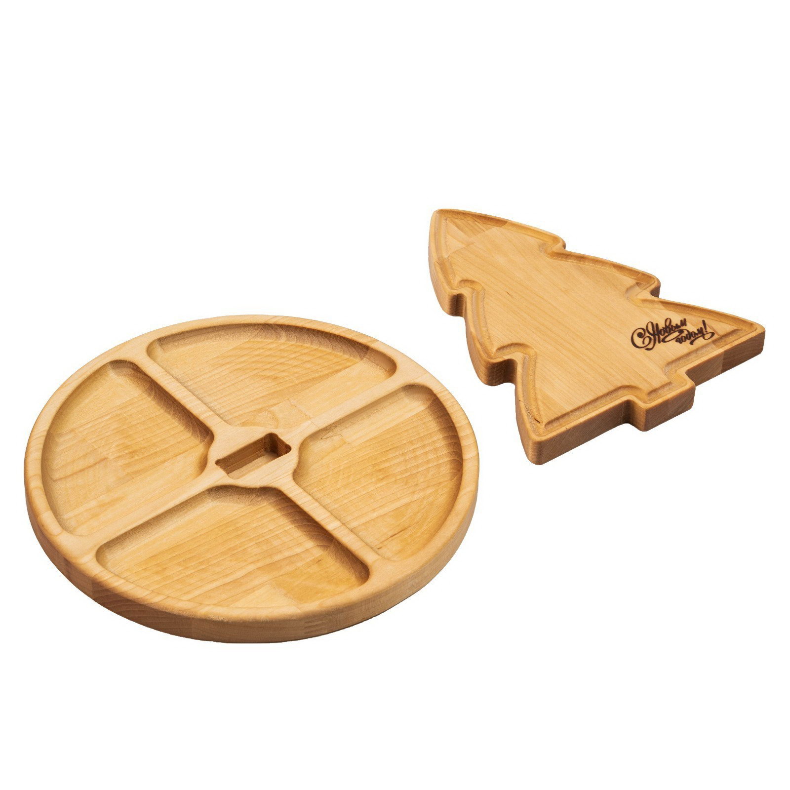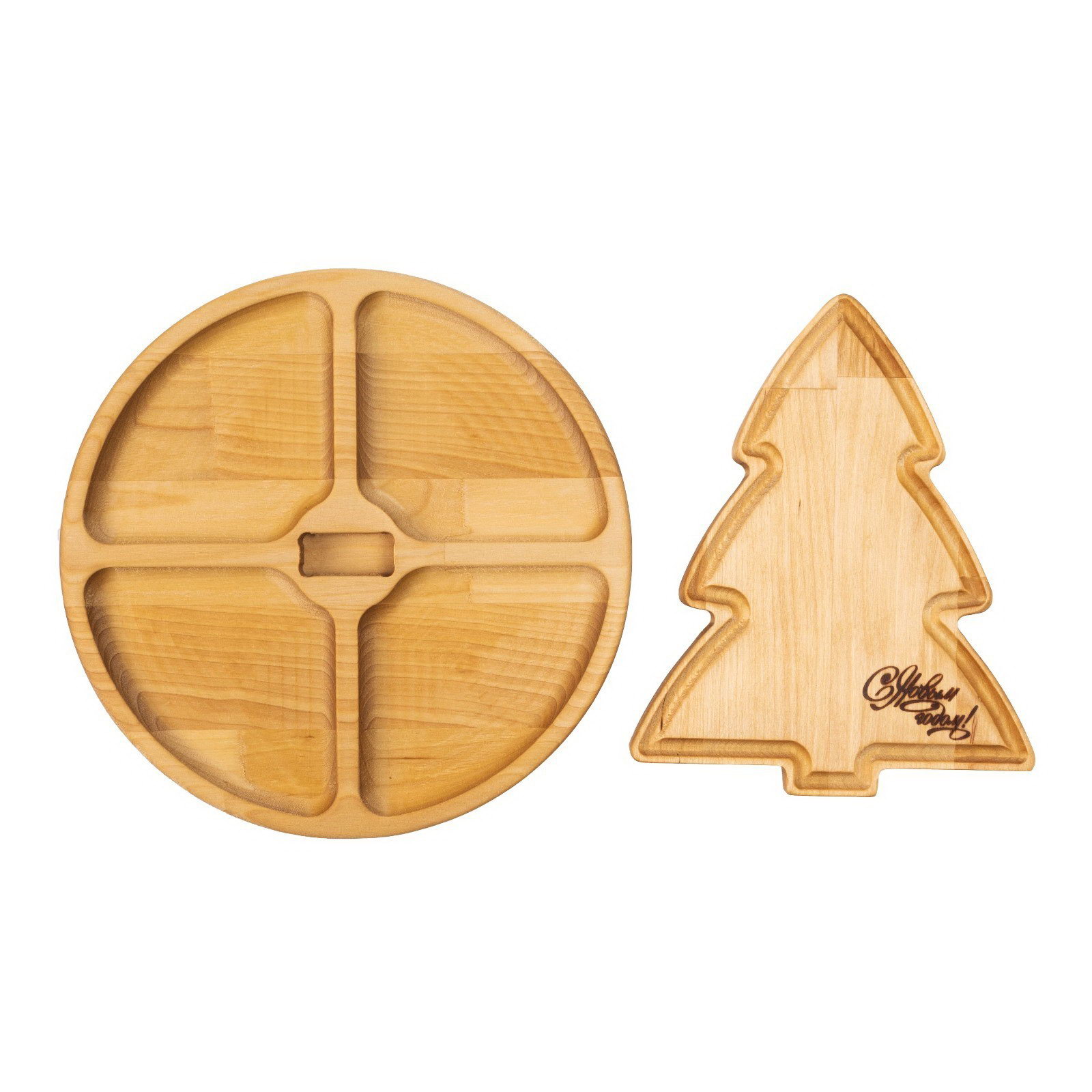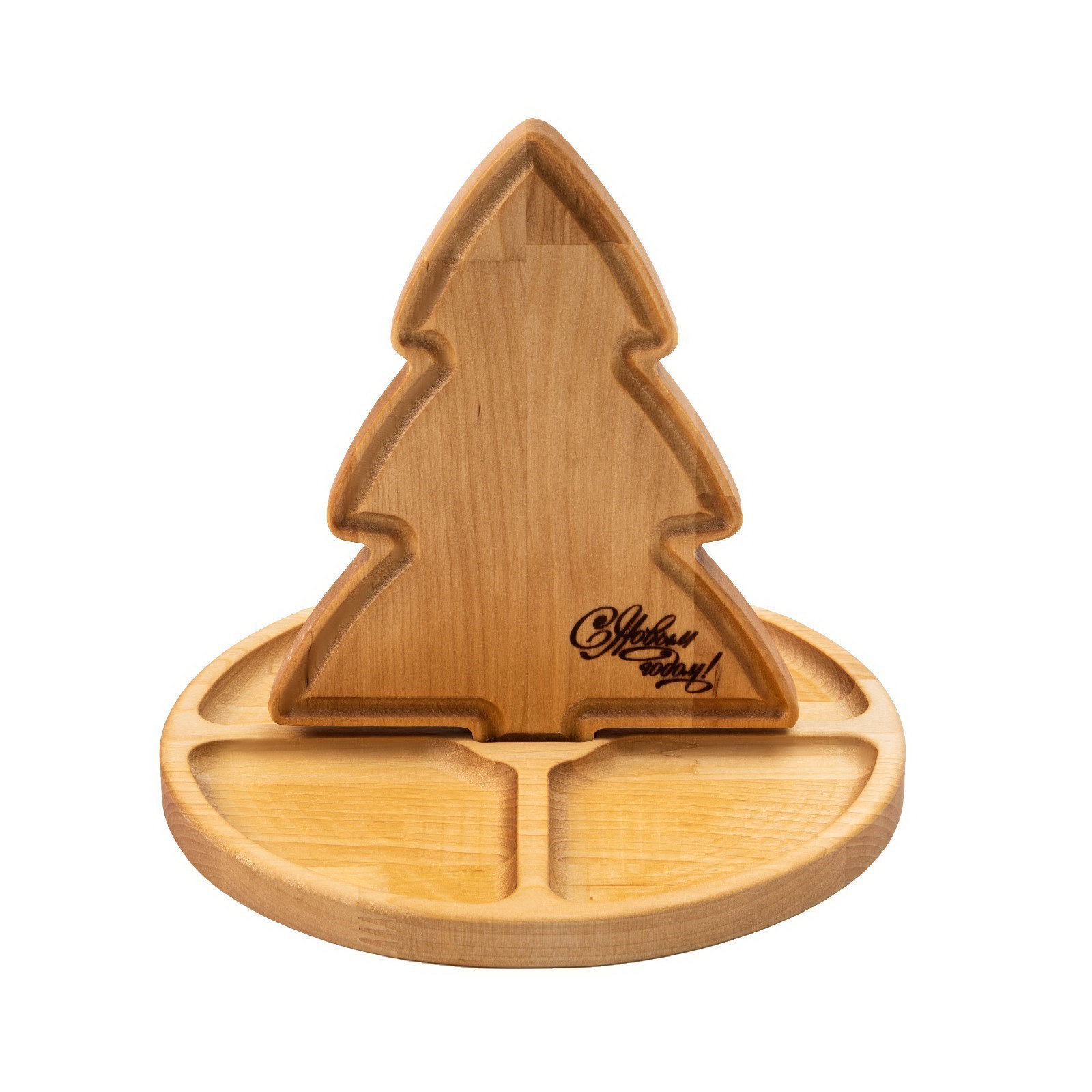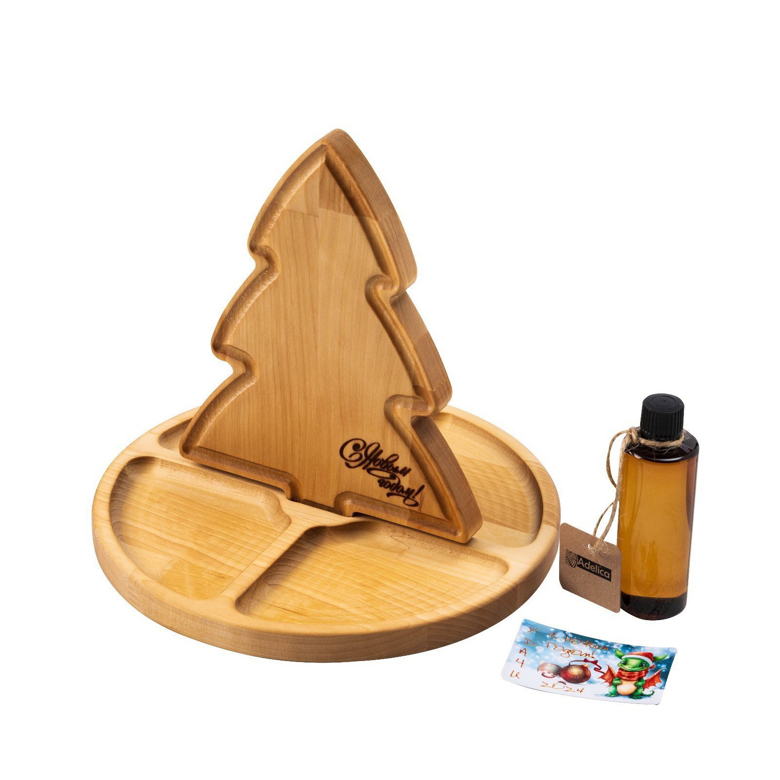 Подарочный набор деревянной посуды "С Новым годом!", ёлка 22x18 см, подставка - менажница d=25 см, масло 100 мл, в подарочной коробке, Adelica, Россия