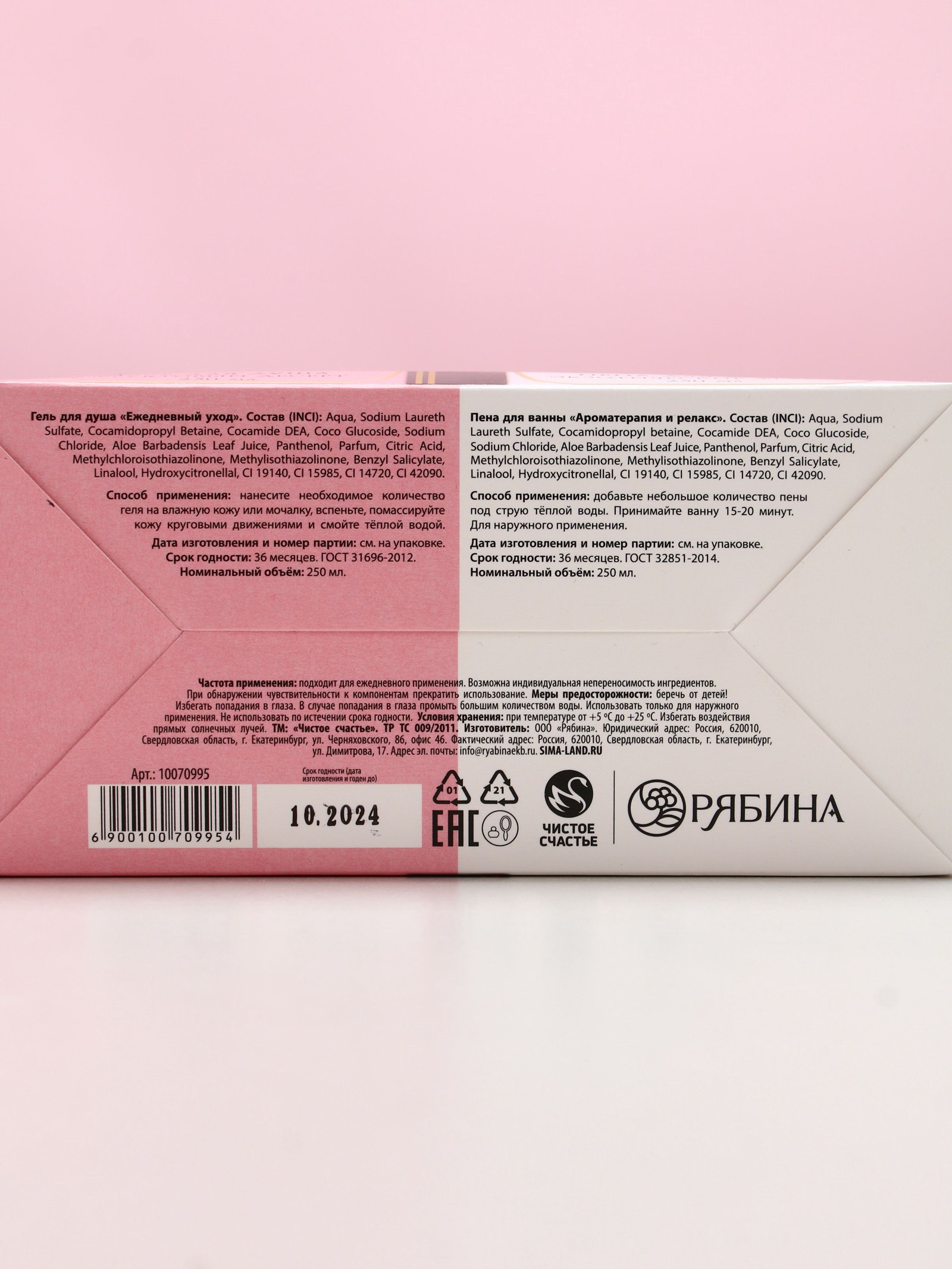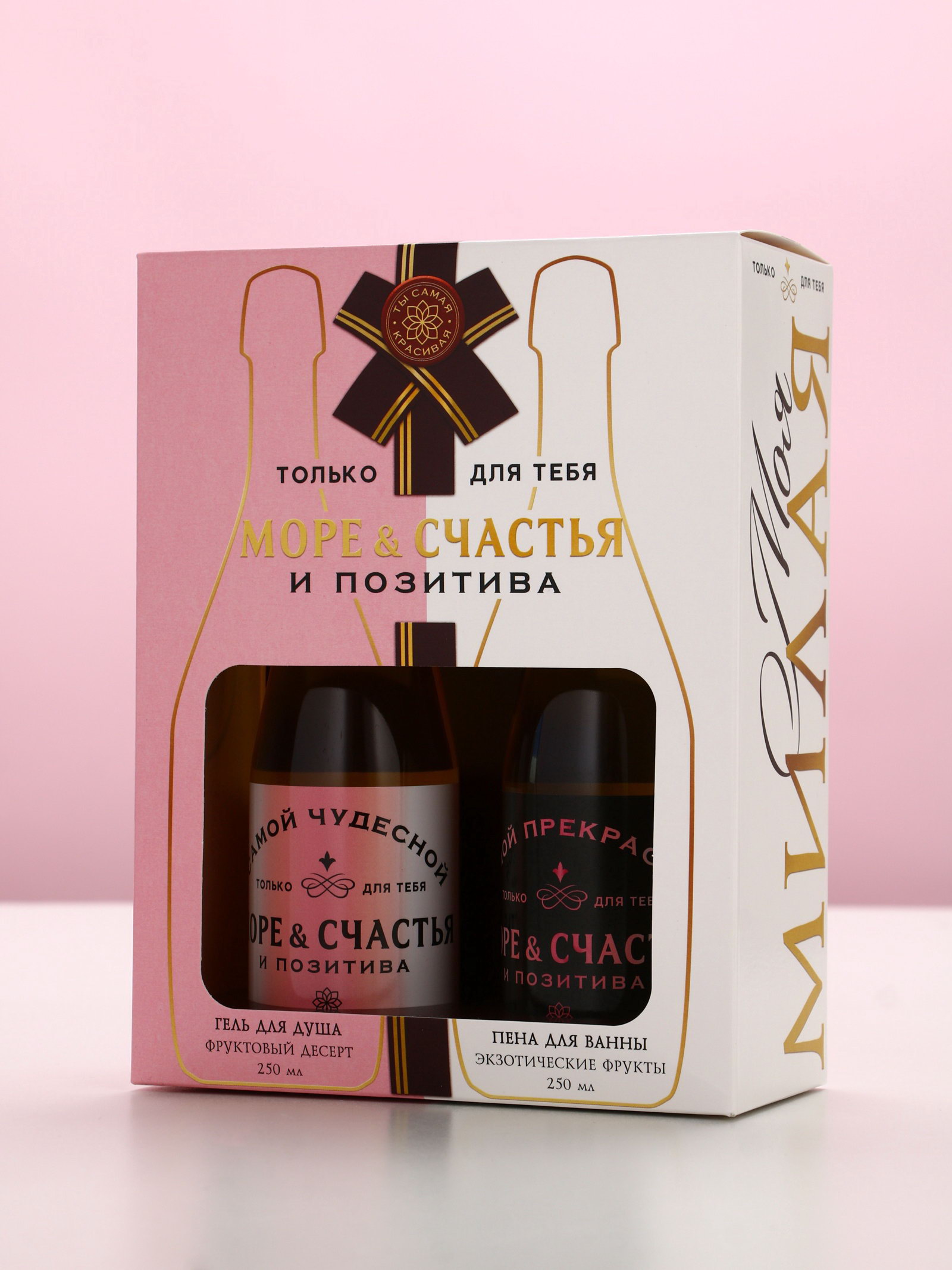 Подарочный набор косметики "Море счастья!": гель для душа и пена для ванны шампанское, 2x250 мл, 250 мл., Чистое счастье, Россия