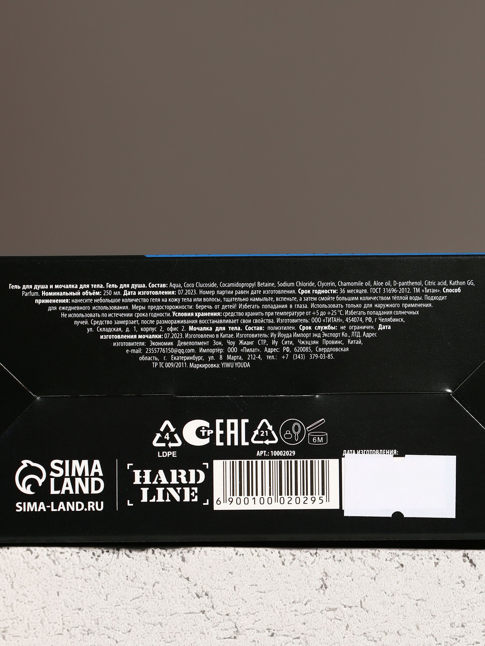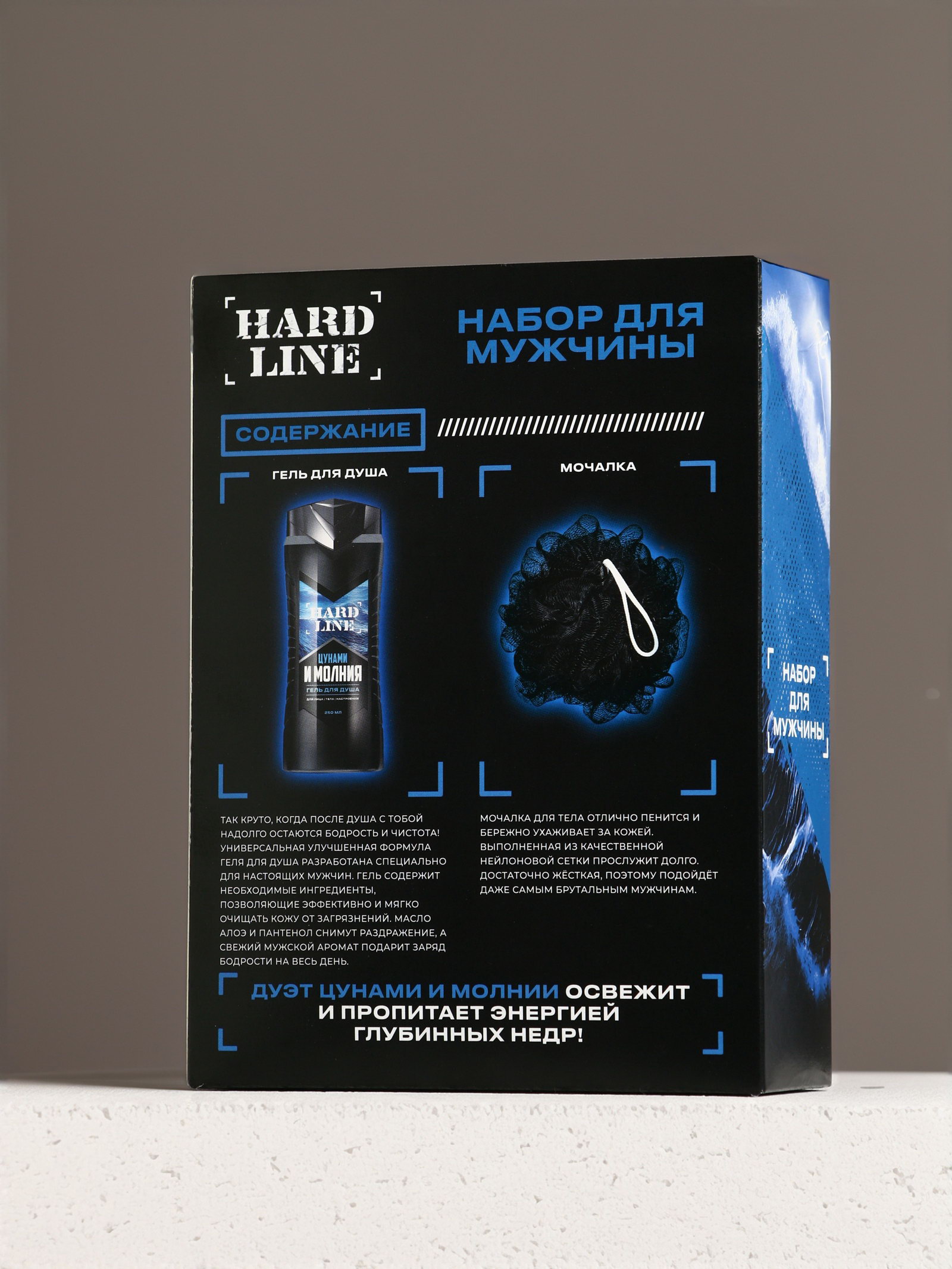 Подарочный набор косметики "Цунами и молния", гель для душа 250 мл и мочалка для тела, 250 мл., HARD LINE, Россия
