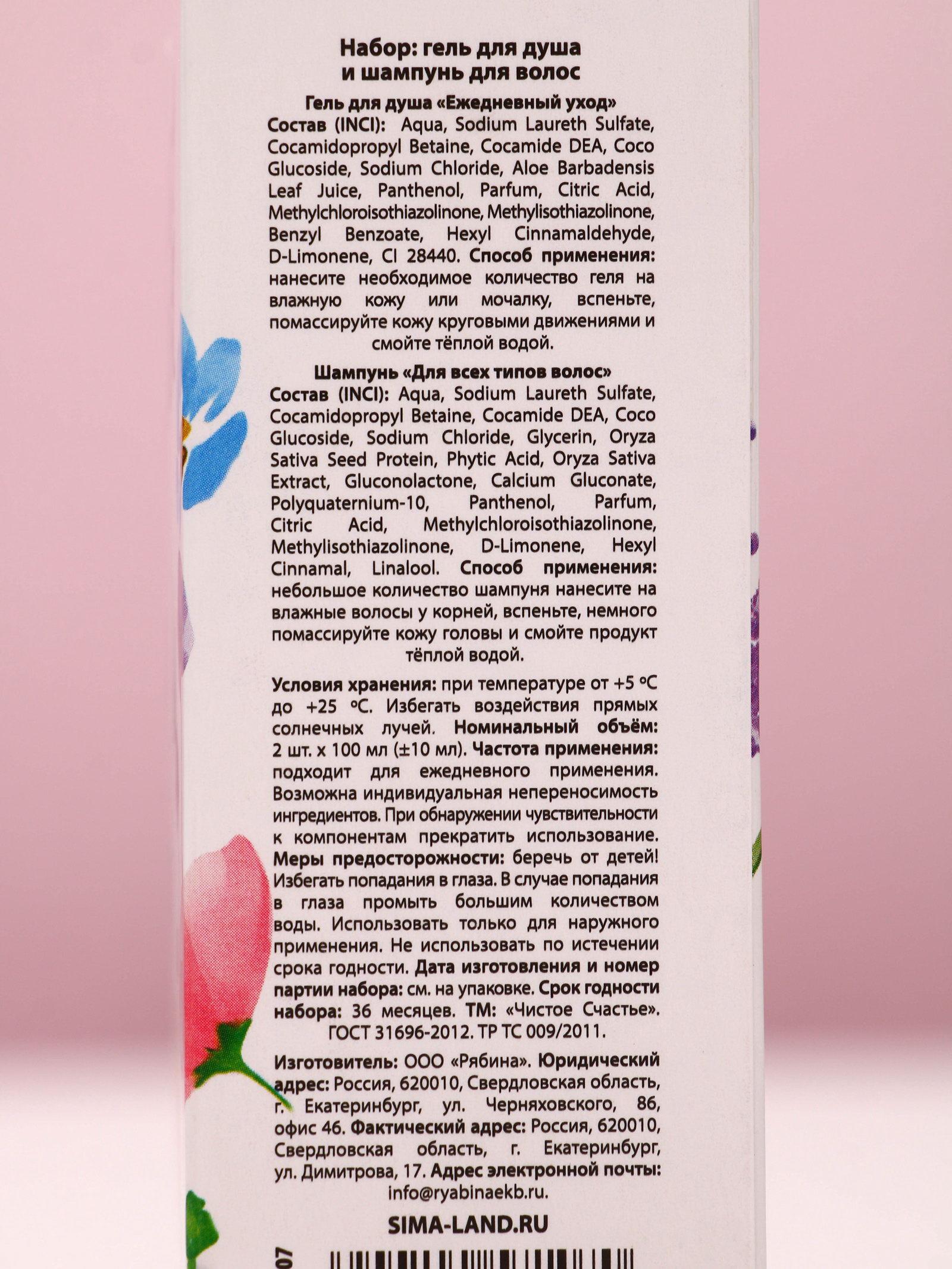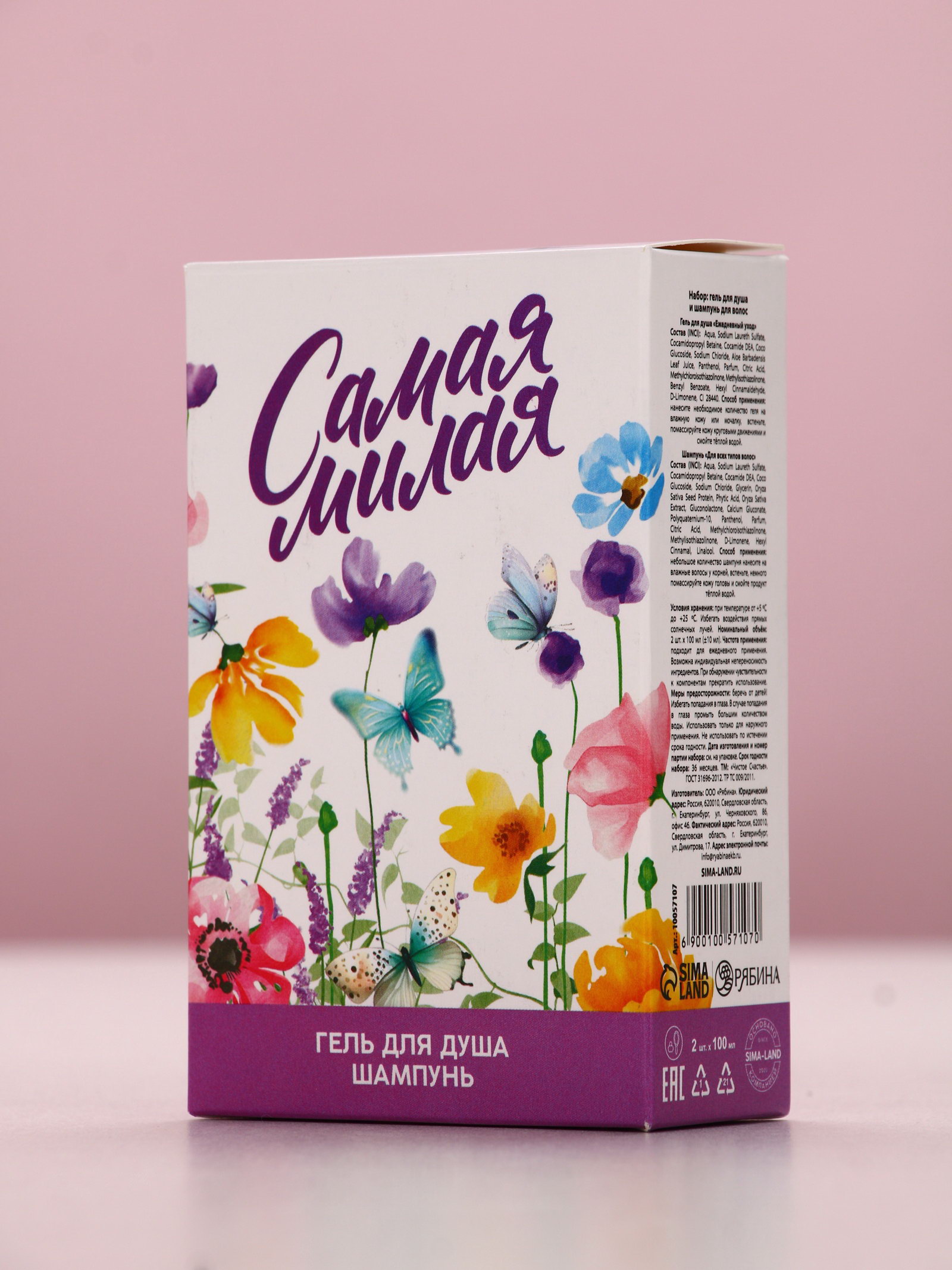 Подарочный набор "Самая милая", гель для душа и шампунь для волос, 2x100 мл, 100 мл., Чистое счастье, Россия