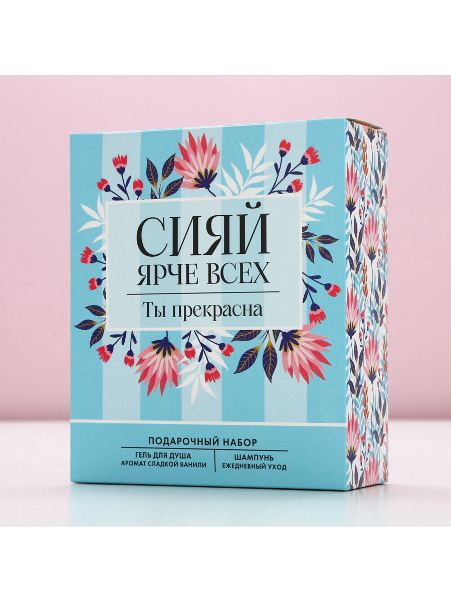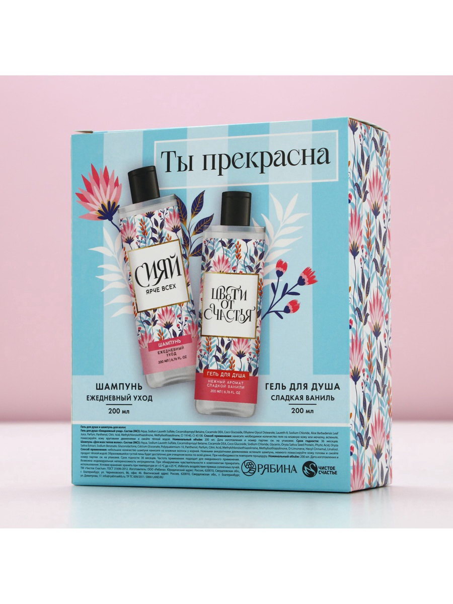 Подарочный набор "Сияй ярче всех!", гель для душа и шампунь для волос, 2x200 мл, 200 мл., Чистое счастье, Россия