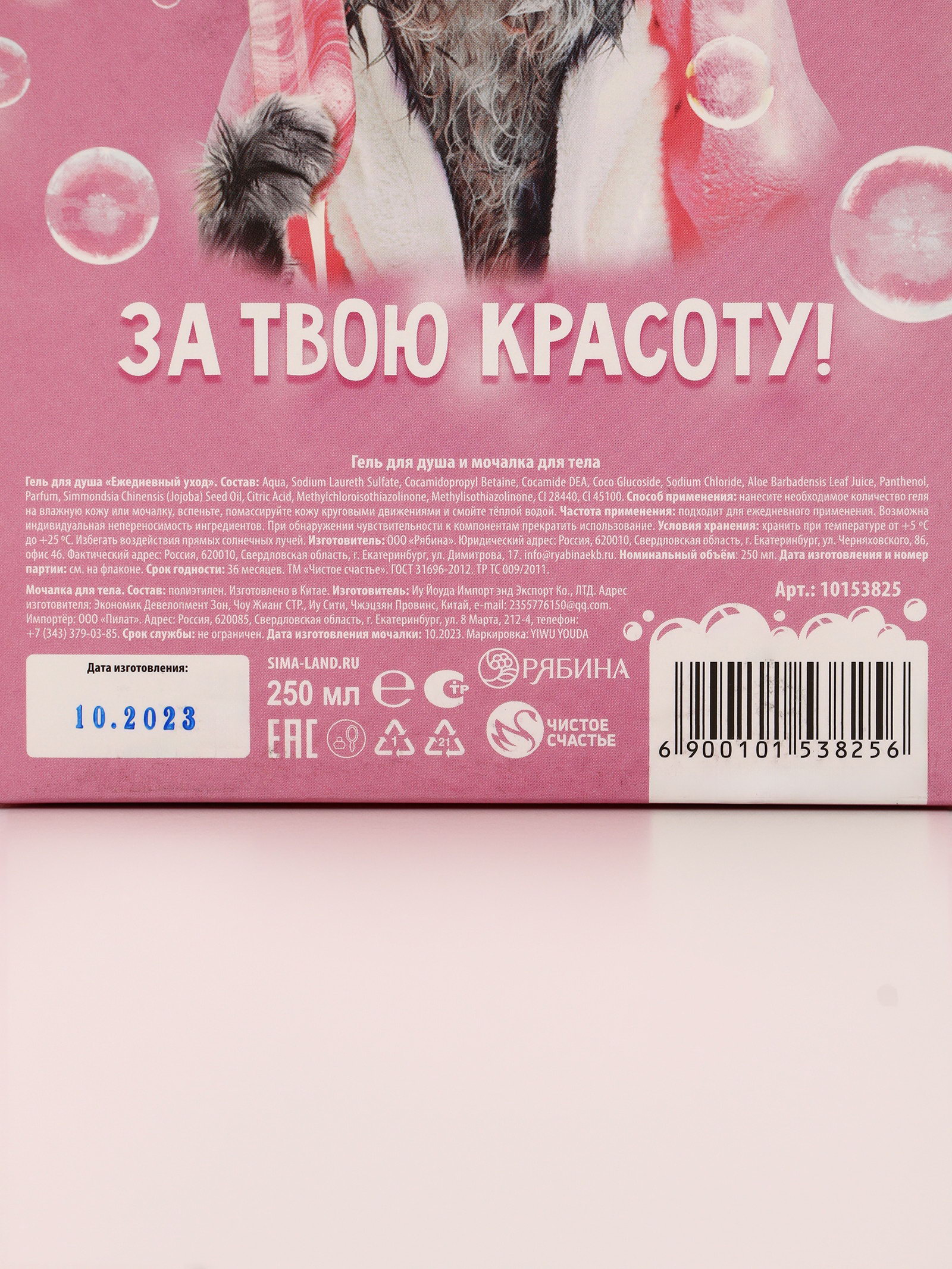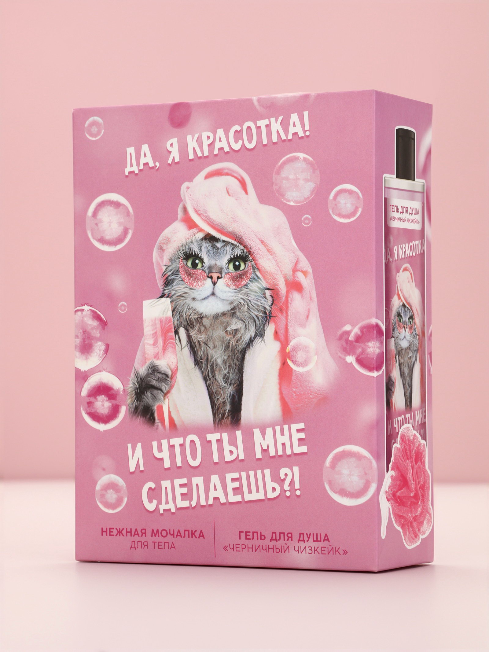 Подарочный набор косметики "Да, я красотка!", гель для душа 250 мл и мочалка, 250 мл., Чистое счастье, Россия