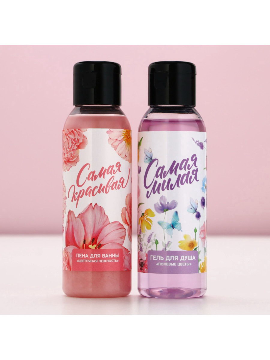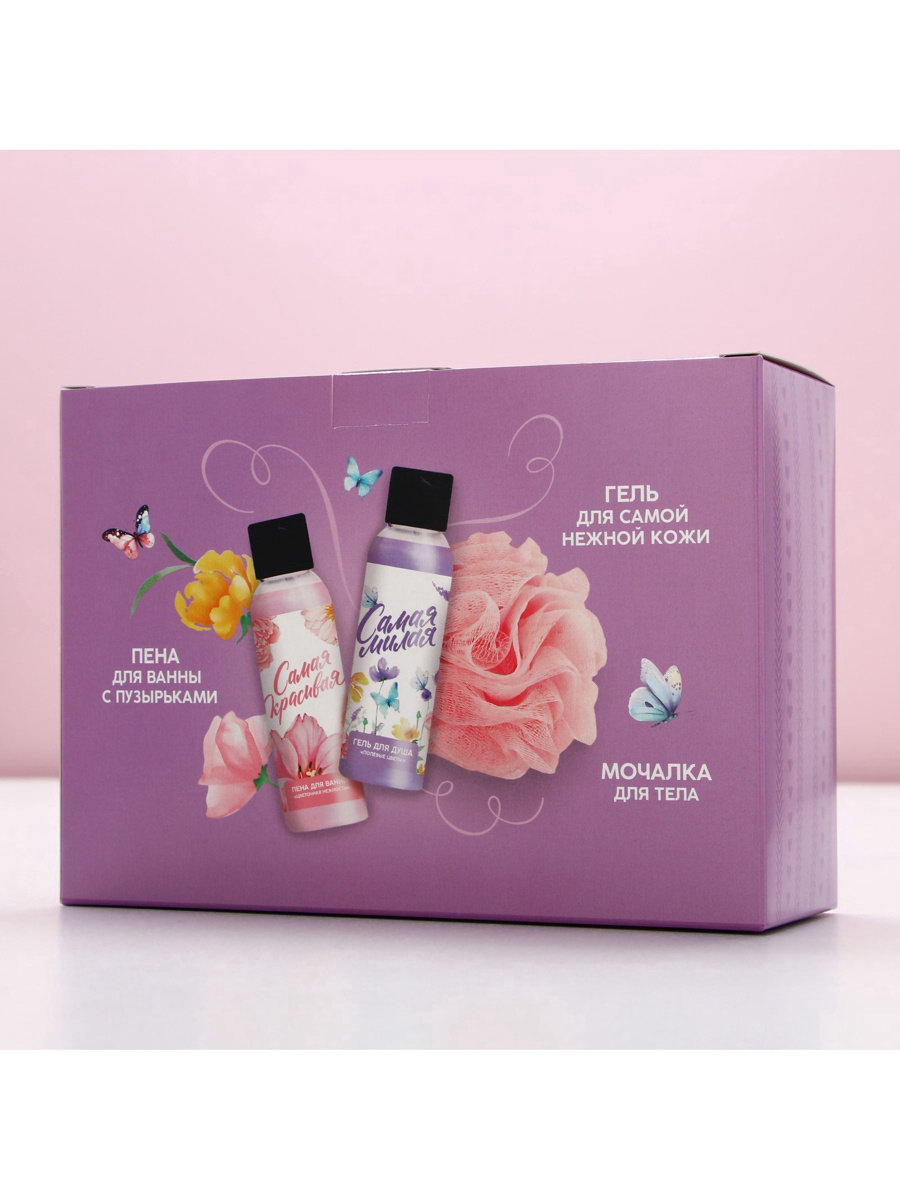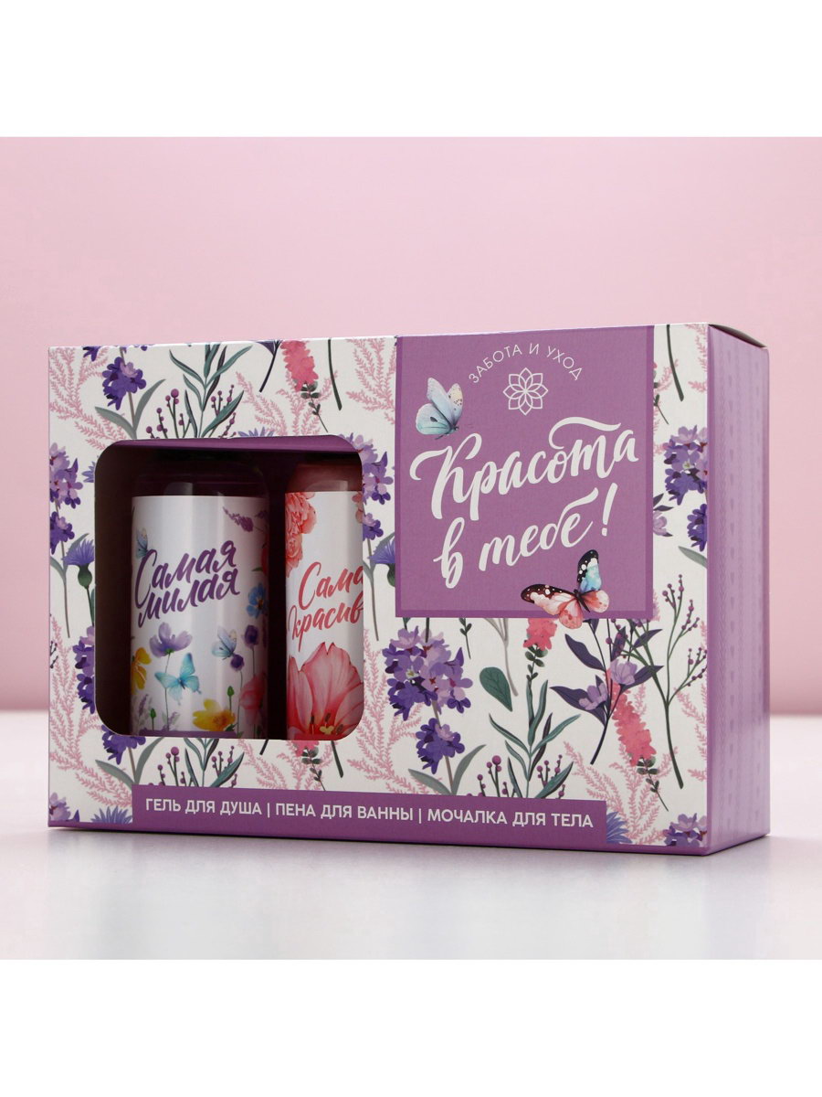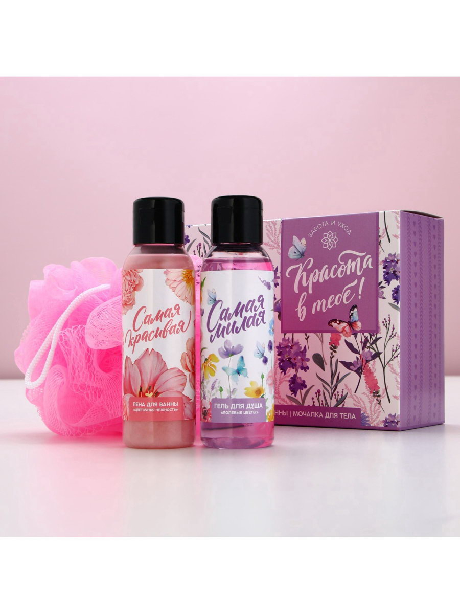 Подарочный набор "Красота в тебе", гель для душа и пена для ванны 2x100 мл, мочалка для тела, Чистое счастье, Россия