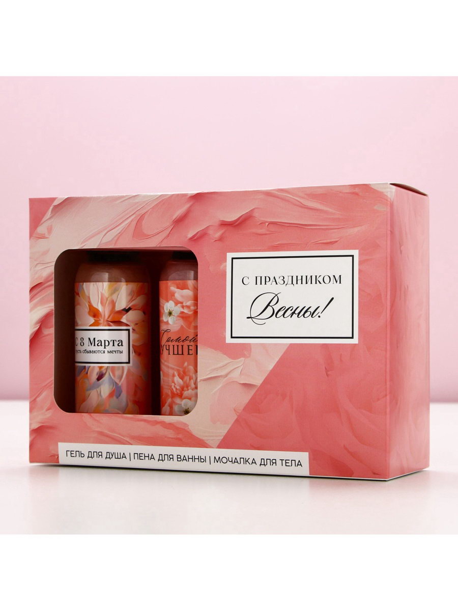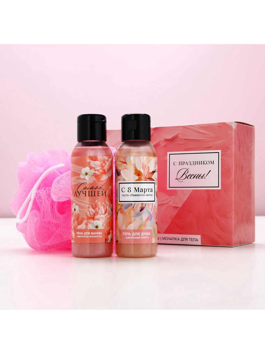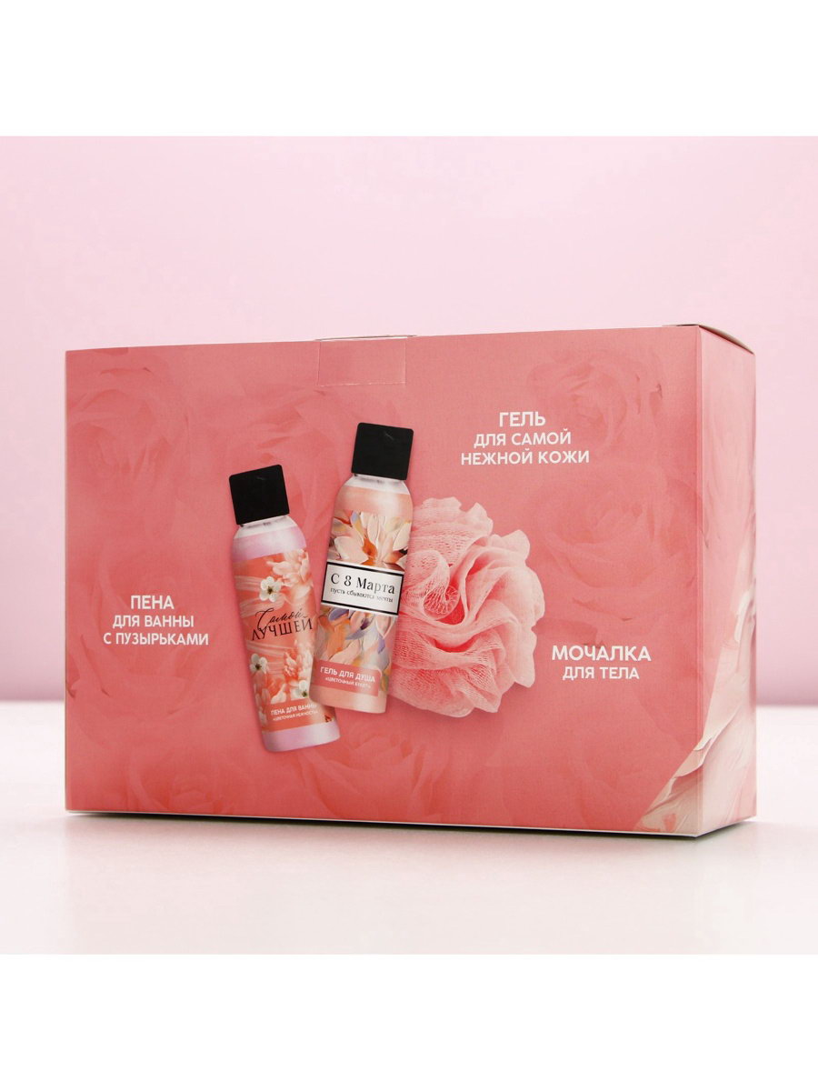 Подарочный набор "8 Марта!", гель для душа и пена для ванны 2x100 мл, мочалка для тела, Чистое счастье, Россия