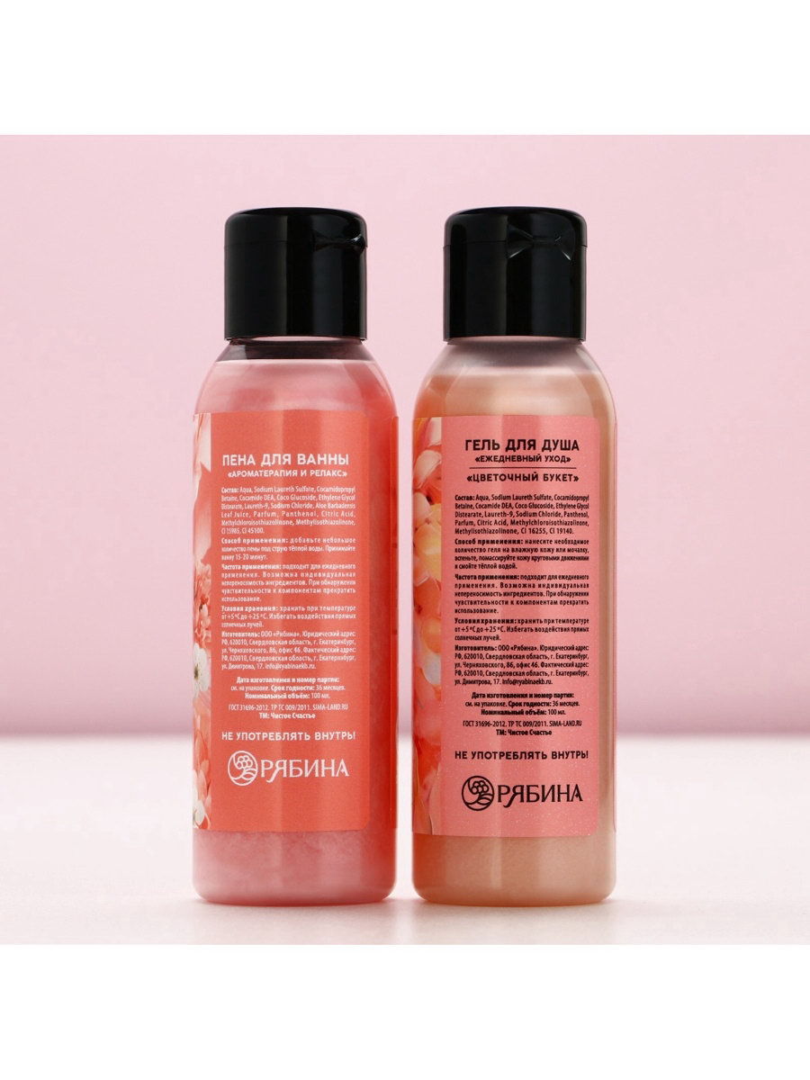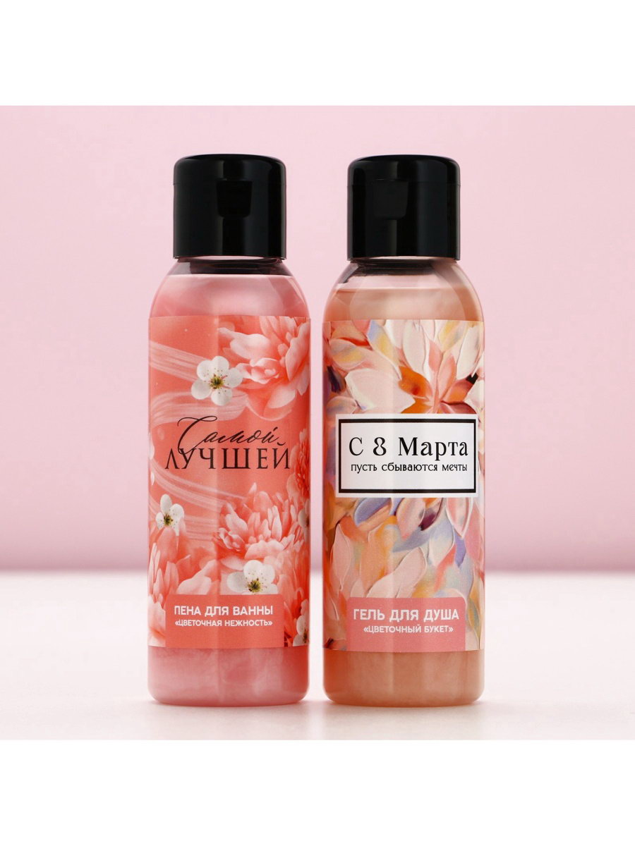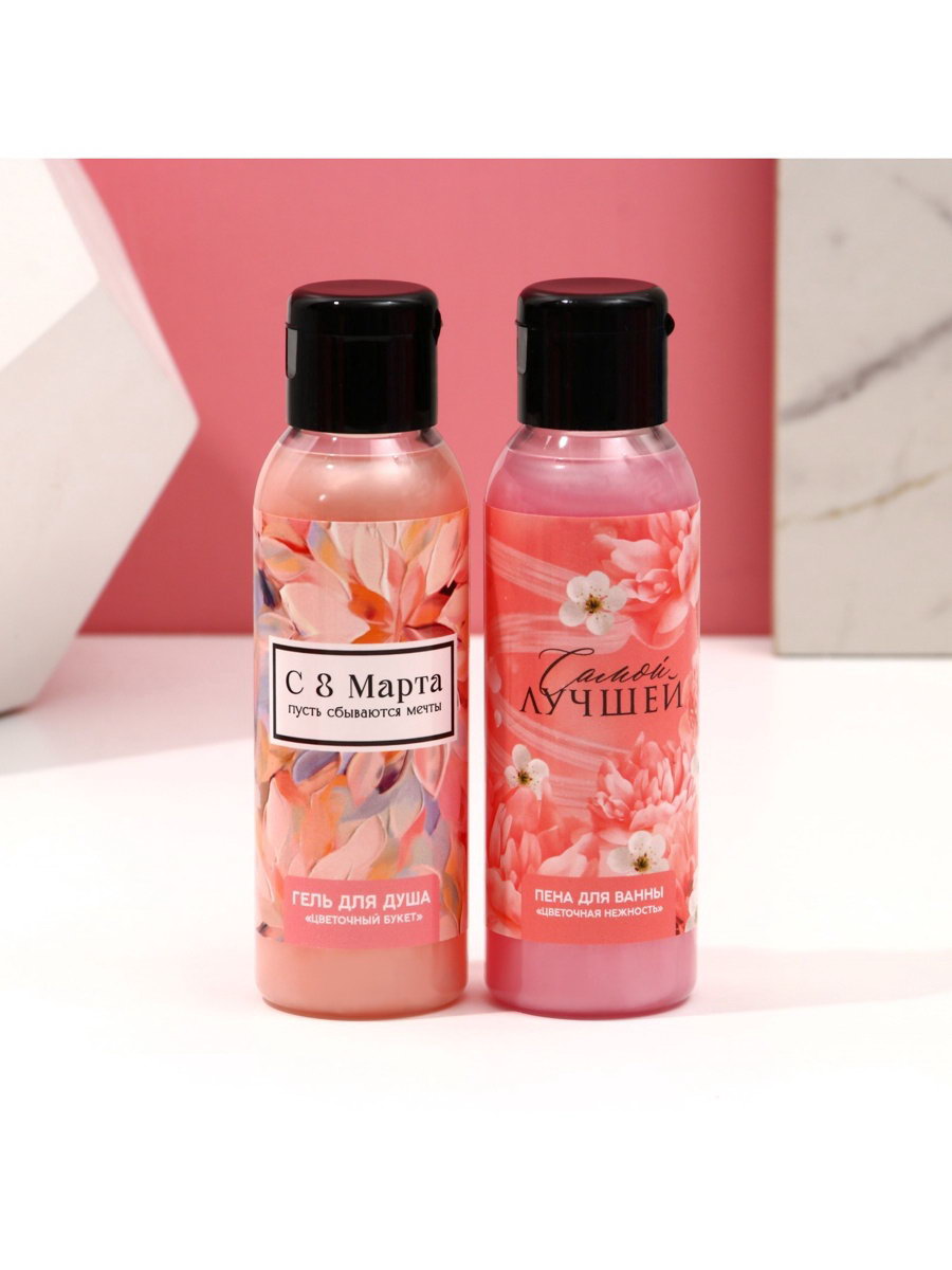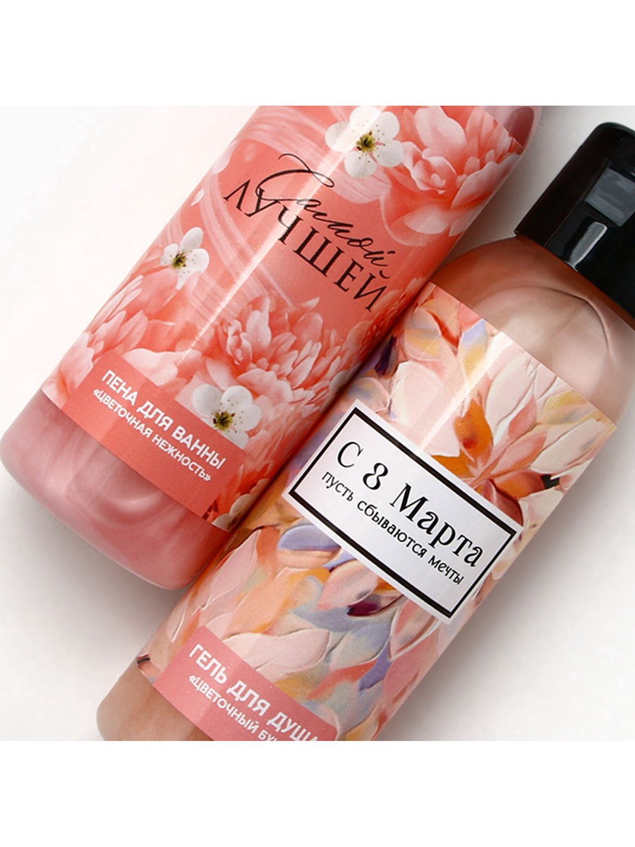 Подарочный набор "8 Марта!", гель для душа и пена для ванны 2x100 мл, мочалка для тела, Чистое счастье, Россия