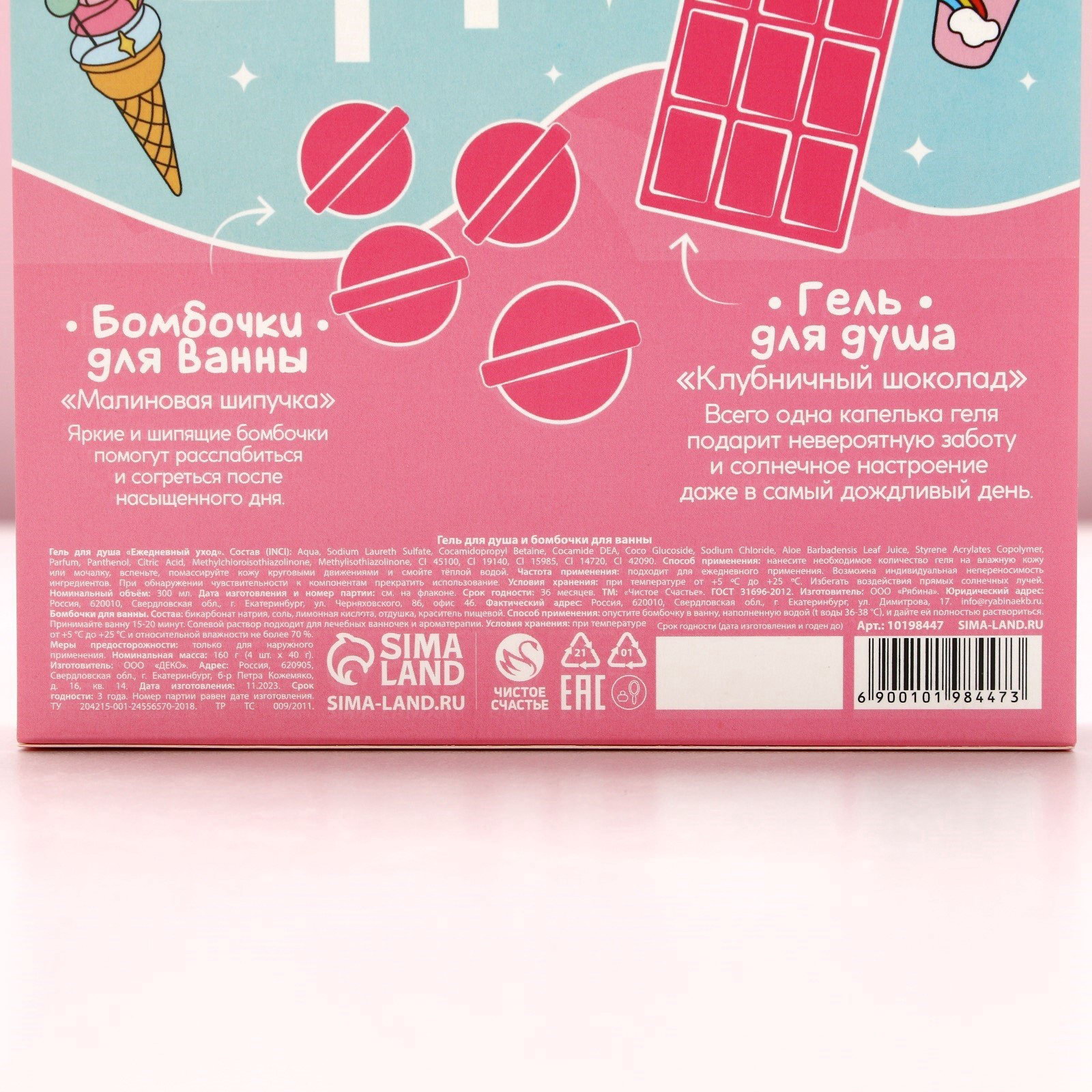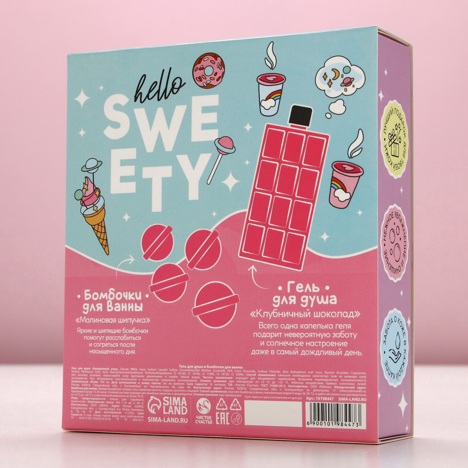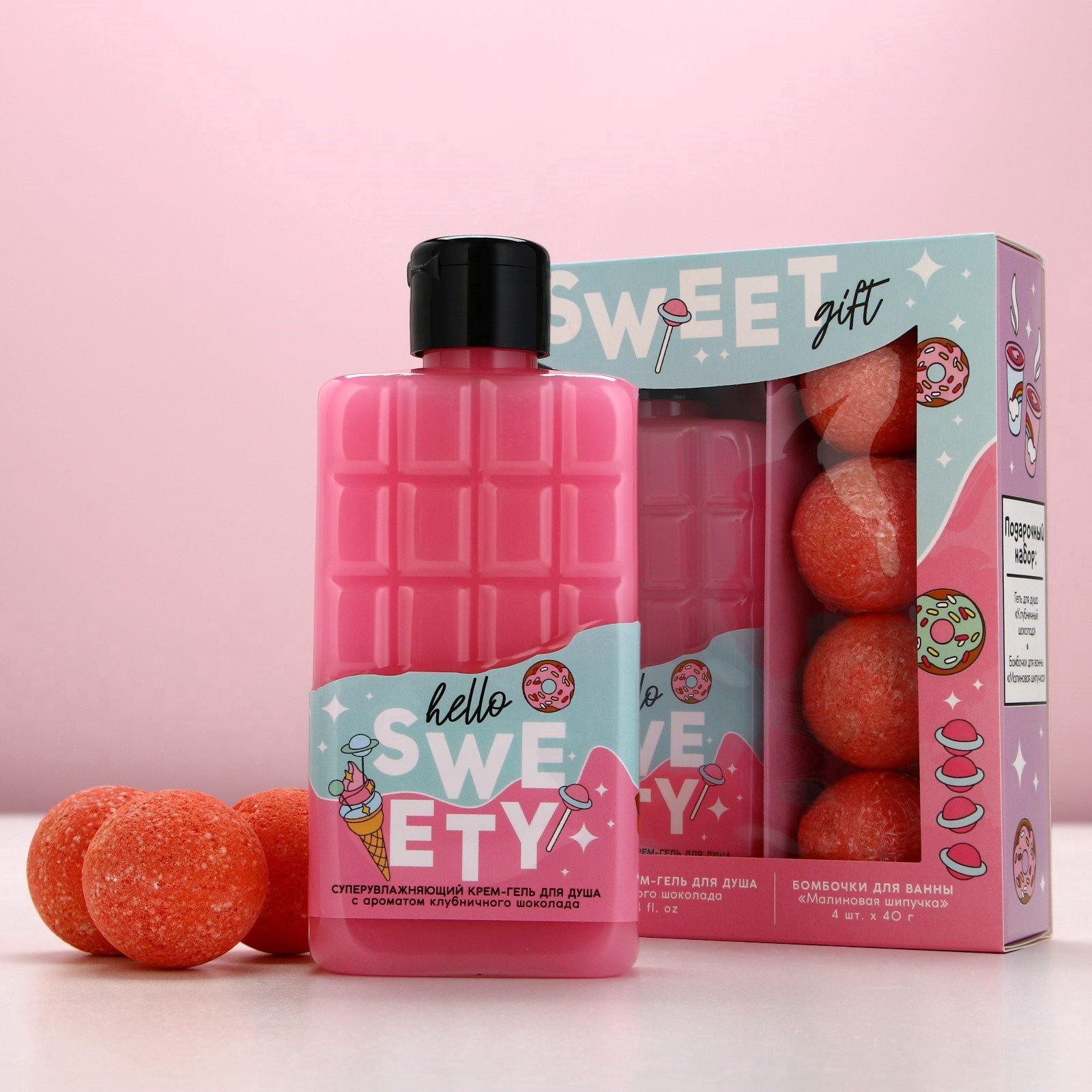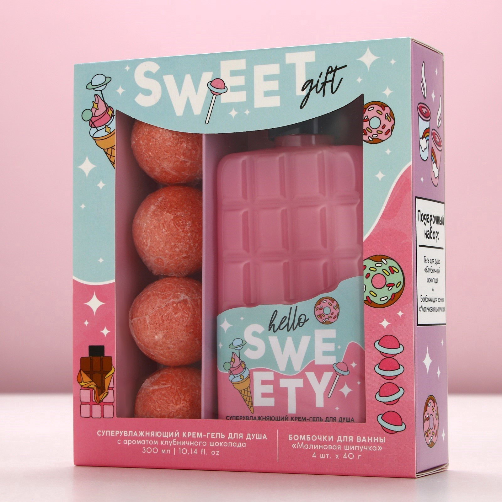 Подарочный набор Sweet Gift, гель для душа 300 мл и бомбочки для ванны 4x40 г, Чистое счастье, Россия