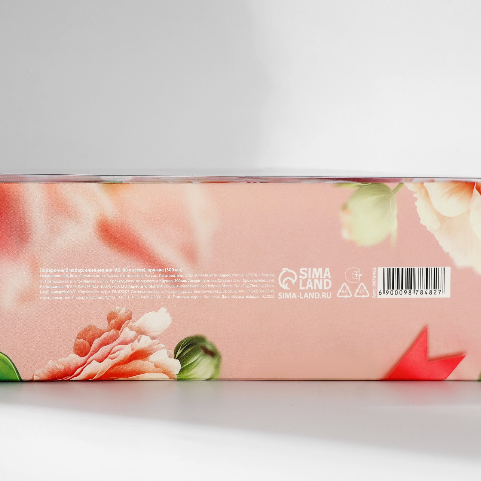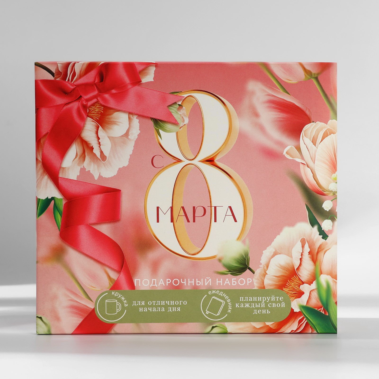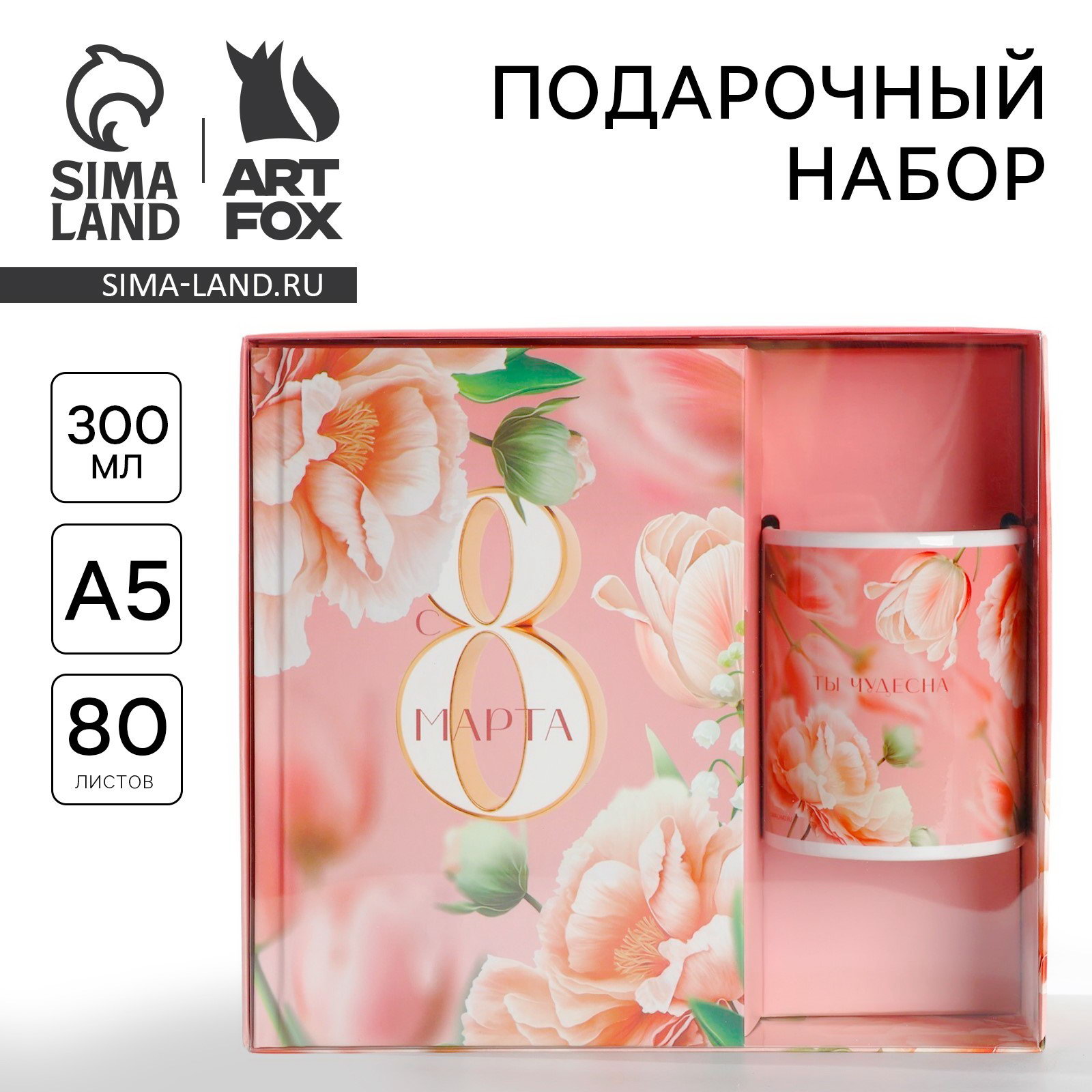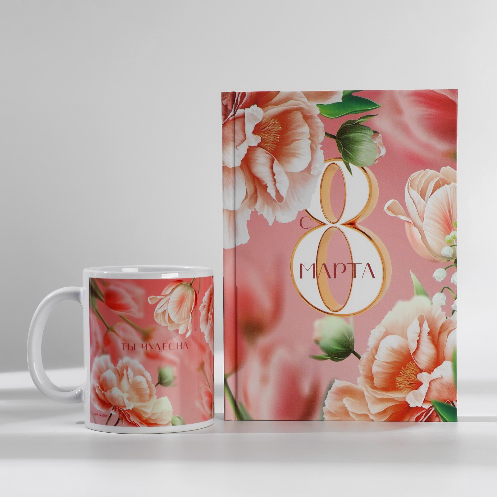 Подарочный набор: ежедневник А5, 80 листов и кружка "С 8 марта", 300 мл., ArtFox, Китай