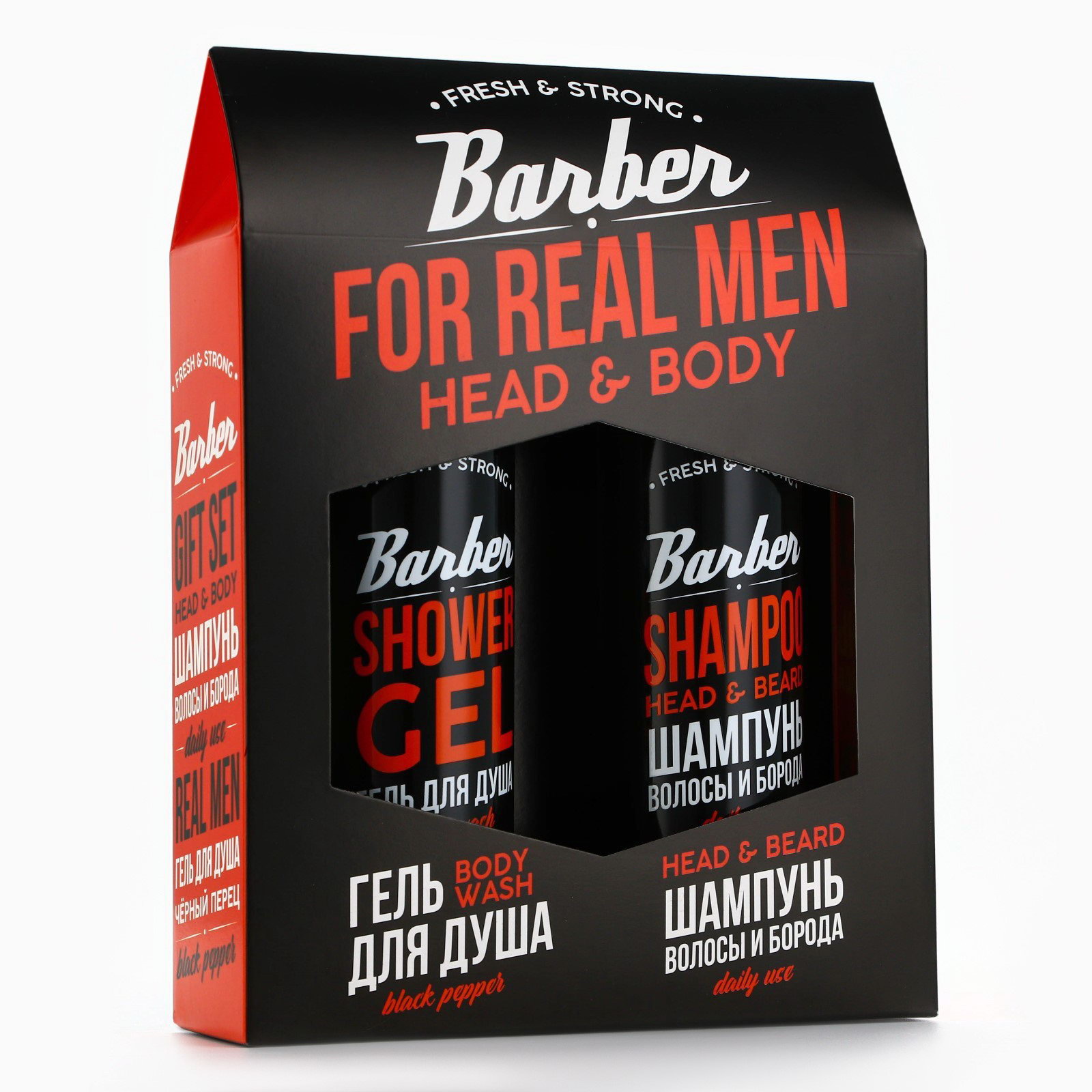 Подарочный набор косметики, гель для душа 250 мл и шампунь 250 мл, аромат черного перца, 250 мл., HARD LINE, Россия