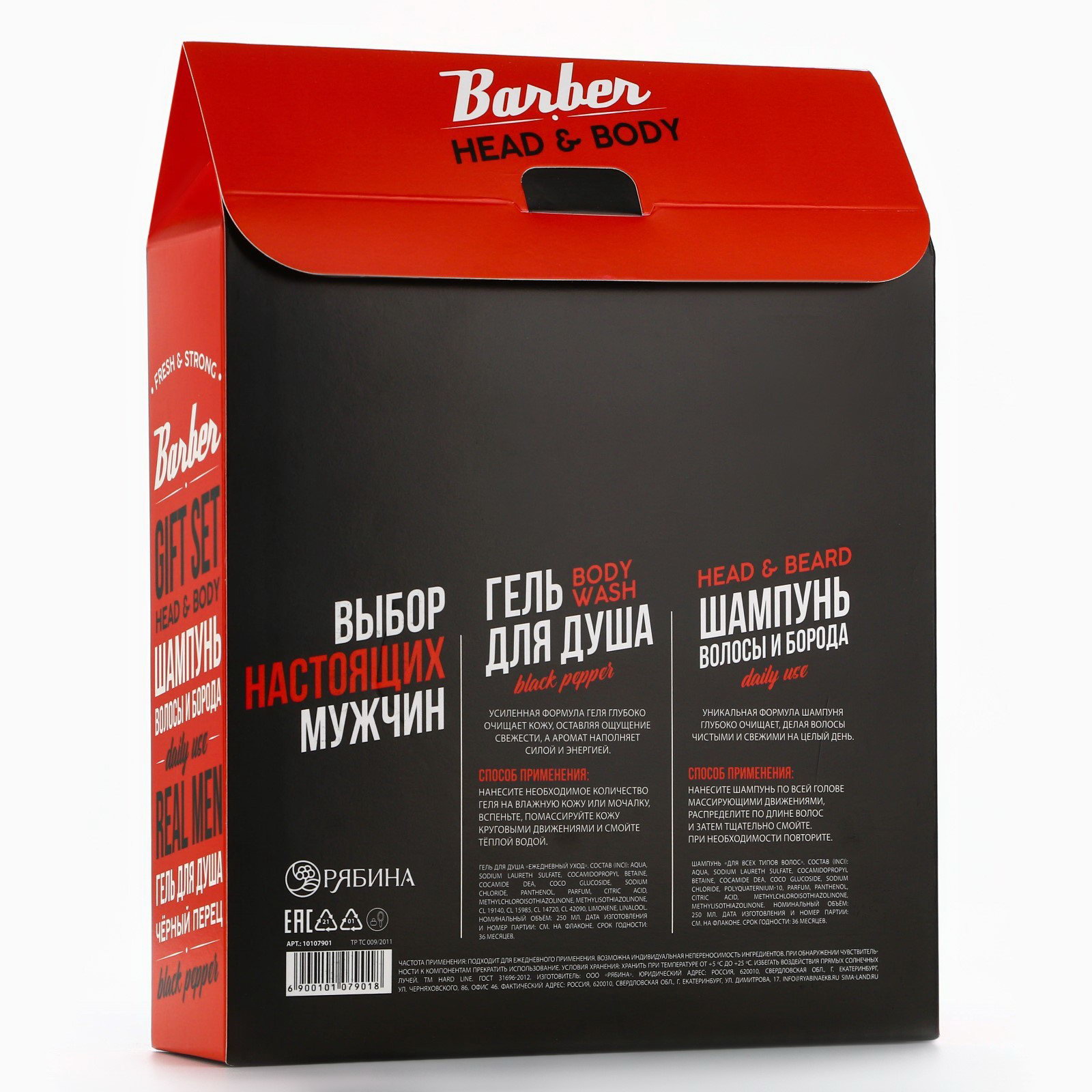 Составляющие набора: Гель для душа, Шампунь Тематика подарка: Гигиена, Уходовая косметика Возраст: Взрослый, Для взрослых Вид: Гель, Шампунь Размер упаковки: 17.5 x 5.3 x 22.5 см. В наборе, шт.: 2 Для кого: Для мужчины Вид упаковки: Картонная упаковка Область применения: Для волос Темпер. ограничение НЕ ВЫШЕ ℃: +25 Темпер. ограничение НЕ НИЖЕ ℃: +5 Тип волос: Для всех типов Аромат: Чёрный перец Назначение: Очищение, детокс Эффект: Очищение Форма выпуска: Флакон без дозатора Вид шампуня: Жидкий Цвет: Чёрный Набор: Да Адресат: Без адресата Тематика праздника: Универсальная тематика Тематика праздника: Универсальная тематика tnved: 3401300000 | ||