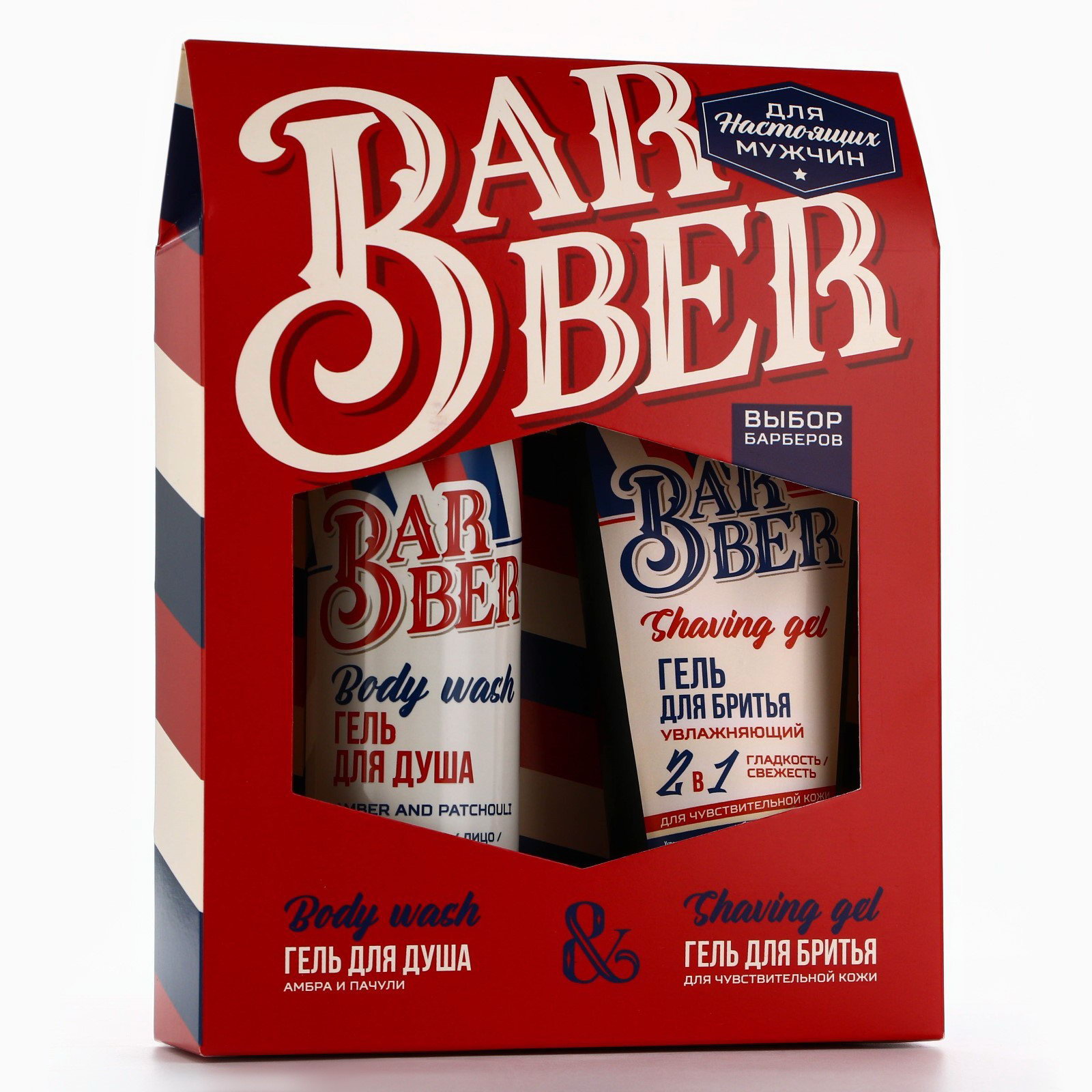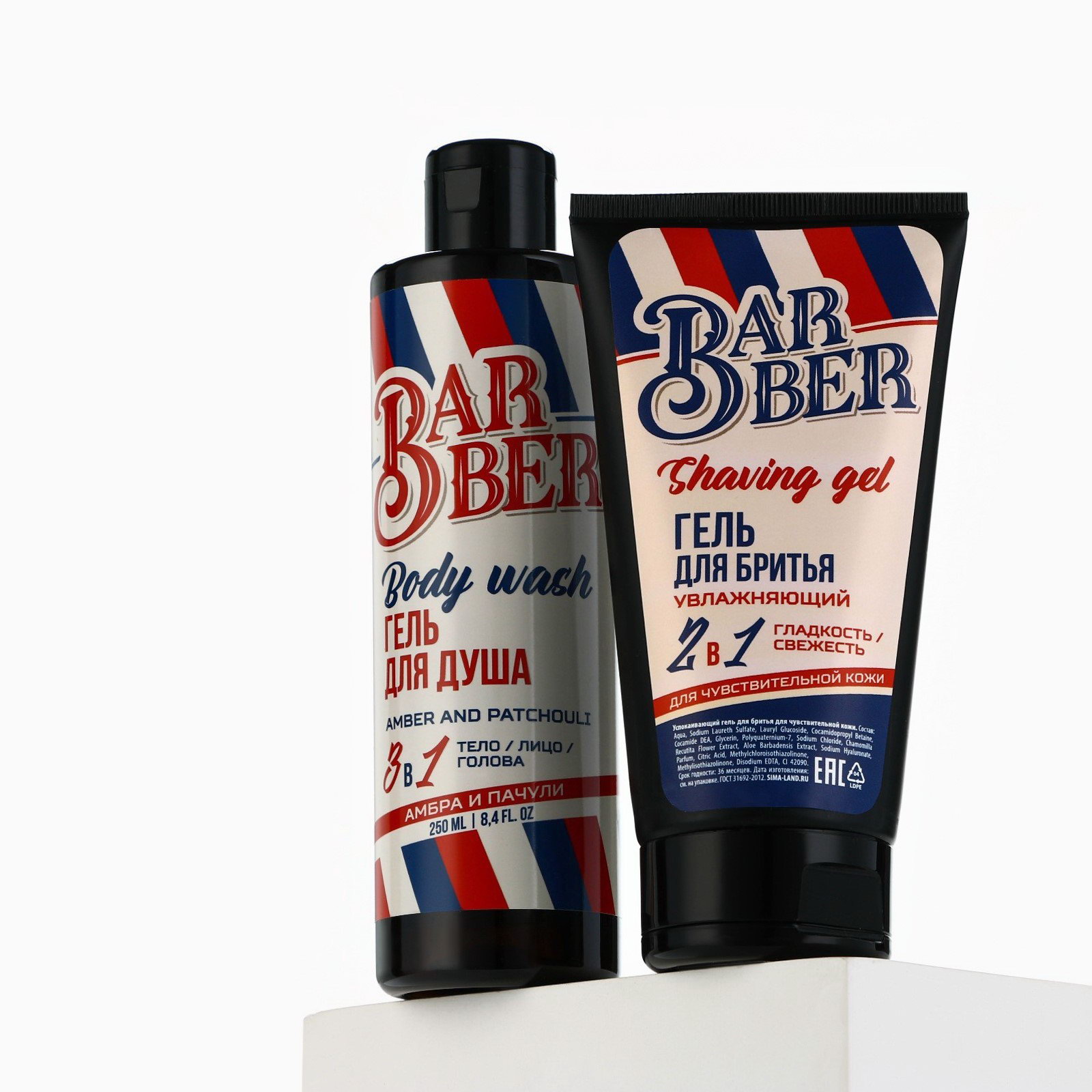 Подарочный набор косметики Barber, гель для душа 250 мл и гель для бритья 110 мл, аромат амбры и пачули, HARD LINE, Россия