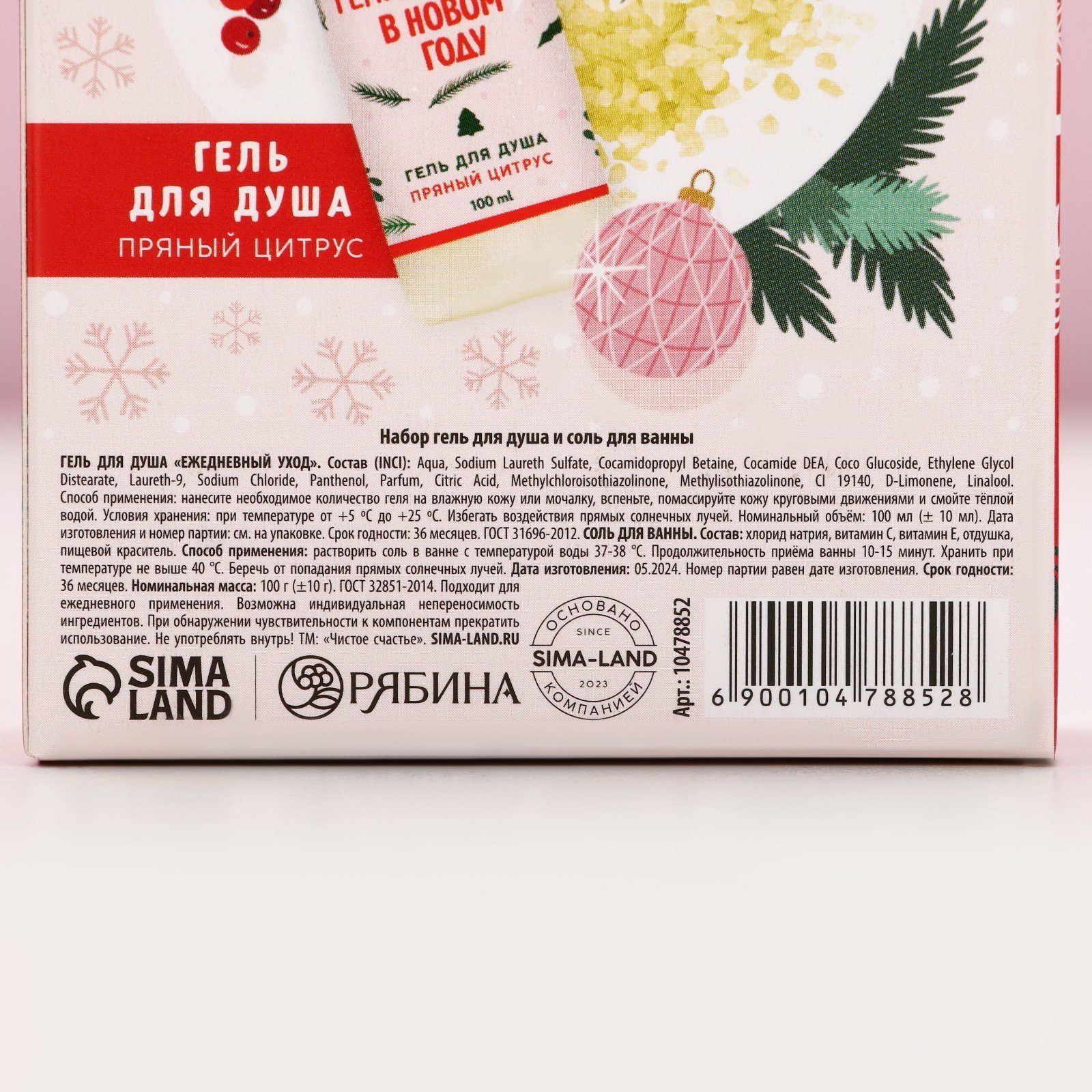 Новогодний подарочный набор косметики "С праздником": гель для душа 100 мл и соль для ванны 100 г, 100 мл., Чистое счастье, Россия