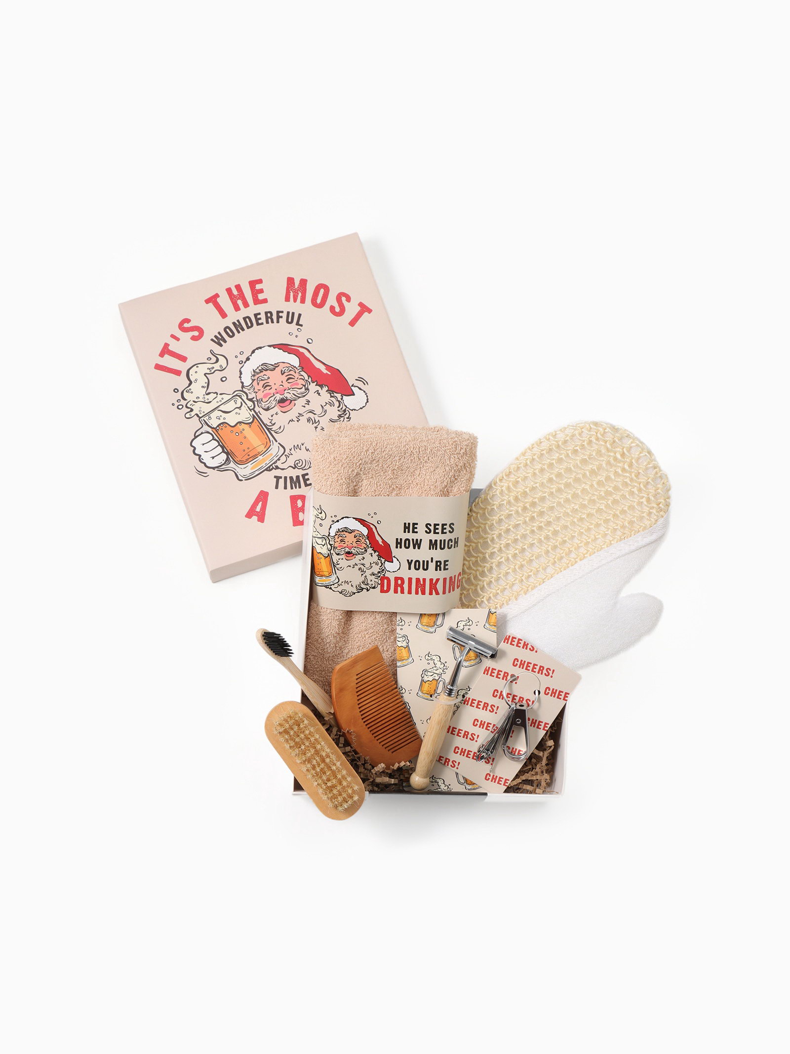 Набор новогодний подарочный "Этель. Санта видит всё", 7 предметов, полотенце, расчёска, щётка - массажёр, Этель, Россия