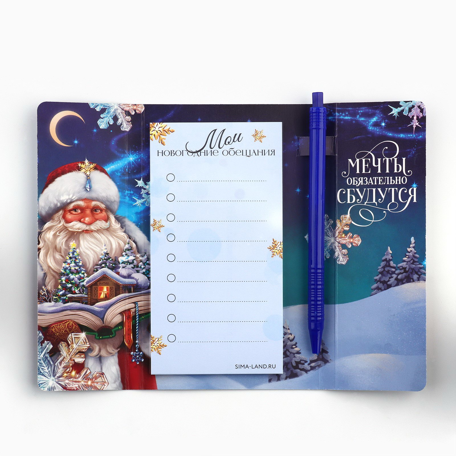 Подарочный набор новогодний, планер-стикеры 30 листов, ручка пластик "Мечты сбываются в Новом году! Дед Мороз", 9.5x15.6x1.5 см., ArtFox, Китай