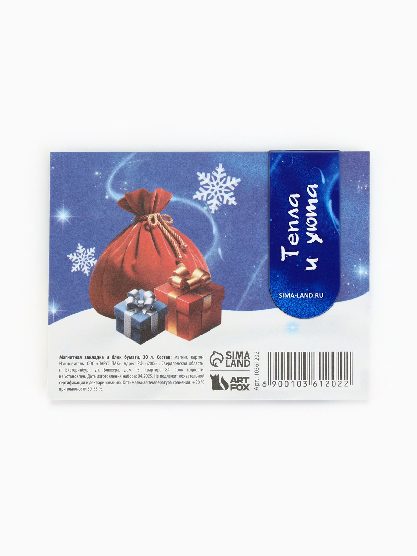 Подарочный набор новогодний, магнитная закладка и блок бумаг 30 листов "Тепла и уюта", ArtFox, Россия