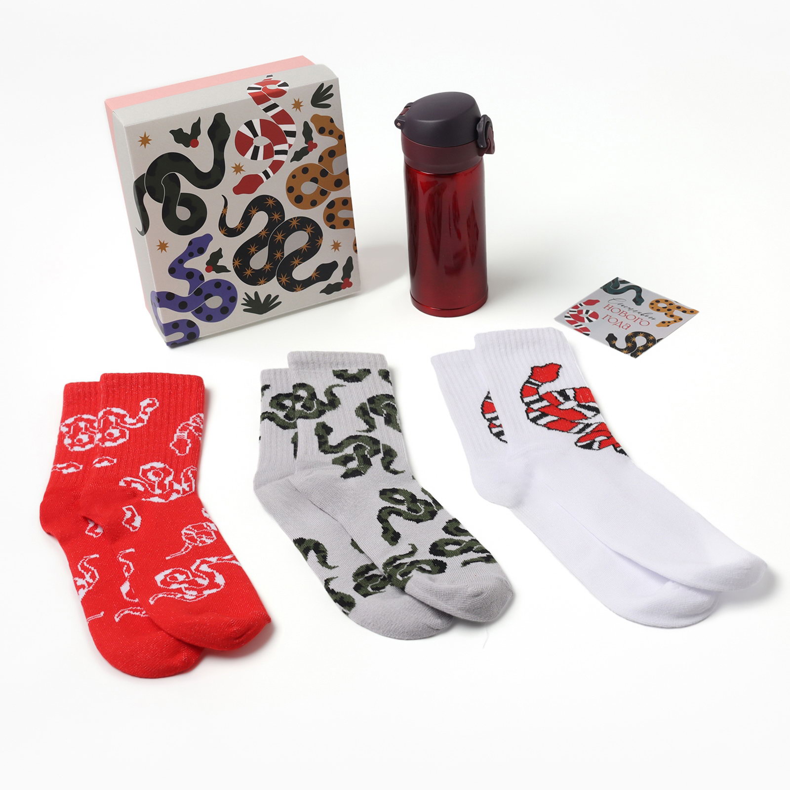 Подарочный набор термос и носки 3 пары Snake, размер 36-39, KAFTAN, Россия