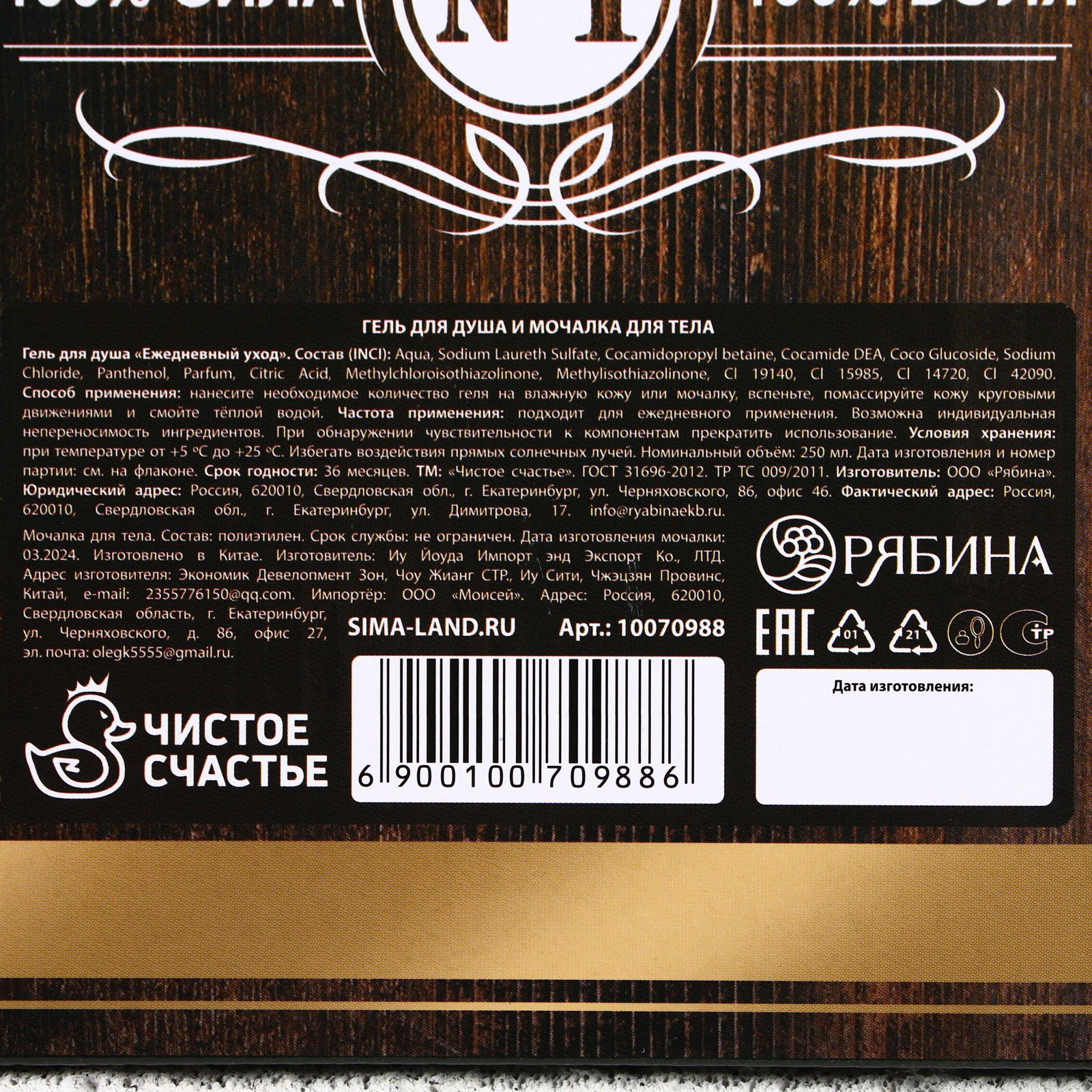 Подарочный набор "Крутой мужик", гель для душа виски 250 мл и мочалка для тела, 250 мл., Чистое счастье, Россия