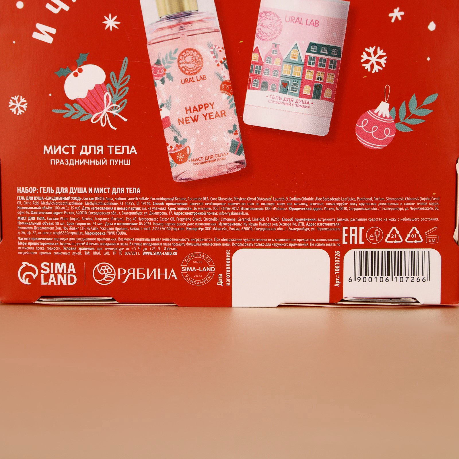 Подарочный набор новогодний женский "Исполнения желаний": гель для душа 100 мл и мист для тела 88 мл, URAL LAB, Россия
