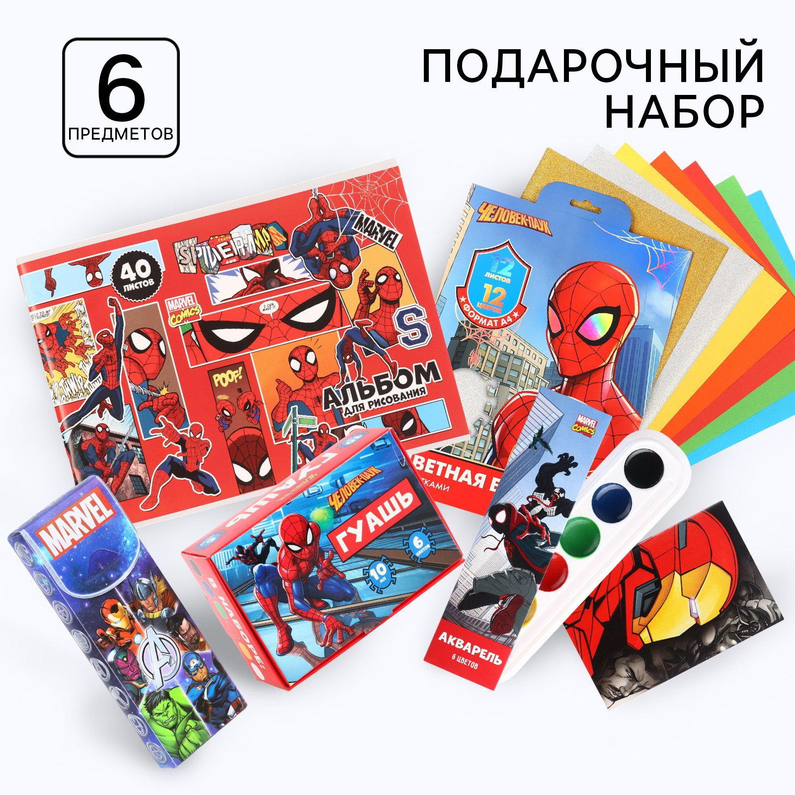 Подарочный набор канцелярский, 6 предметов, для мальчиков, Человек паук, 23x31x4 см., MARVEL, Китай