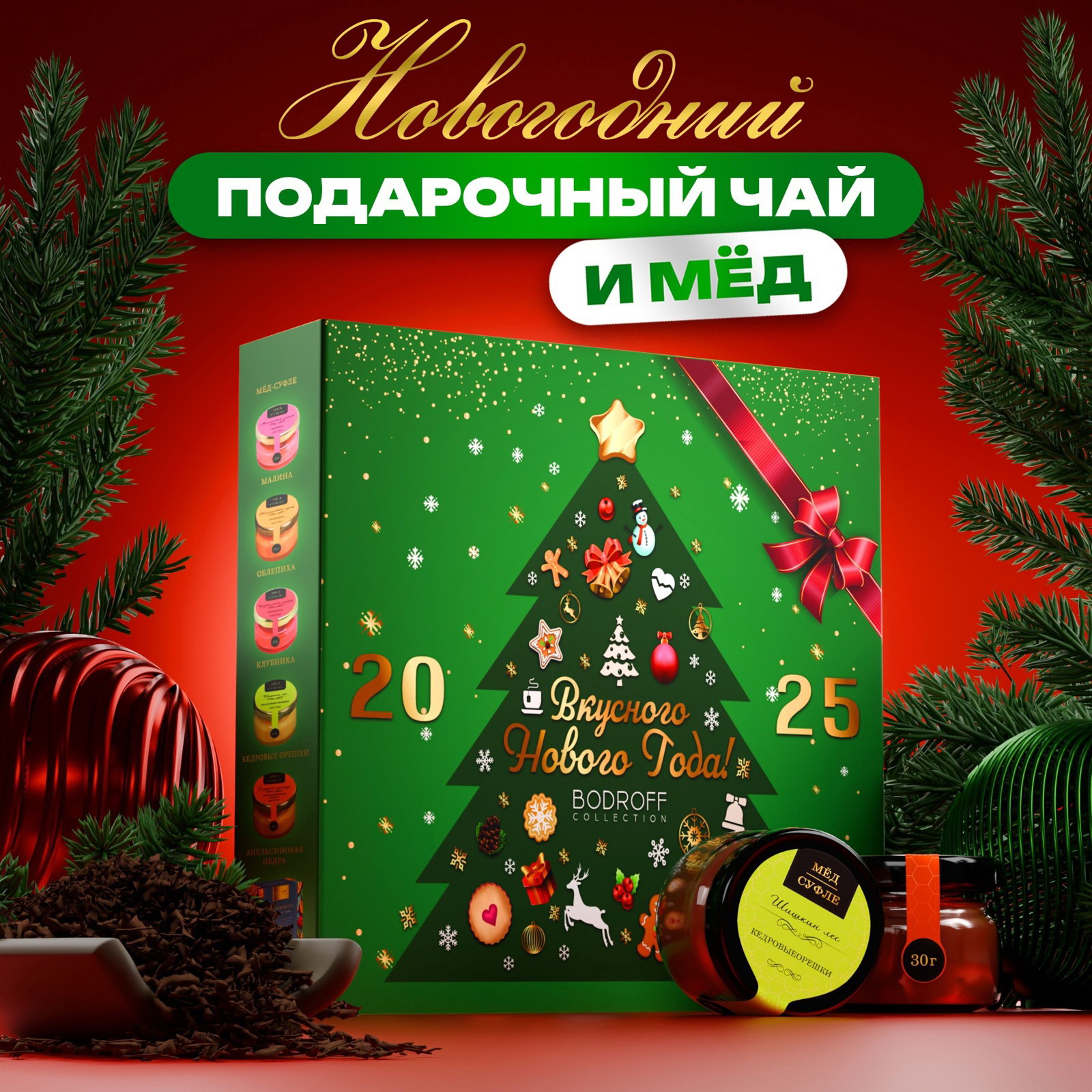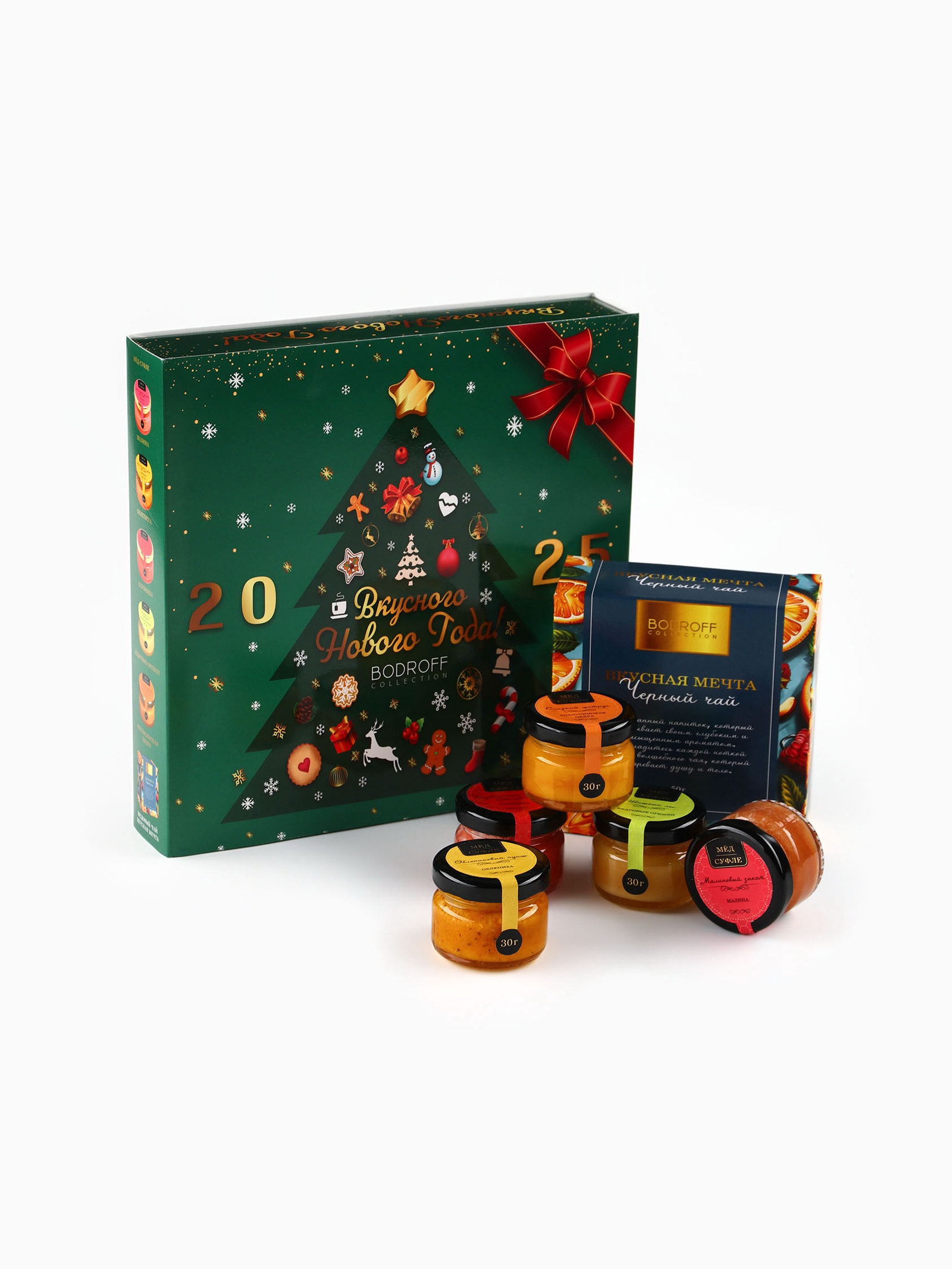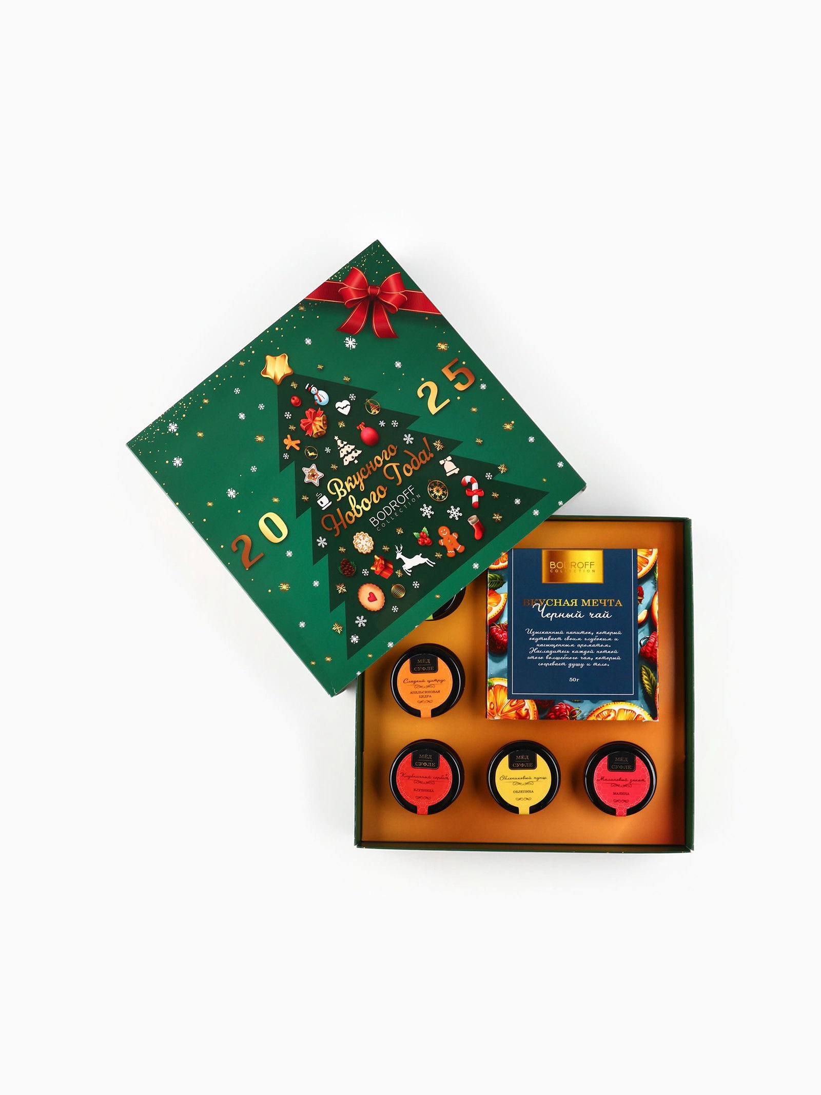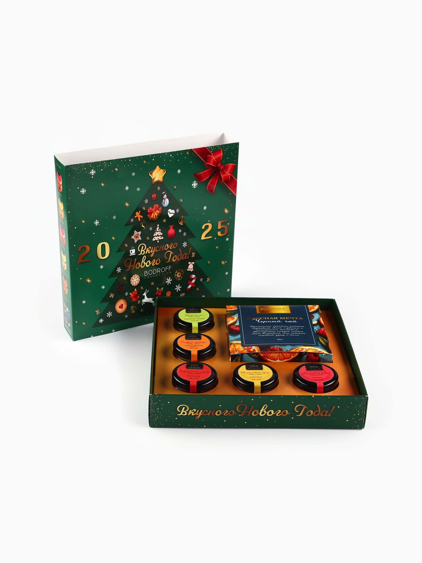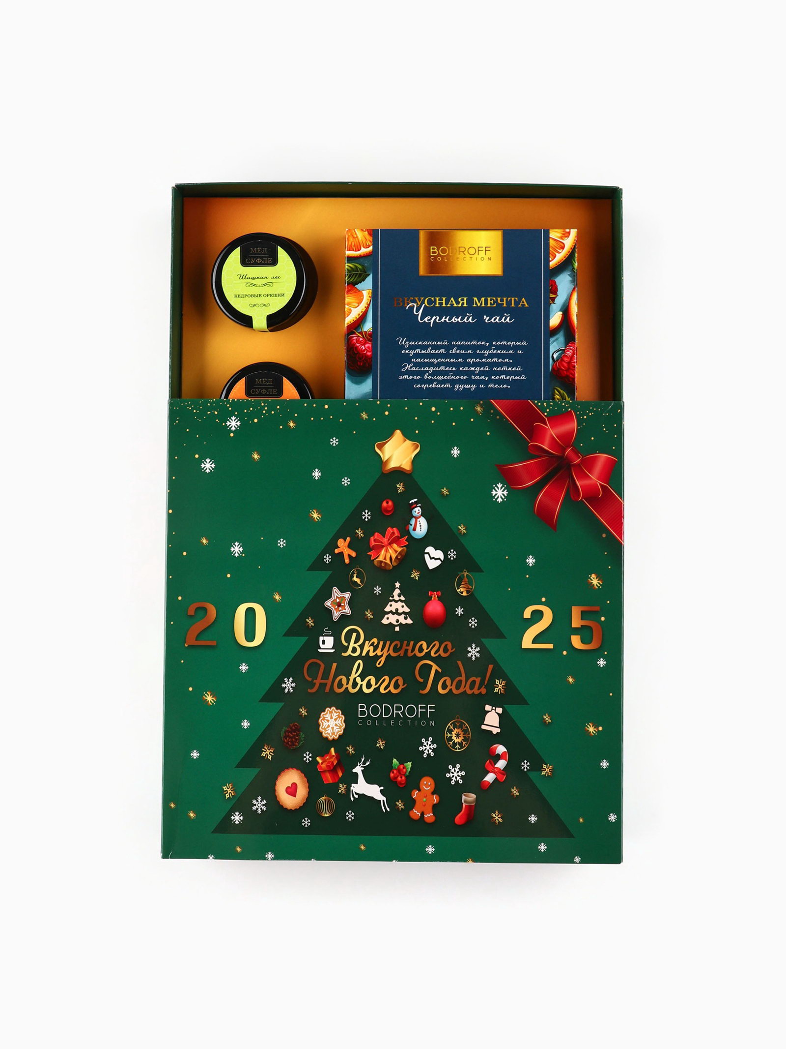Подарочный набор новогодний "Вкусного Нового Года", мед кремовый, чай, Фабрика счастья, Россия