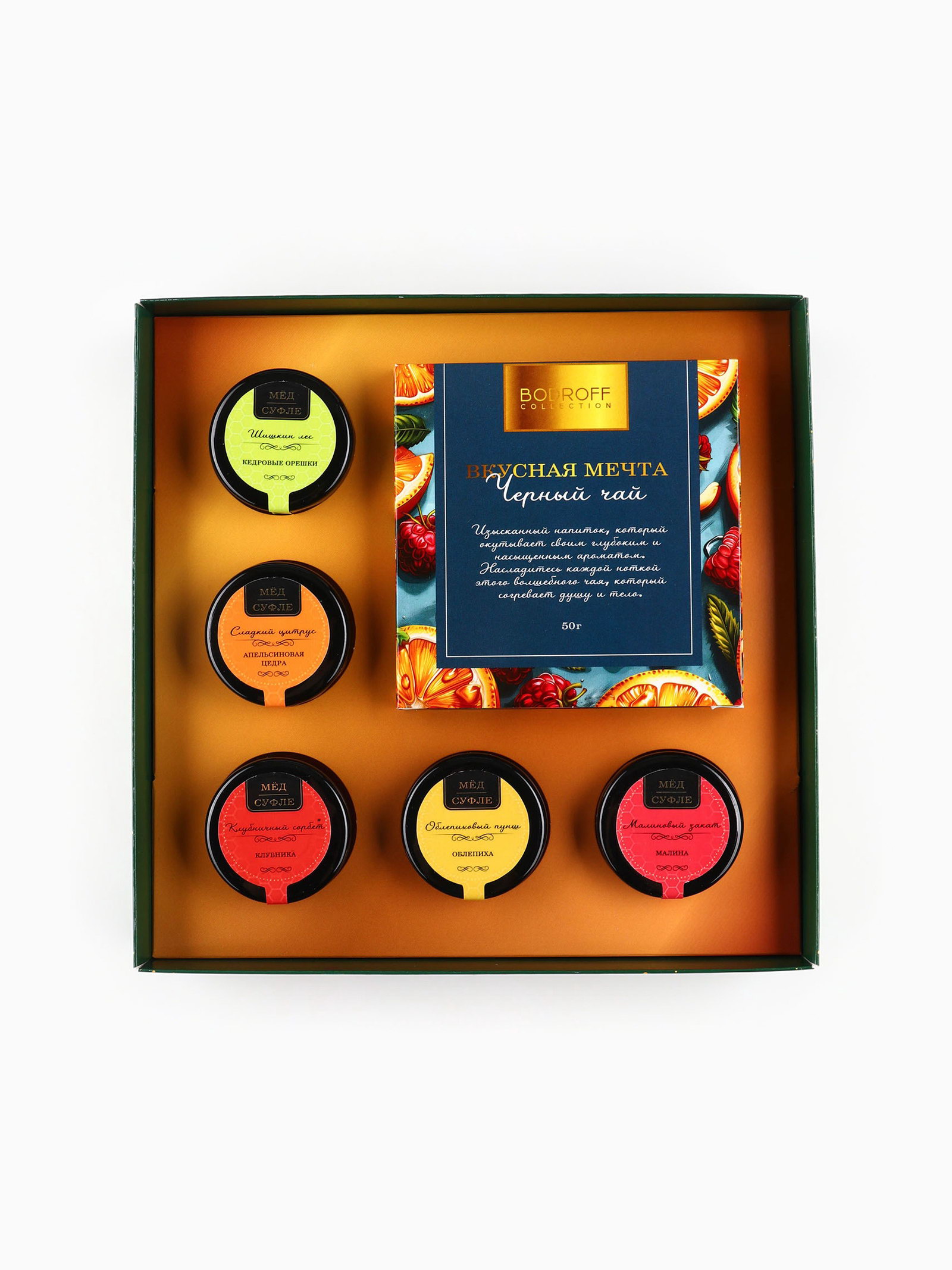 Новогодняя коллекция: Новый год, Рождество, Символ года 2025 Составляющие набора: Мёд, Чай Размер упаковки: 21 x 4 x 21 см. Температурное ограничение: Нет Вид чая: Чёрный Фасовка: Весовой Добавки чая: Без добавок Тематика: Новогодняя Для кого: Унисекс Вид упаковки: Коробка картонная tnved: 902300000 Запрет реализации по сегментам: 00000000266 Тематика подарка: Продукты питания Адресат: Без адресата В наборе, шт.: 2 Вес нетто, г: 200 Тематика праздника: Новый год Чай чёрный "Зимняя вишня", ароматизированный Состав: чай чёрный байховый, ароматизатор. Крем-мёд с клубникой. Состав: крем-мёд, клубника сублимационной сушки. Пищевая ценность на 100 г: белки – 1 г, жиры – 0 г, углеводы – 81 гр Энергетическая ценность (калорийность): 1373 кДж (328 ккал). Крем-мёд с апельсином. Состав: крем-мёд, апельсин сублимационной сушки. Пищевая ценность на 100 г: белки – 1 г, жиры – 0 г, углеводы – 78 гр Энергетическая ценность (калорийность): 1323 кДж (316 ккал). Крем-мёд с малиной Состав: мёд натуральный, малина сублимационной сушки. Пищевая ценность на 100 г: белки – 1,5 г, жиры – 0 г, углеводы – 78 гр Энергетическая ценность (калорийность): 1331 кДж (318 ккал). Крем-мёд с клюквой Состав: мёд натуральный, клюква сублимационной сушки. Пищевая ценность на 100 г: белки – 1 г, жиры – 0 г, углеводы – 78 гр Энергетическая ценность (калорийность): 1323 кДж (316 ккал). Крем-мёд с имбирём Состав: крем-мёд, корень имбиря. Пищевая ценность на 100 г: белки – 2,0 г, жиры – 1 г, углеводы – 78,0 гр Энергетическая ценность (калорийность): 1377 кДж (329 ккал). | ||