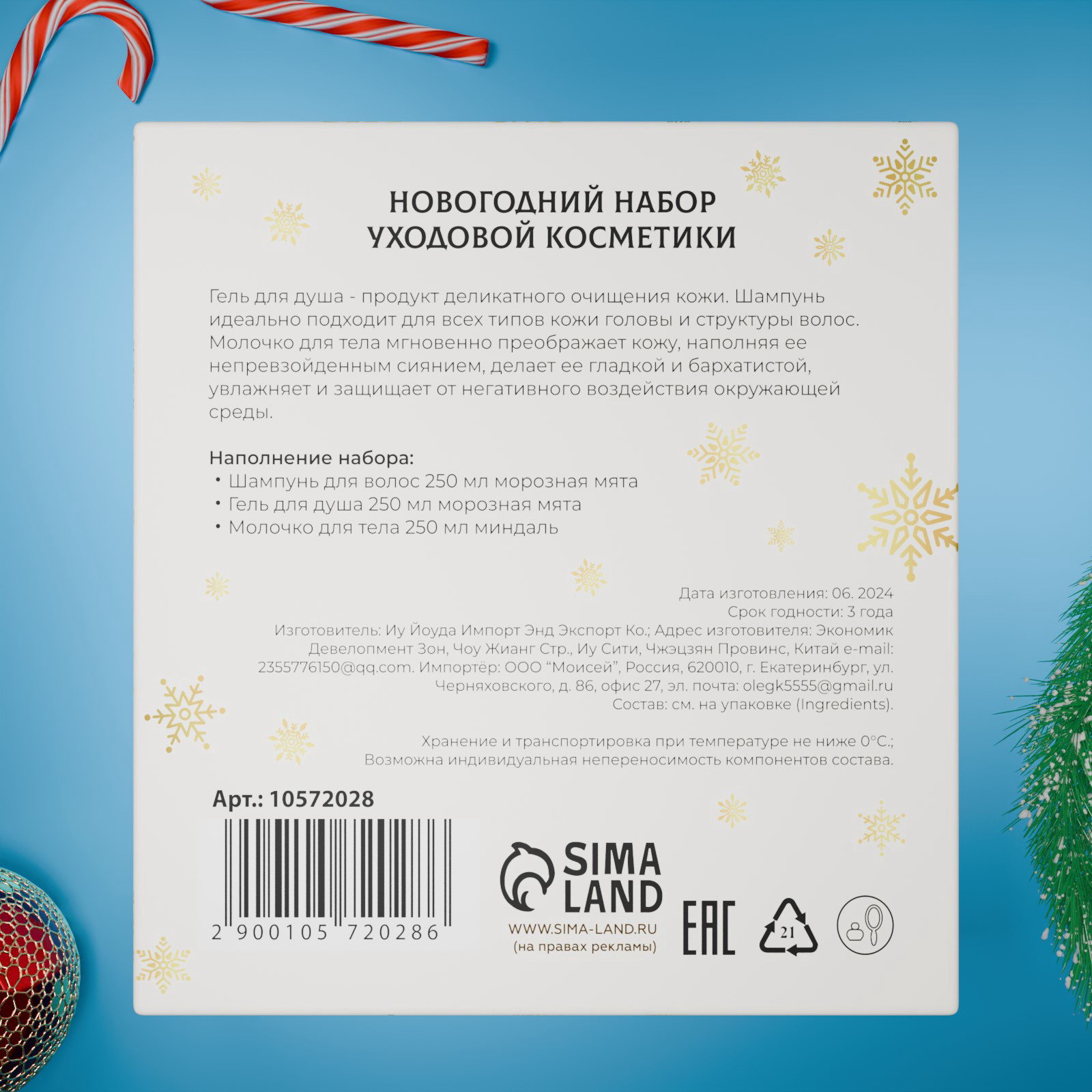 Тематика праздника: Новый год, Рождество Назначение: Питание и восстановление, Увлажнение Составляющие набора: Гель для душа, Кондиционер, Шампунь Возраст: Взрослый, Для взрослых, Подростковый Аромат: Миндаль, Мята Тематика: Новогодняя, Рождественская Размер упаковки: 16 x 5.5 x 17 см. Для кого: Унисекс Набор: Да Форма выпуска: Флакон без дозатора Адресат: Без адресата Вид упаковки: Картонная упаковка Тематика подарка: Уходовая косметика В наборе, шт.: 3 Символ года: Нет Символ года: Нет tnved: 3401300000 tnved: 3401300000 Новогодний подарочный набор косметики SB Beauty идеальный выбор для тех, кто хочет подарить не только заботу, но и атмосферу праздника. Этот набор включает в себя три незаменимых средства для ухода, каждое из которых подарит ощущение свежести и уюта в зимние дни. Состав набора: