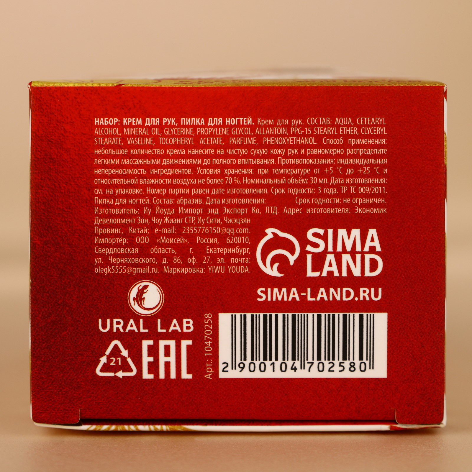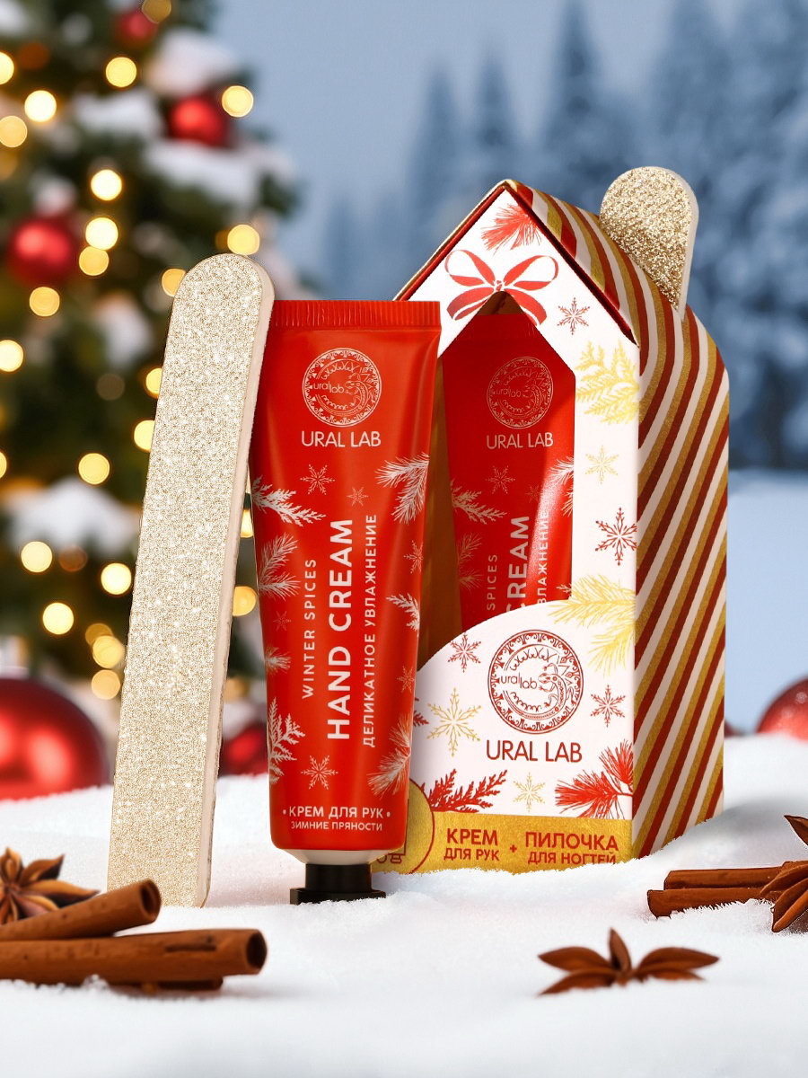 Новогодний подарочный набор косметики: крем для рук 30 мл и пилка для ногтей, 2x9x16 см., URAL LAB, Китай