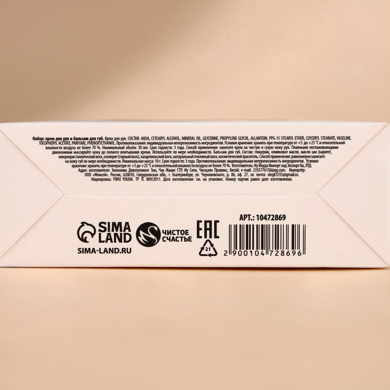 Новогодний подарочный набор косметики "Снежные поцелуи": крем для рук 30 мл и бальзам для губ 10 г, 2x9x16 см., URAL LAB, Китай