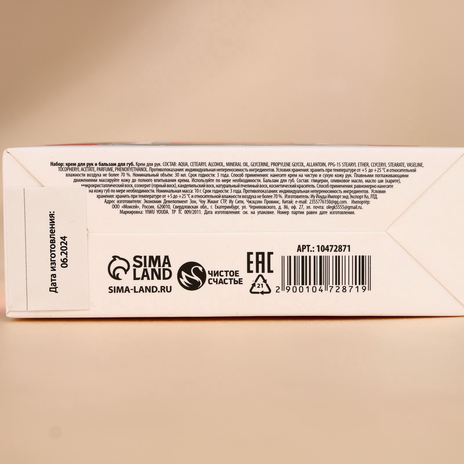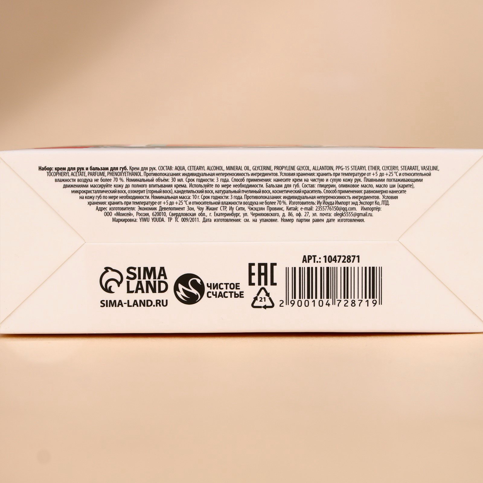 Новогодний подарочный набор косметики "Чудесных мгновений": крем для рук 30 мл и бальзам для губ 10 г, 2x9x16 см., URAL LAB, Китай
