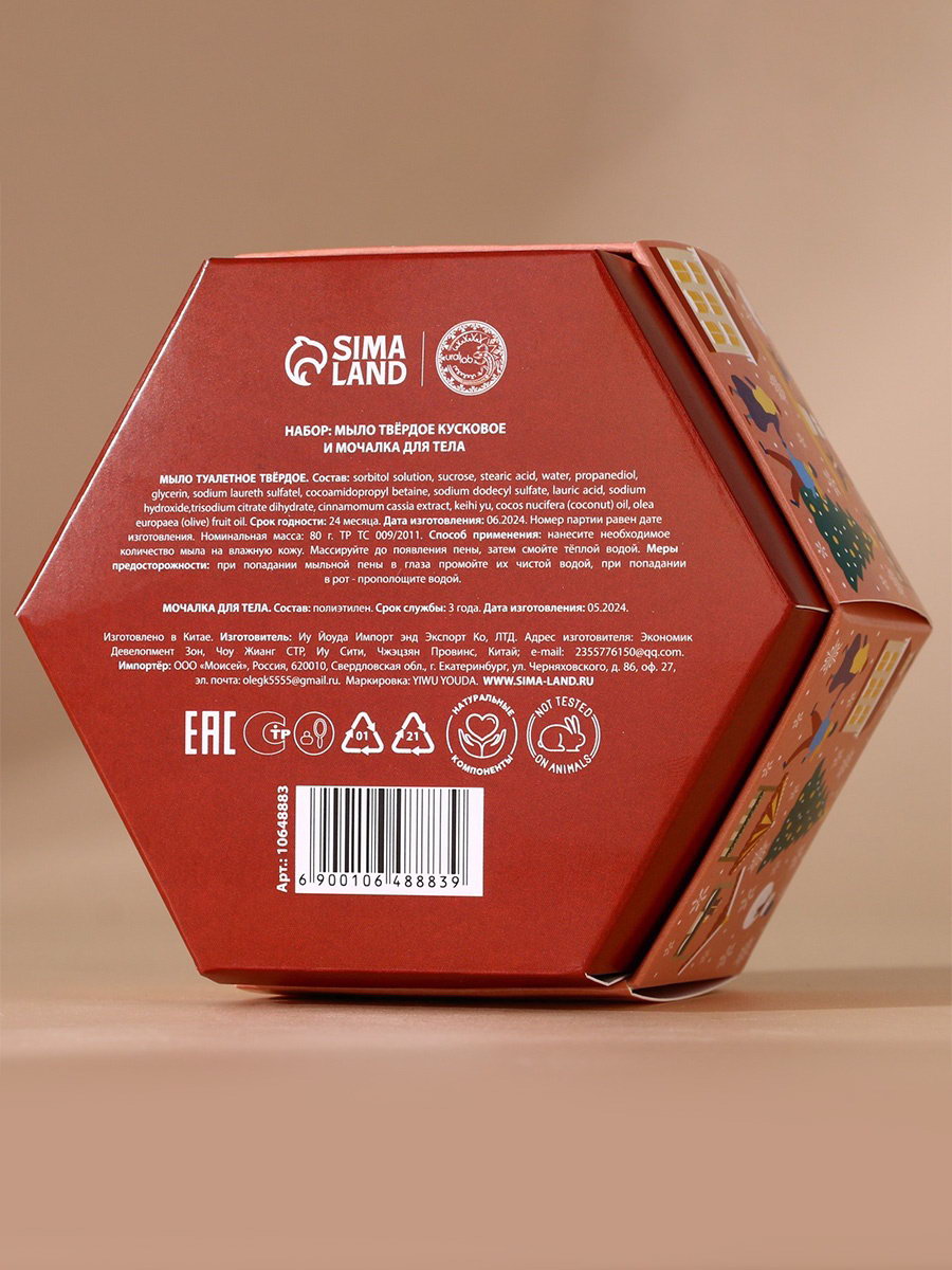 Новогодний подарочный набор косметики "Волшебные истории", мыло для рук кусковое 100 г и мочалка для тела, URAL LAB, Китай