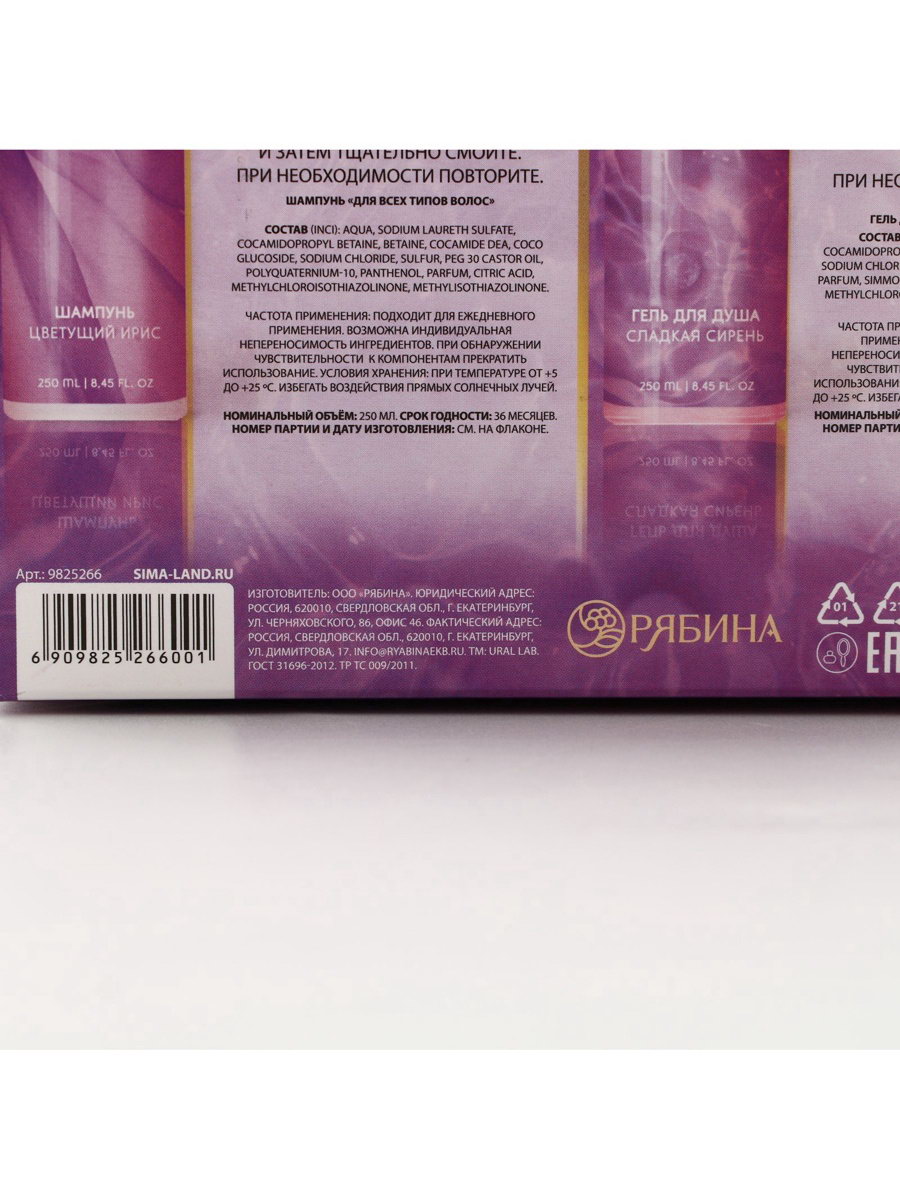 Возраст: Взрослый, Для взрослых Аромат: Ирис, Сирень Составляющие набора: Гель для душа, Шампунь Область применения: Для волос, Для тела Вид: Гель для душа, Шампунь Размер упаковки: 14.5 x 20 x 7.5 см. В наборе, шт.: 2 Вид упаковки: Подарочная коробка Тематика праздника: Универсальная тематика Адресат: Без адресата Для кого: Для женщины Тематика подарка: Уходовая косметика Назначение: Очищение, детокс Набор: Да Темпер. ограничение НЕ ВЫШЕ ℃: +25 Темпер. ограничение НЕ НИЖЕ ℃: +5 Форма выпуска: Флакон без дозатора Цвет: Сиреневый Эффект: Очищение Тип волос: Для всех типов Вид шампуня: Жидкий tnved: 3401300000 tnved: 3401300000 | ||