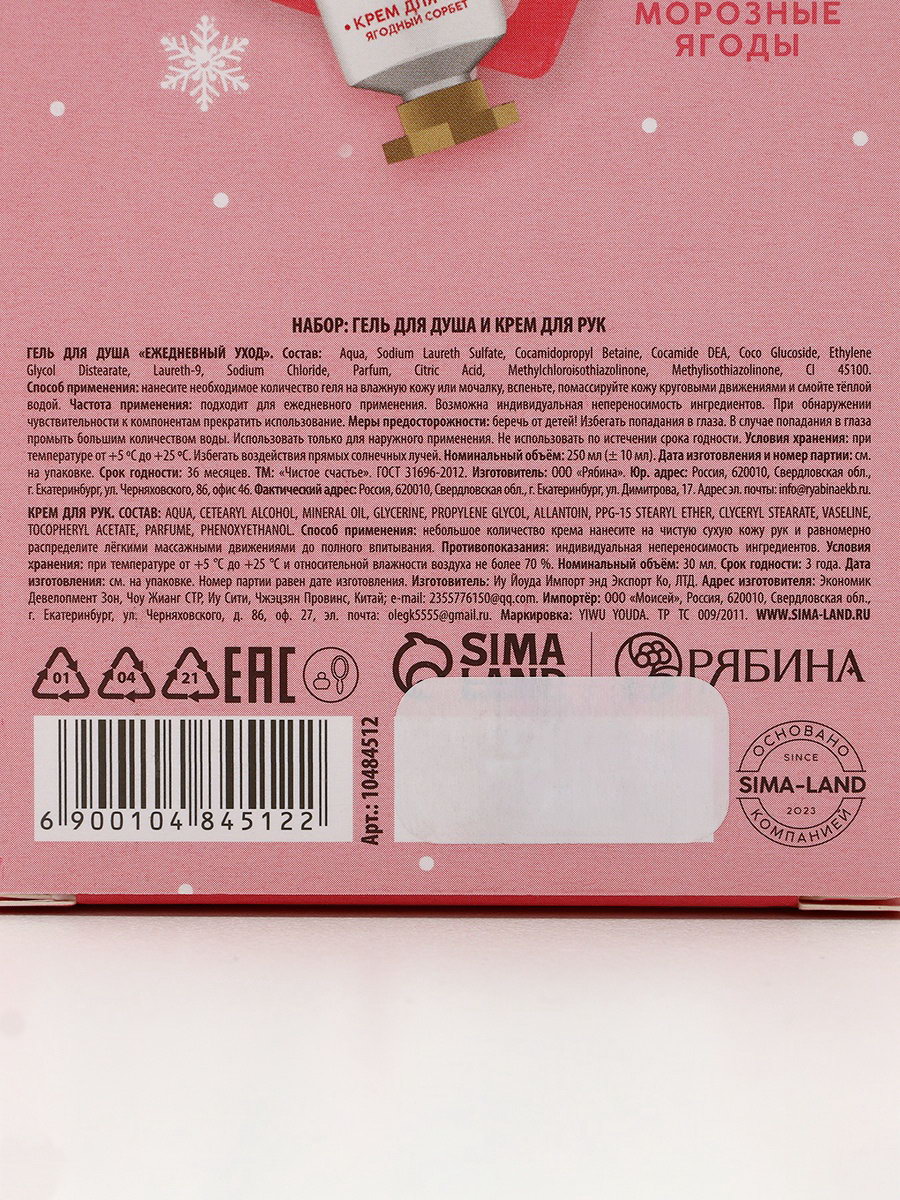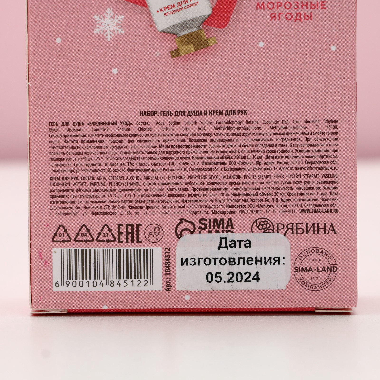 Возраст: Взрослый, Для взрослых Составляющие набора: Гель для душа, Крем для рук Аромат: Ягодный сорбет, Ягоды Объём, мл: 30, 250 Назначение: Очищение, детокс, Увлажнение Область применения: Для рук, Для тела Размер упаковки: 8.5 x 19 x 4 см. В наборе, шт.: 2 Адресат: Без адресата Вид упаковки: Подарочная коробка Тематика праздника: Новый год Для кого: Для женщины Тематика подарка: Уходовая косметика Цвет: Розовый Темпер. ограничение НЕ НИЖЕ ℃: +5 Форма выпуска: Флакон без дозатора Темпер. ограничение НЕ ВЫШЕ ℃: +25 Набор: Да Символ года: Нет Символ года: Нет tnved: 3401300000 Тематика: Новогодняя | ||