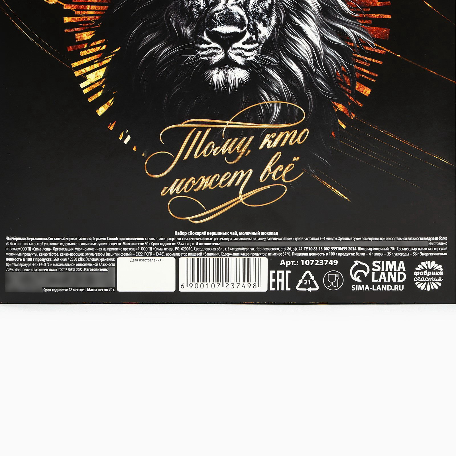 Подарочный набор "Покоряй вершины": чай 50 гр, шоколад 70 гр, Фабрика счастья, Россия