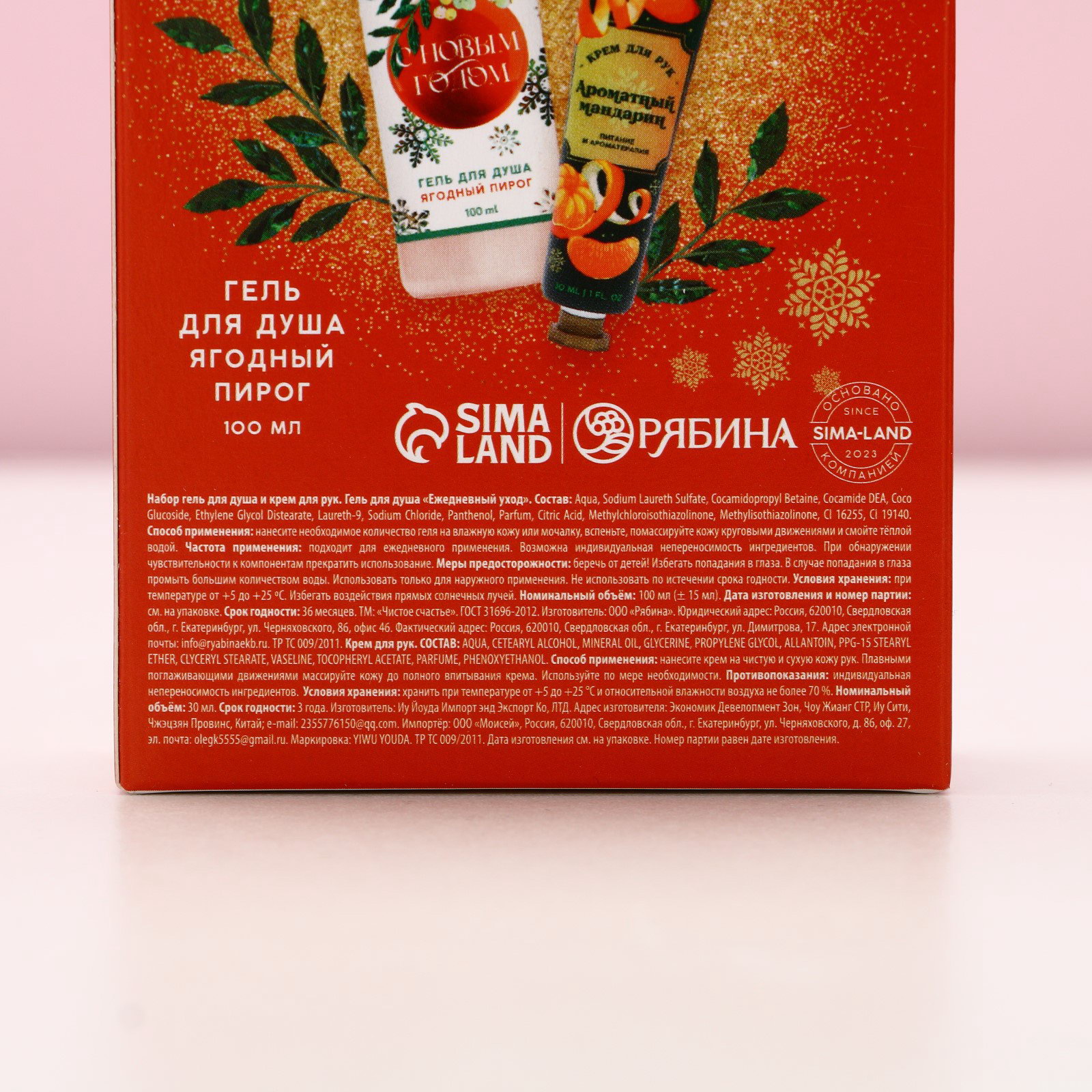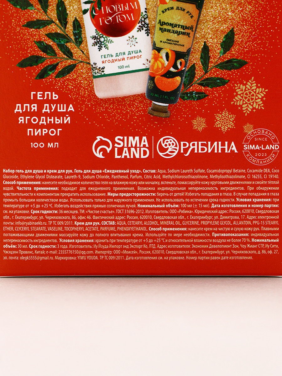 Новогодний подарочный набор косметики "С праздником", гель для душа 100 мл и крем для рук 30 мл, Чистое счастье, Россия