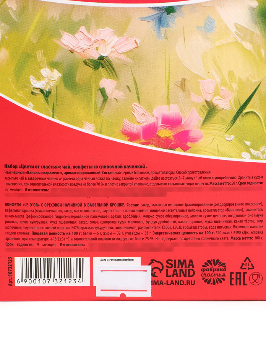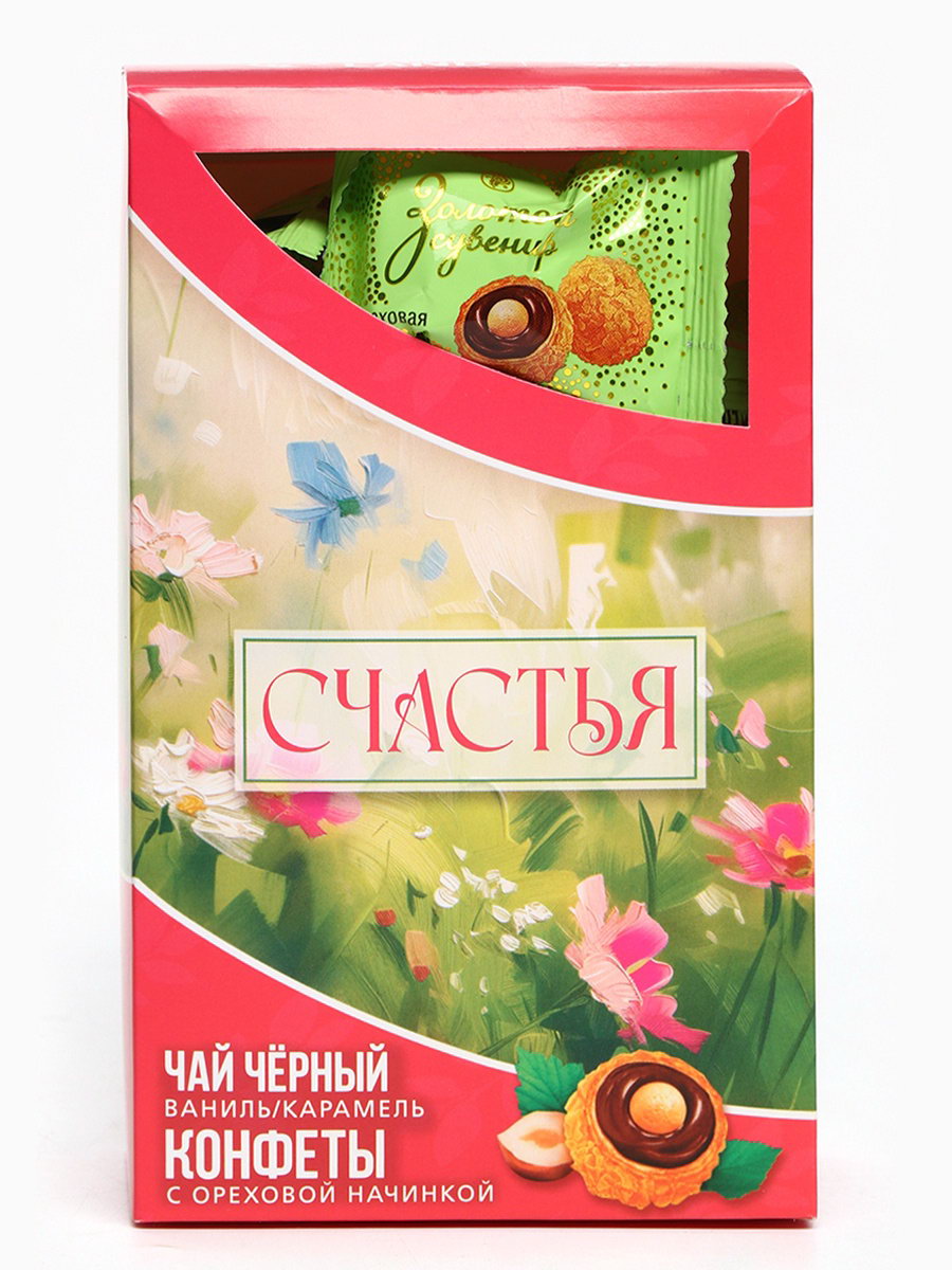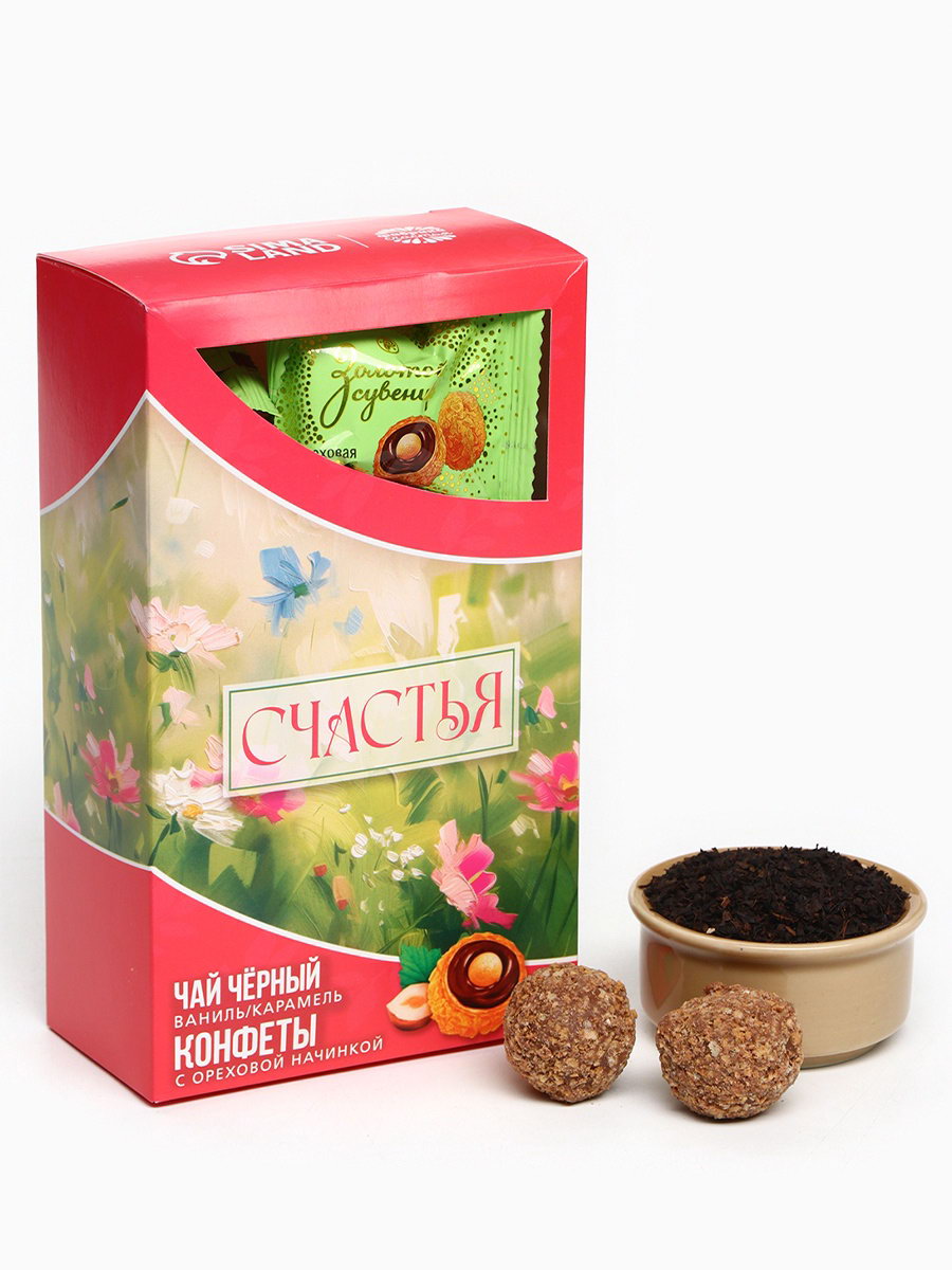 Подарочный набор "Счастья": чай 50 г, конфеты 150 г, Фабрика счастья, Россия