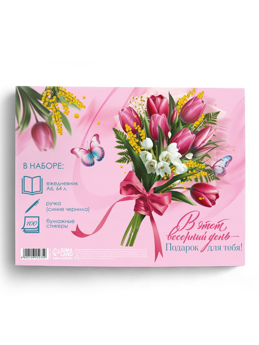 Подарочный набор "8 марта!", ежедневник А6, блок с липким слоем, ручка, ArtFox, Россия