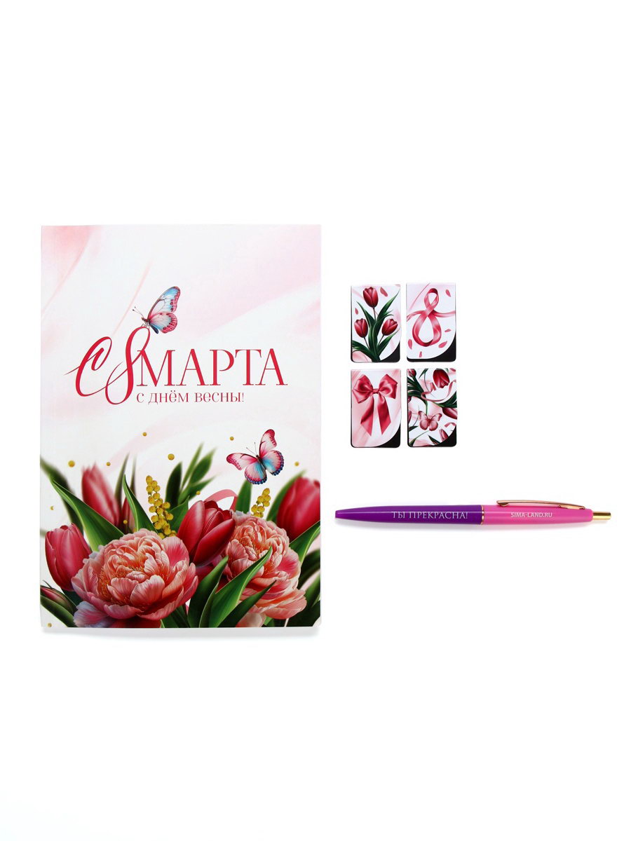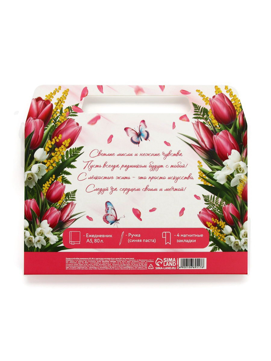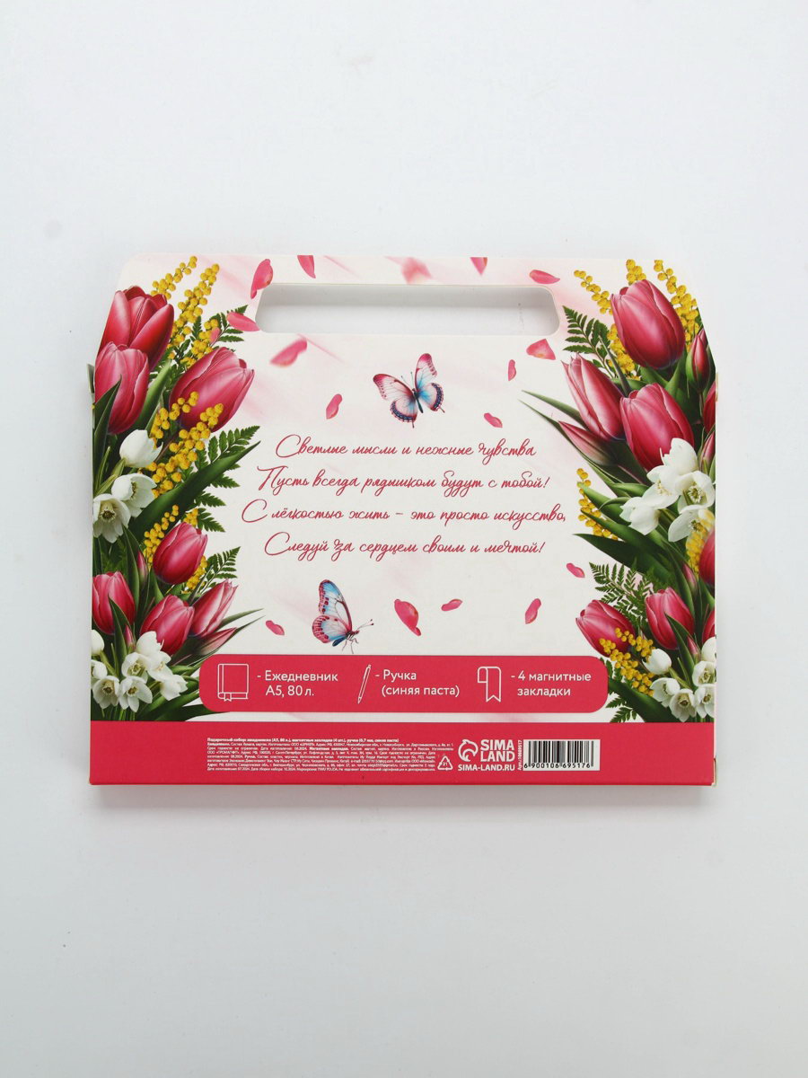 Подарочный набор "С 8 марта!", ежедневник А5, магнитные закладки и ручка, ArtFox, Россия