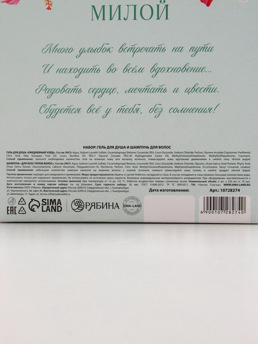 Подарочный набор "Самой милой", гель для душа и шампунь для волос, 2x250, 250 мл., Чистое счастье, Россия
