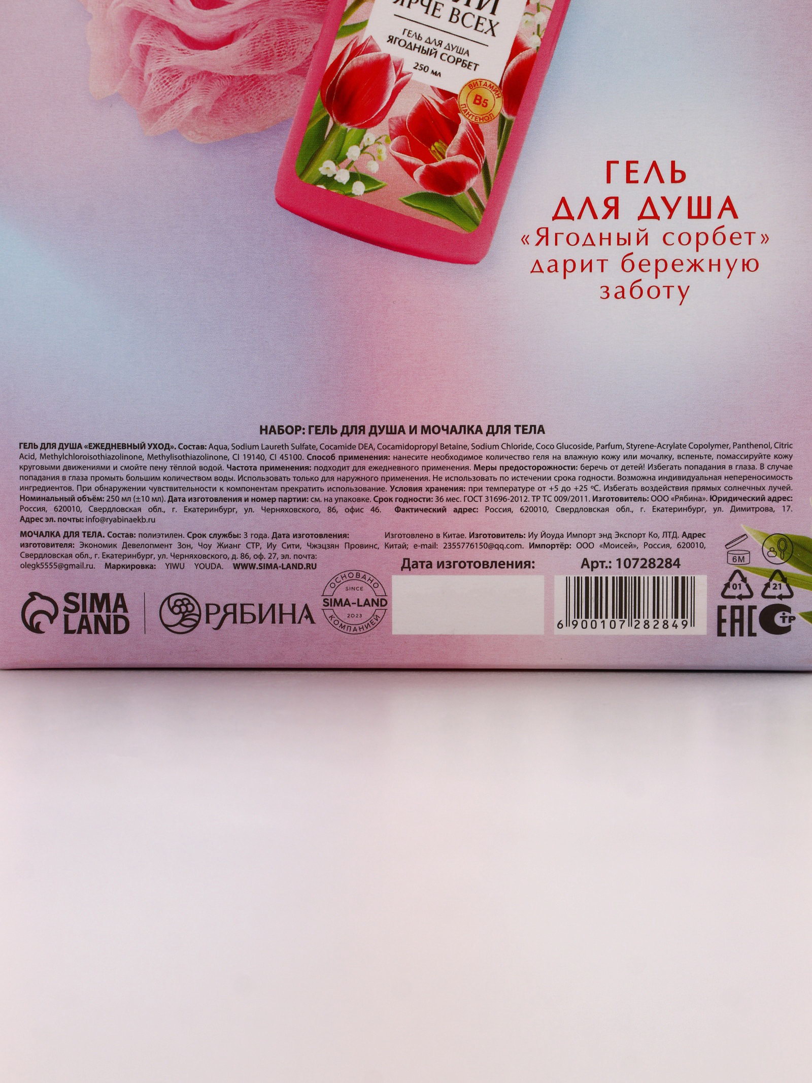 Вид: Гель, Мочалка Возраст: Взрослый, Для взрослых Составляющие набора: Гель для душа, Мочалка Тематика праздника: 8 Марта, Универсальная тематика Область применения: Для тела, Для тела Размер упаковки: 13.5 x 18.5 x 5.5 см. В наборе, шт.: 2 Темпер. ограничение НЕ ВЫШЕ ℃: +25 Темпер. ограничение НЕ НИЖЕ ℃: +5 Набор: Да Форма выпуска: Флакон без дозатора Назначение: Очищение, детокс Вид упаковки: Картонная упаковка Тематика подарка: Уходовая косметика Для кого: Для женщины Аромат: Ягодный сорбет Адресат: Без адресата Адресат: Без адресата tnved: 3401300000 | ||