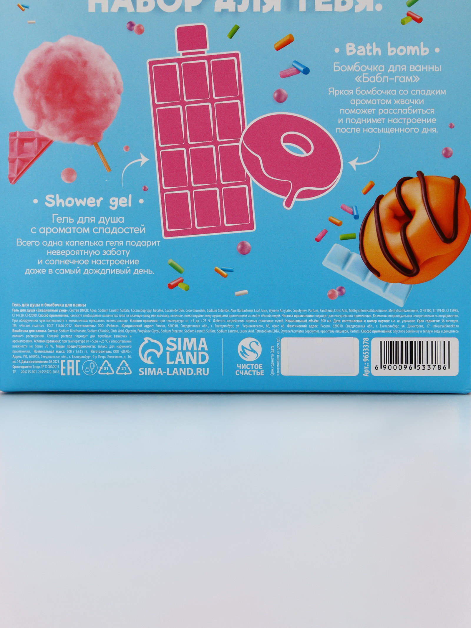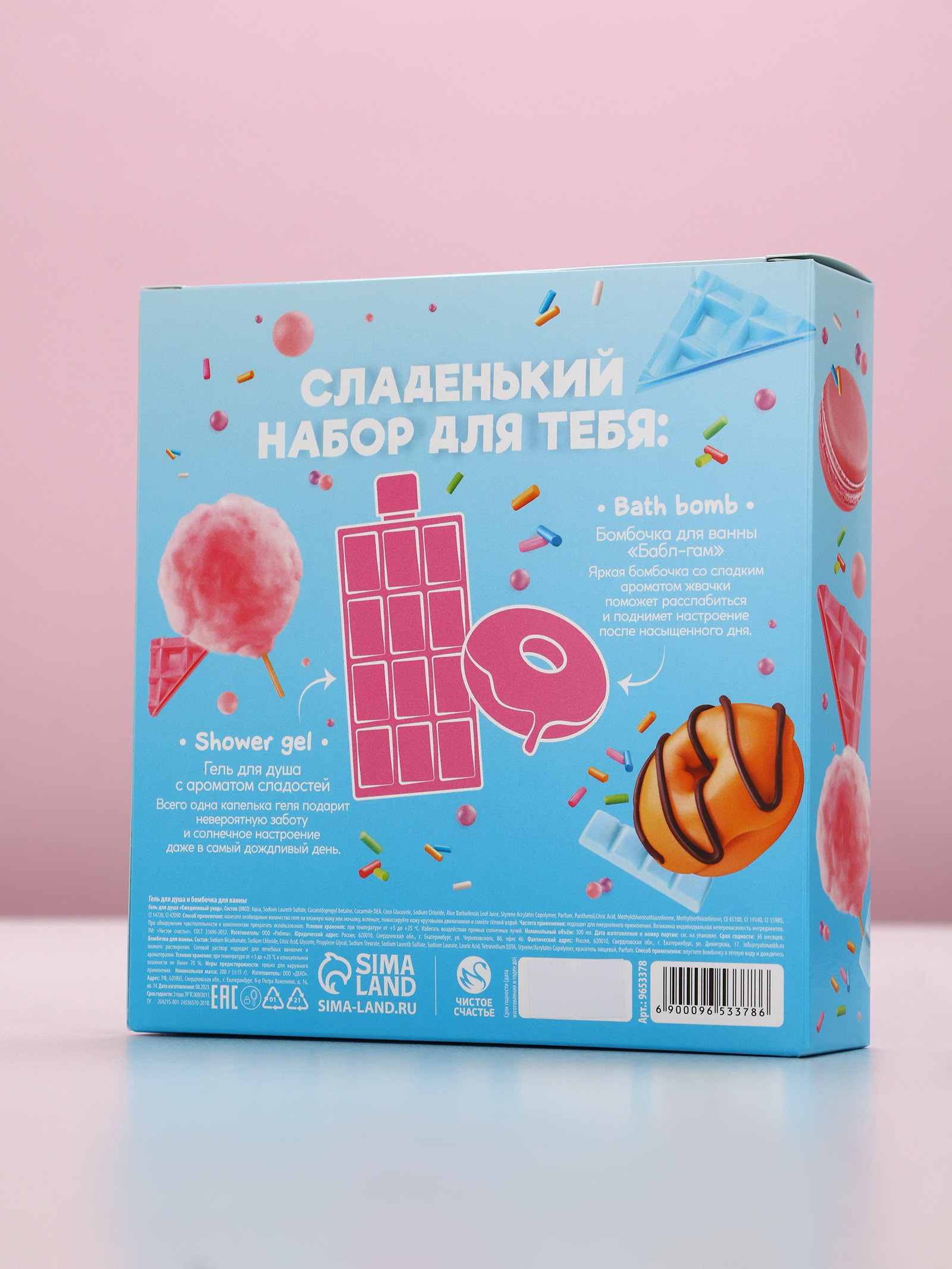 Подарочный набор женский "Сладенький для тебя", гель для душа, бомбочка для ванны, Чистое счастье, Россия