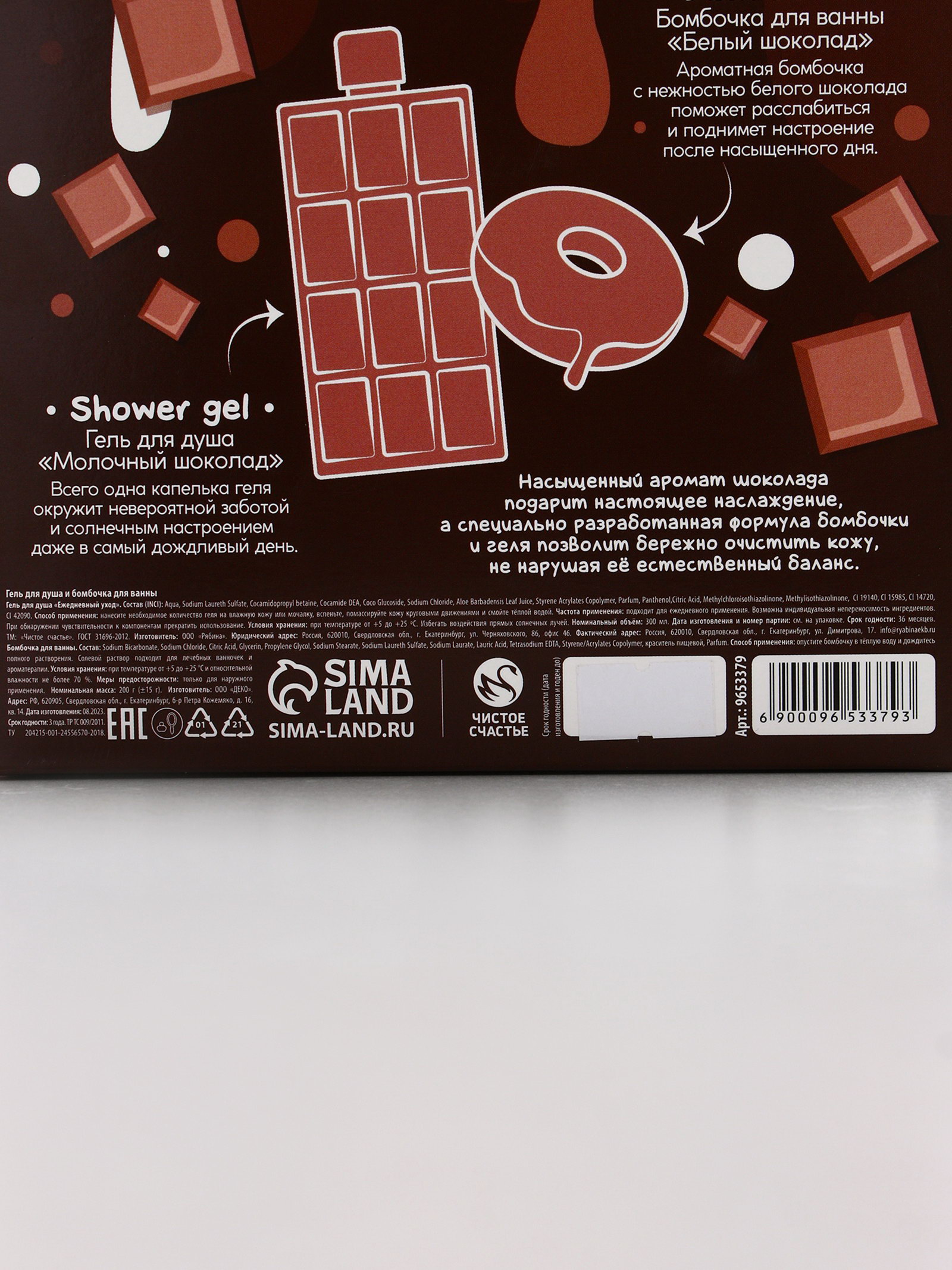 Составляющие набора: Бомбочка для ванн, Гель для душа Возраст: Взрослый, Для взрослых Размер упаковки: 15.5 x 16 x 4 см. Темпер. ограничение НЕ НИЖЕ ℃: -25 Тематика подарка: Уходовая косметика Область применения: Для тела В наборе, шт.: 2 Тематика праздника: Универсальная тематика Адресат: Без адресата Аромат: Молочный шоколад Для кого: Для женщины Вид упаковки: Подарочная коробка Назначение: Очищение, детокс tnved: 3401300000 tnved: 3401300000 Набор: Да Символ года: Нет | ||