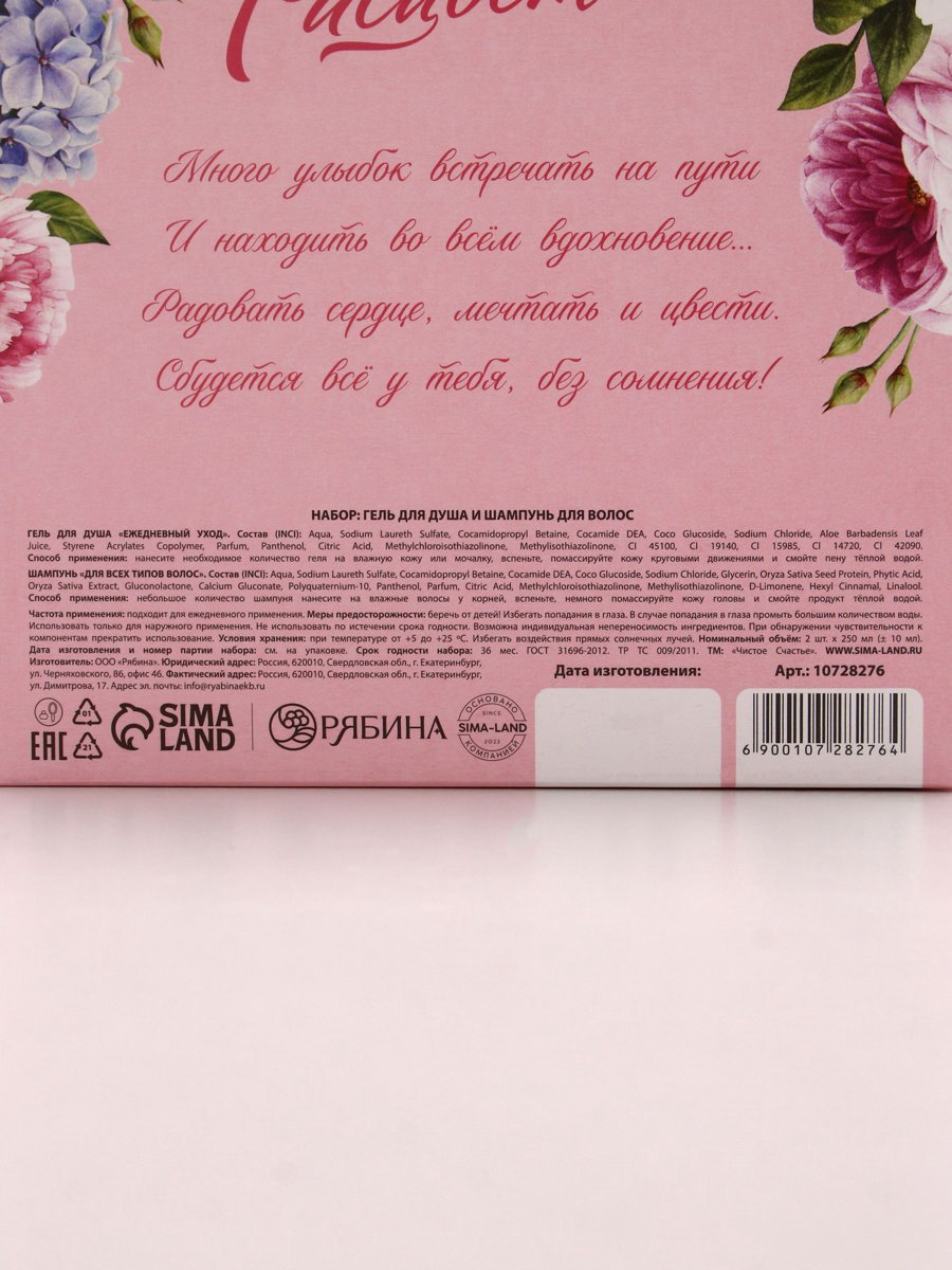 Подарочный набор "Расцветай", гель для душа и шампунь для волос, 2x250 мл, Чистое счастье, Россия