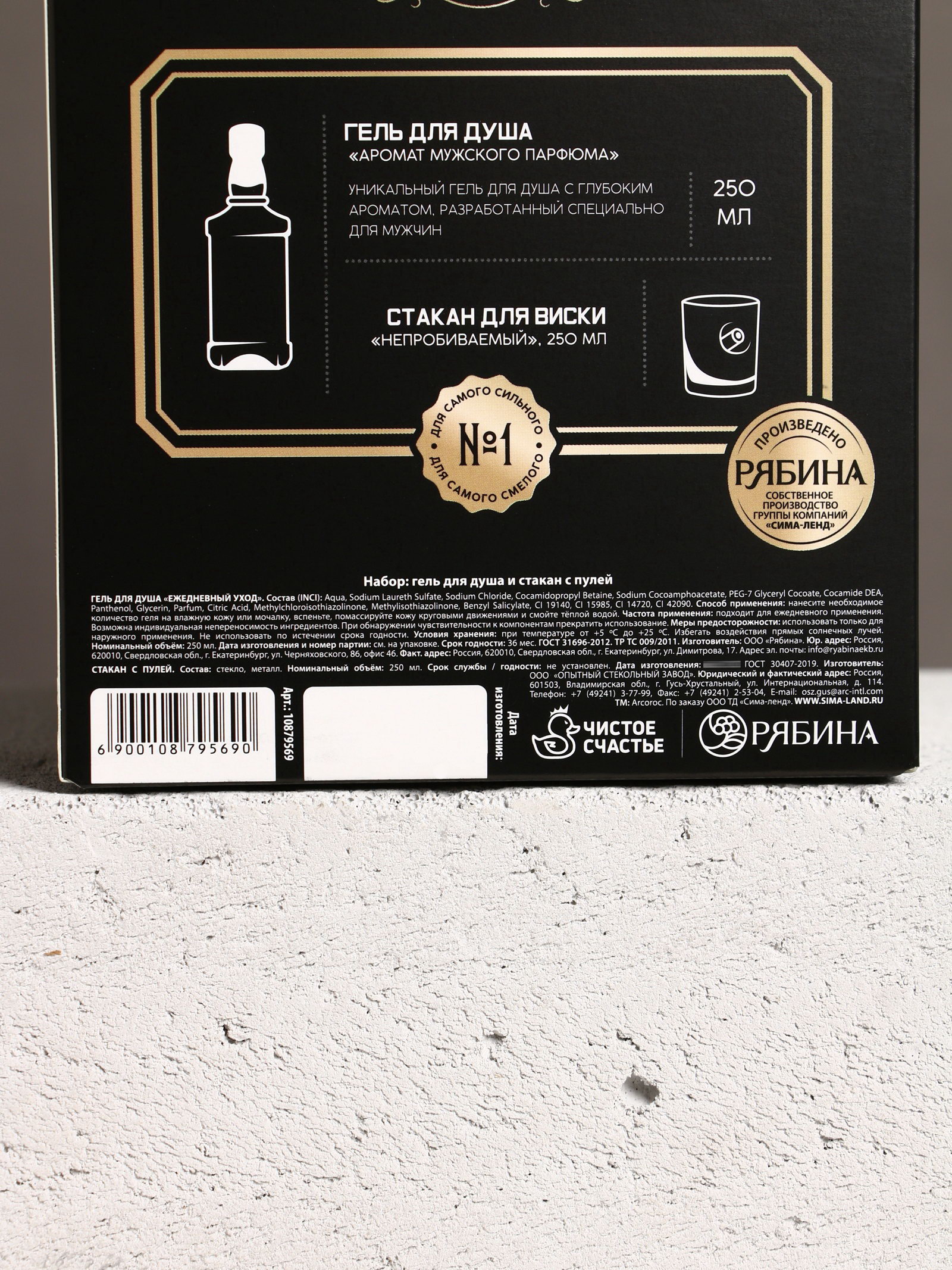Набор "Лучшему мужчине": гель для душа виски 250 мл и стакан с пулей, Чистое счастье, Россия