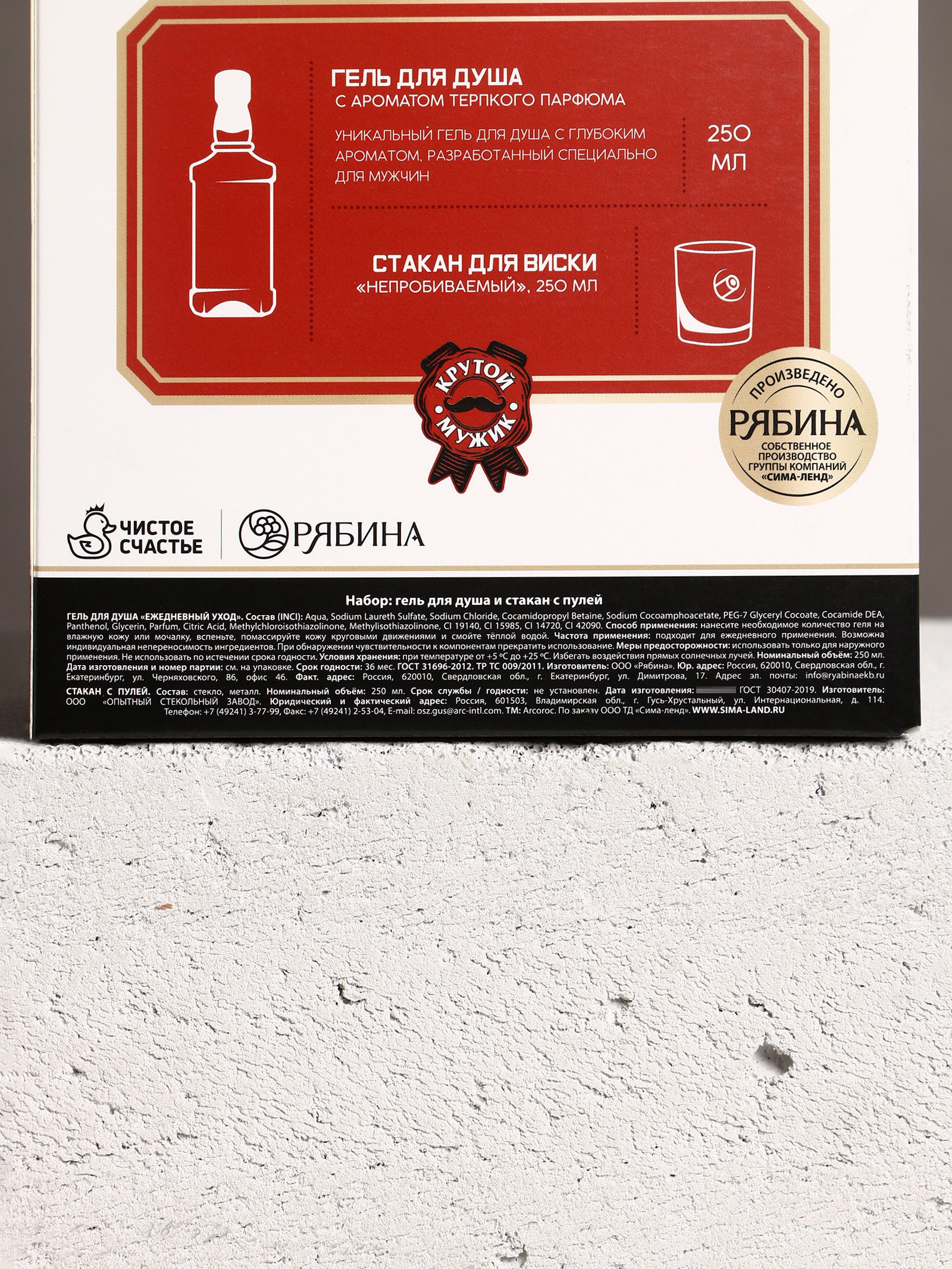 Набор "На удачу", гель для душа виски 250 мл и стакан с пулей, Чистое счастье, Россия
