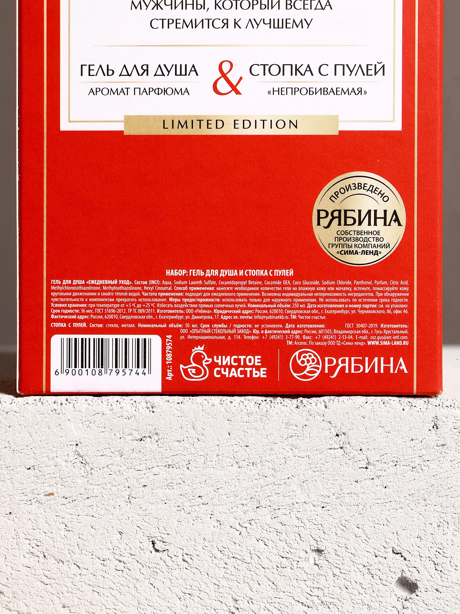 Набор "Отличному мужику", гель для душа во флаконе водка 250 мл и стопка с пулей, Чистое счастье, Россия