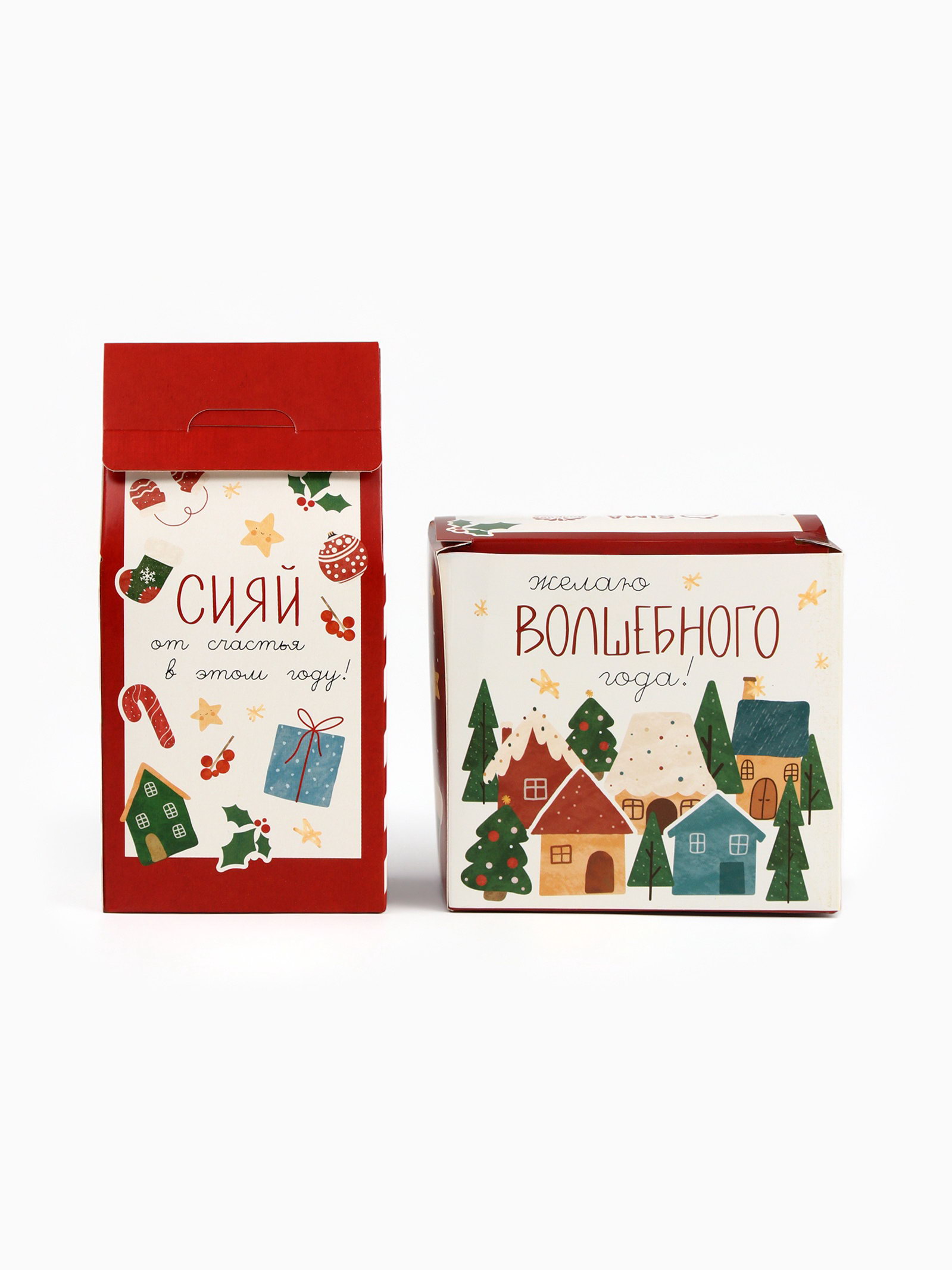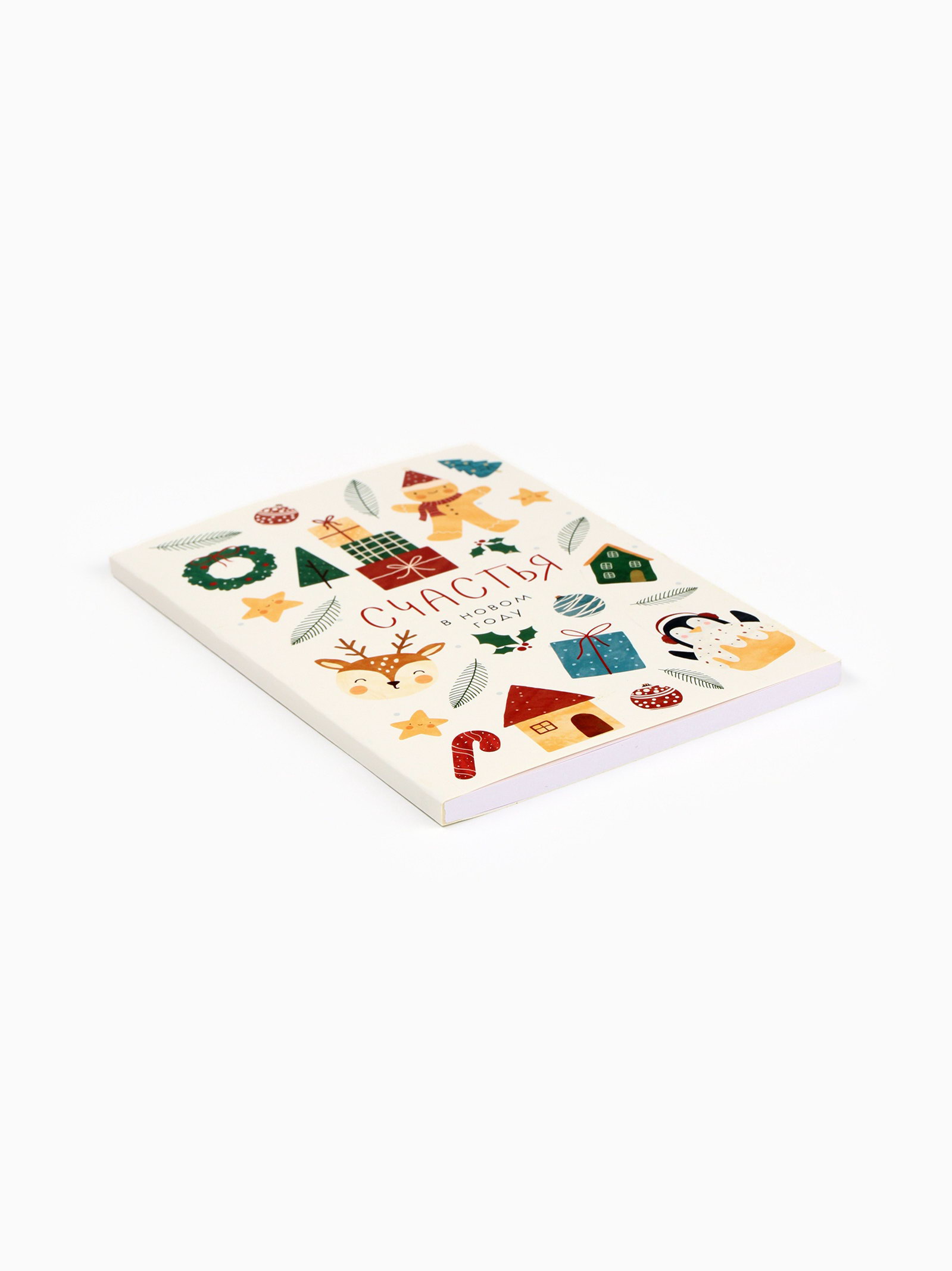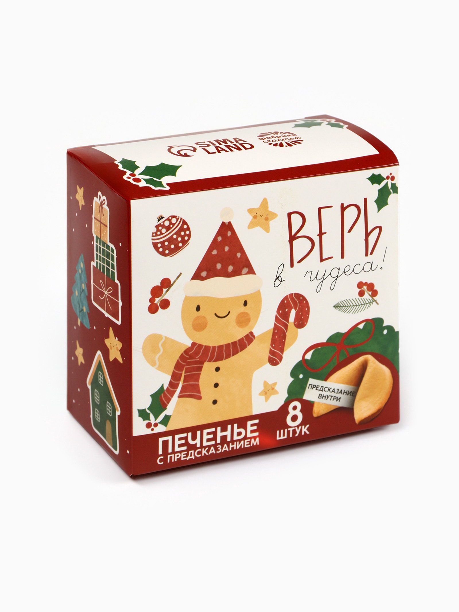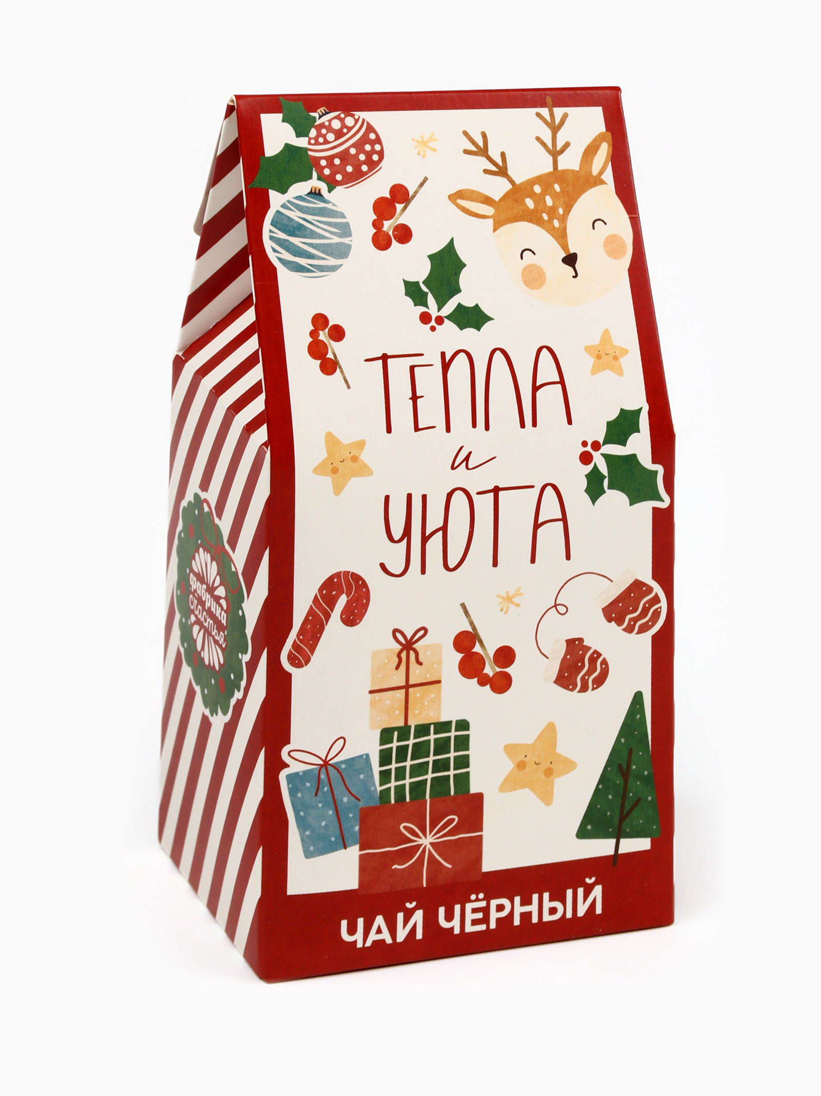 Подарочный набор новогодний: чай 50 г, печенье с предсказанием 8 шт., ежедневник "Тепла и уюта", Фабрика счастья, Россия