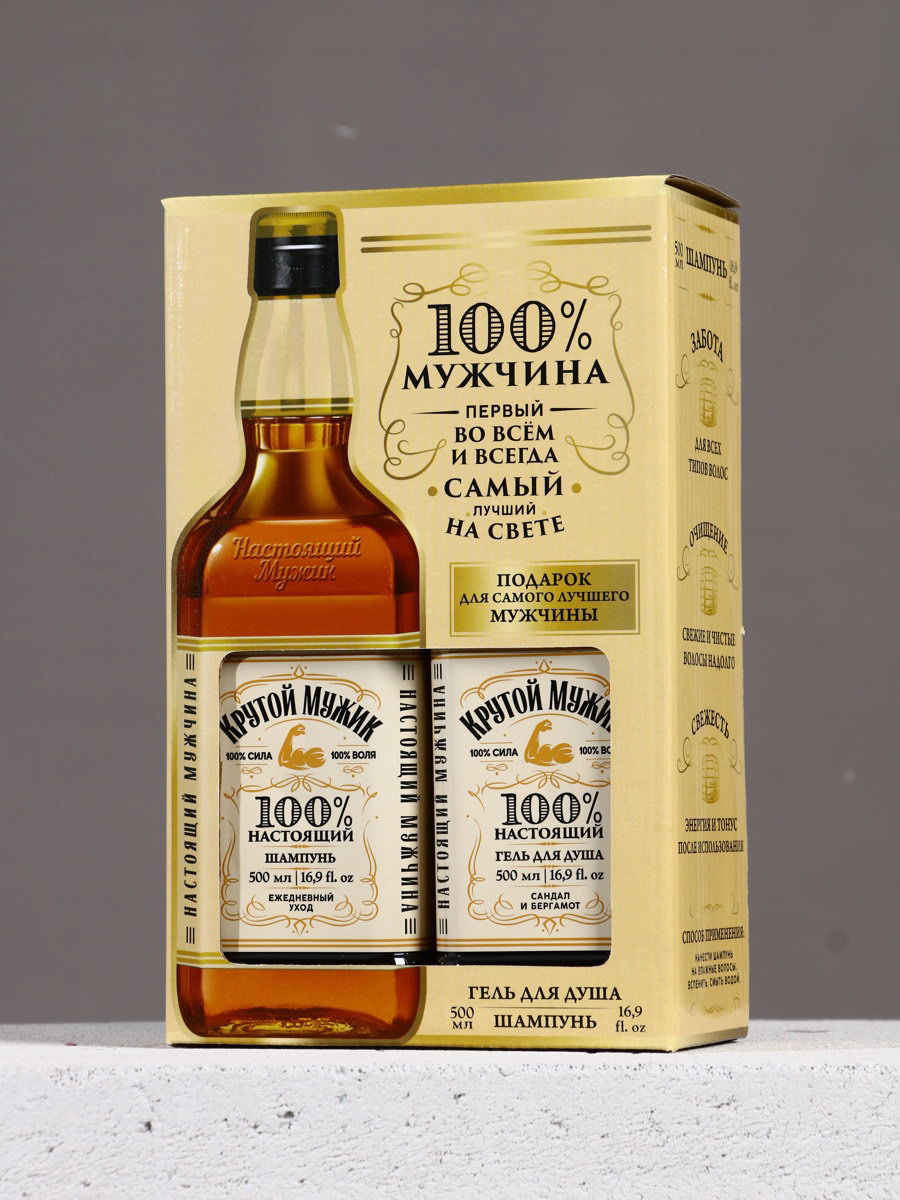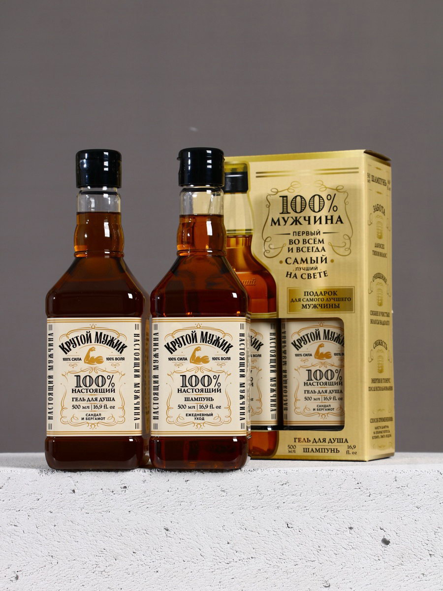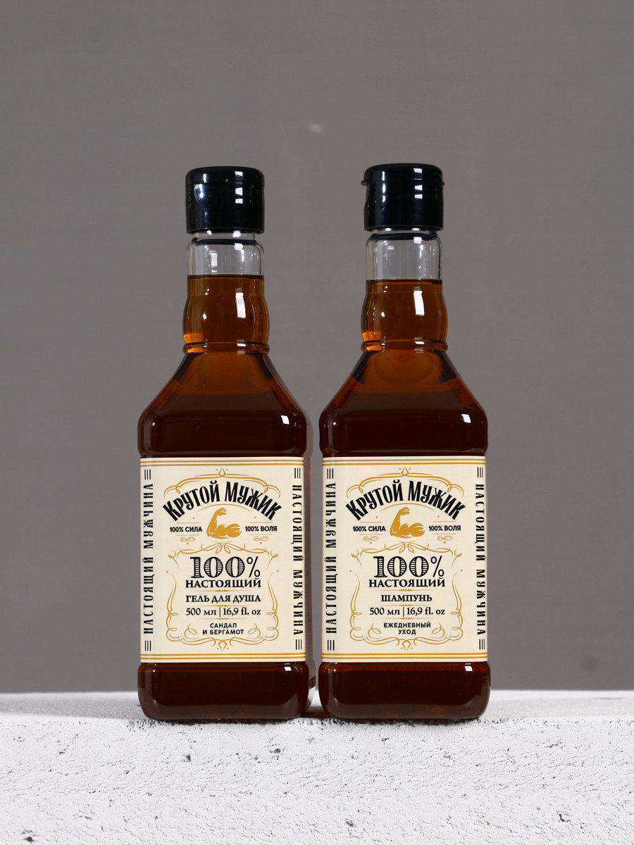 Подарочный набор "Крутой мужик", гель для душа и шампунь для волос во флаконе виски, 2x500, Чистое счастье, Россия