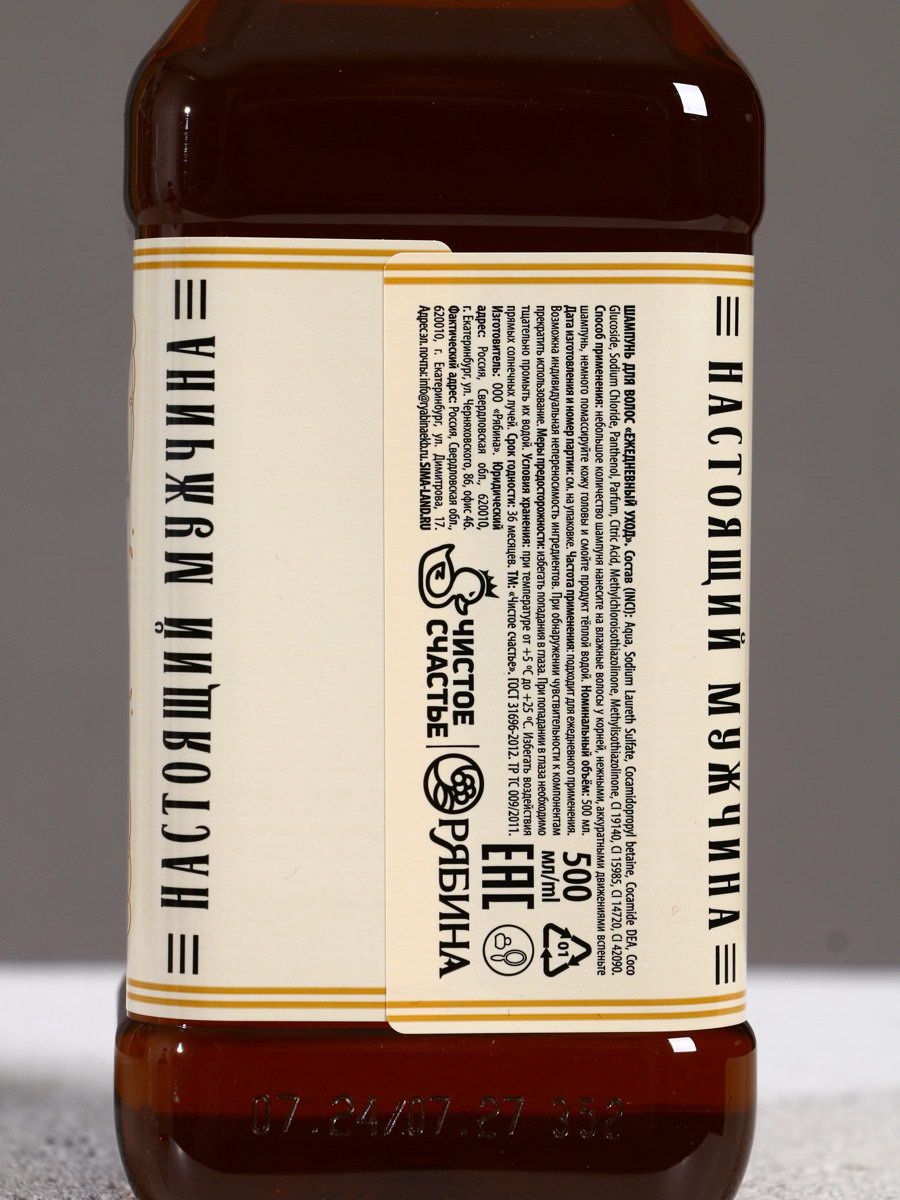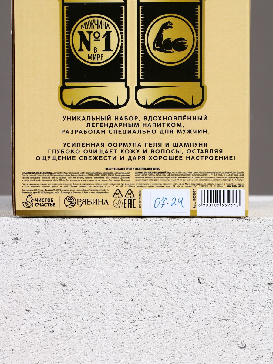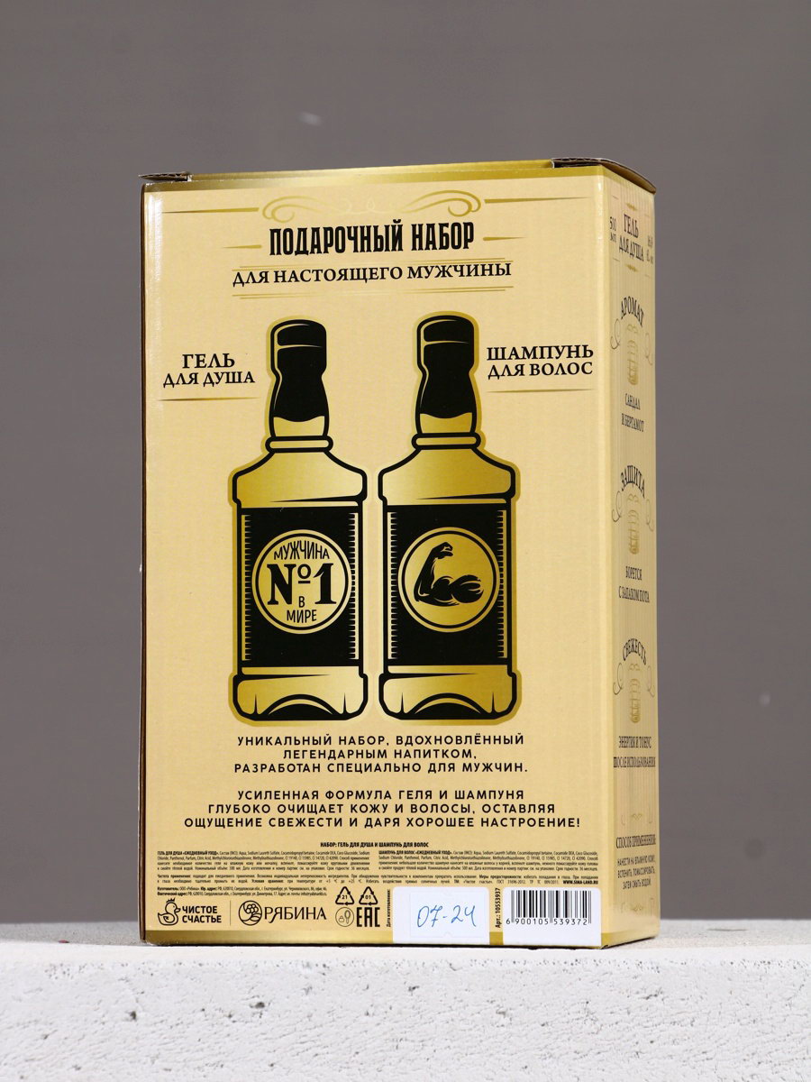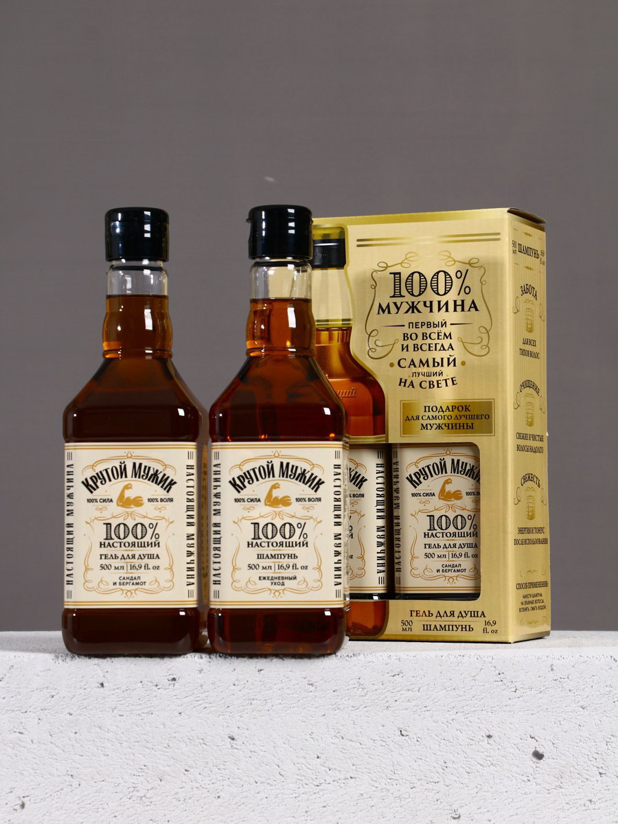 Подарочный набор "Крутой мужик", гель для душа и шампунь для волос во флаконе виски, 2x500, Чистое счастье, Россия
