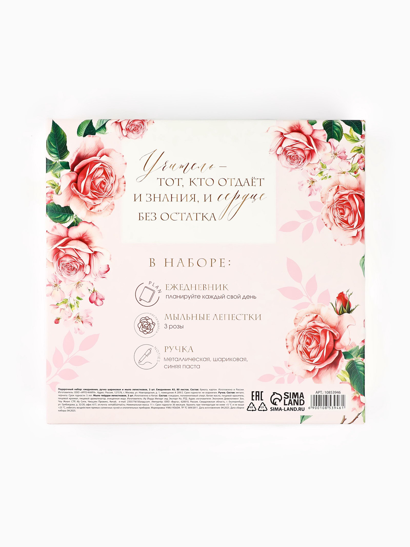 Подарочный набор, ежедневник А5, 80 л, ручка, мыльные лепестки "Ежедневник учителя", ArtFox, Россия
