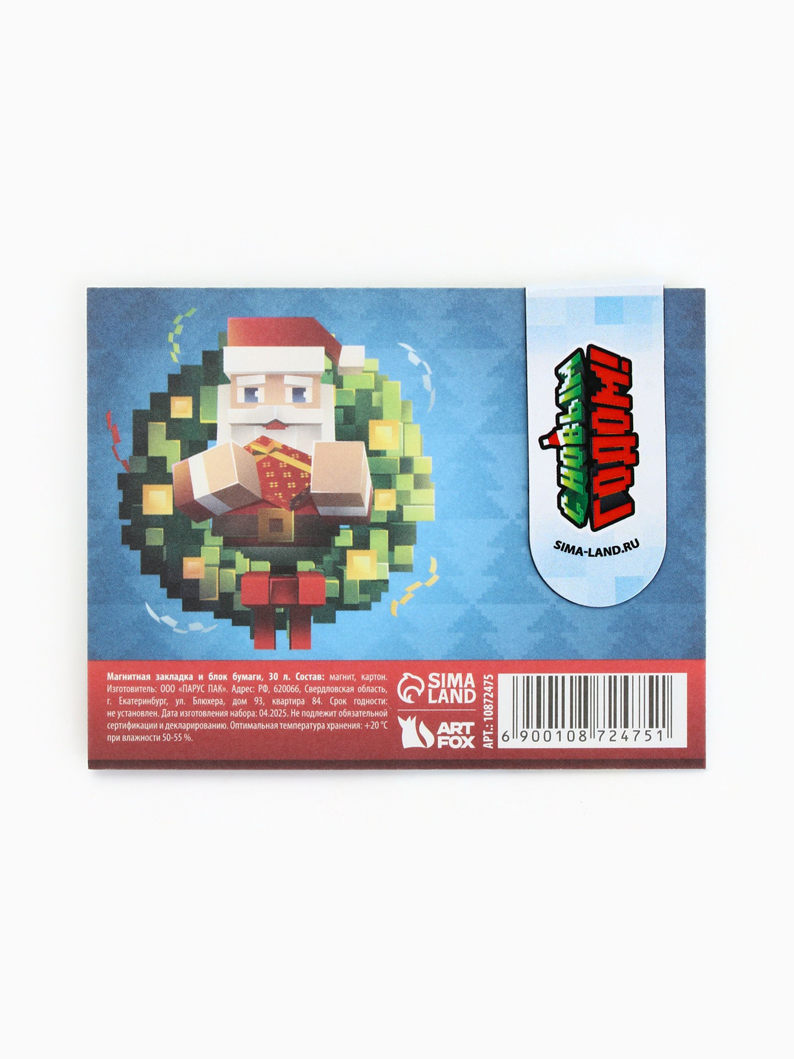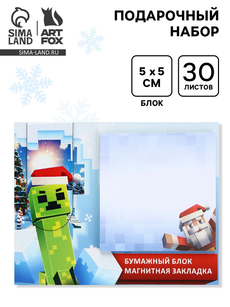 Подарочный набор новогодний, магнитная закладка и блок бумаг 30 листов "Пиксели", ArtFox, Россия