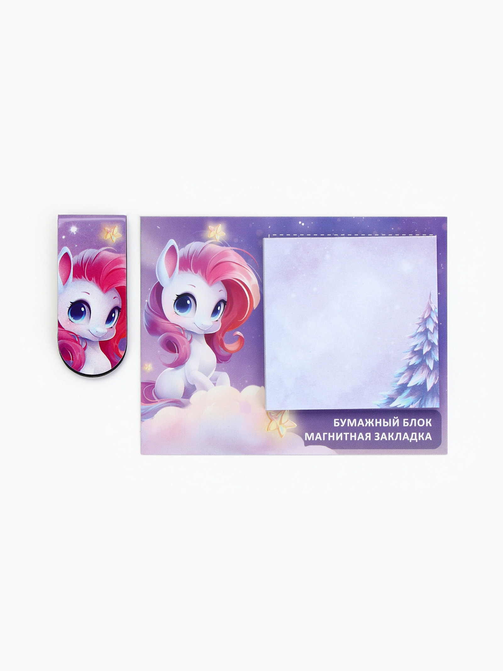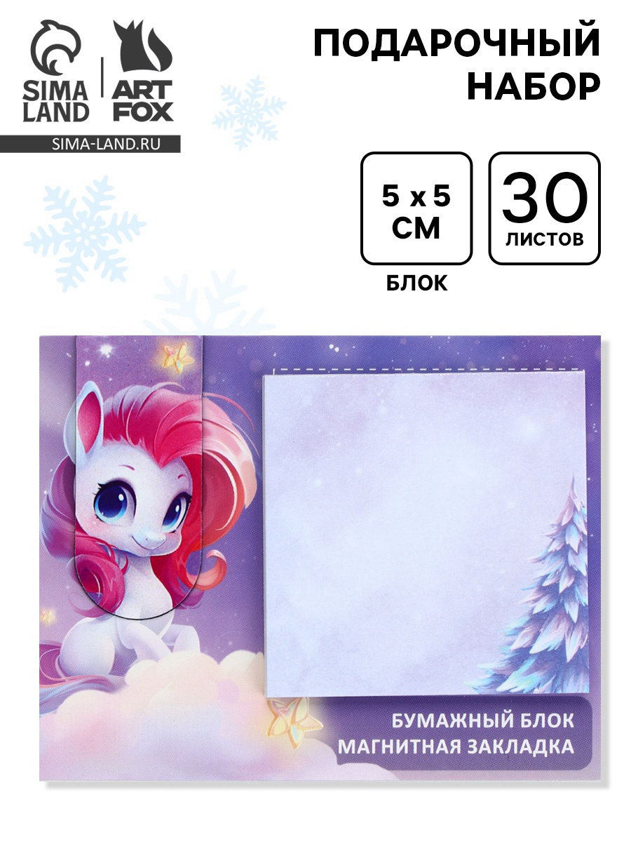Подарочный набор новогодний, магнитная закладка и блок бумаг 30 листов "Пони", ArtFox, Россия
